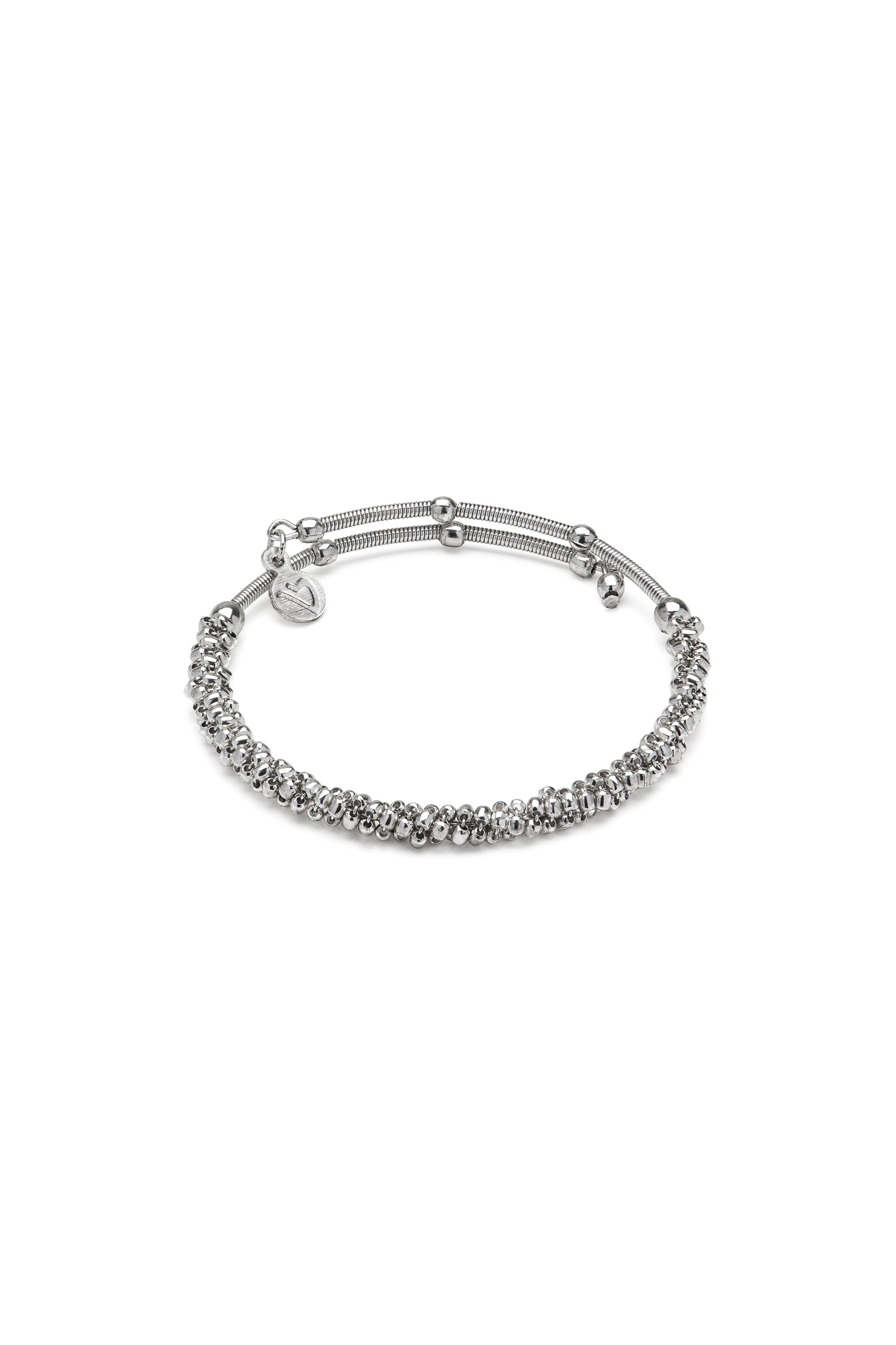 Bracciale aperto molla texture micro sfere. Modello regolabile. Crea il tuo mix di bracciali elastici abbinando modelli diversi, leggeri e comodi da indossare. Placcato in argento. Nickel tested. Gioielli fatti a mano, unici e artigianali, perfetti per tutti i tuoi look o come idea regalo.