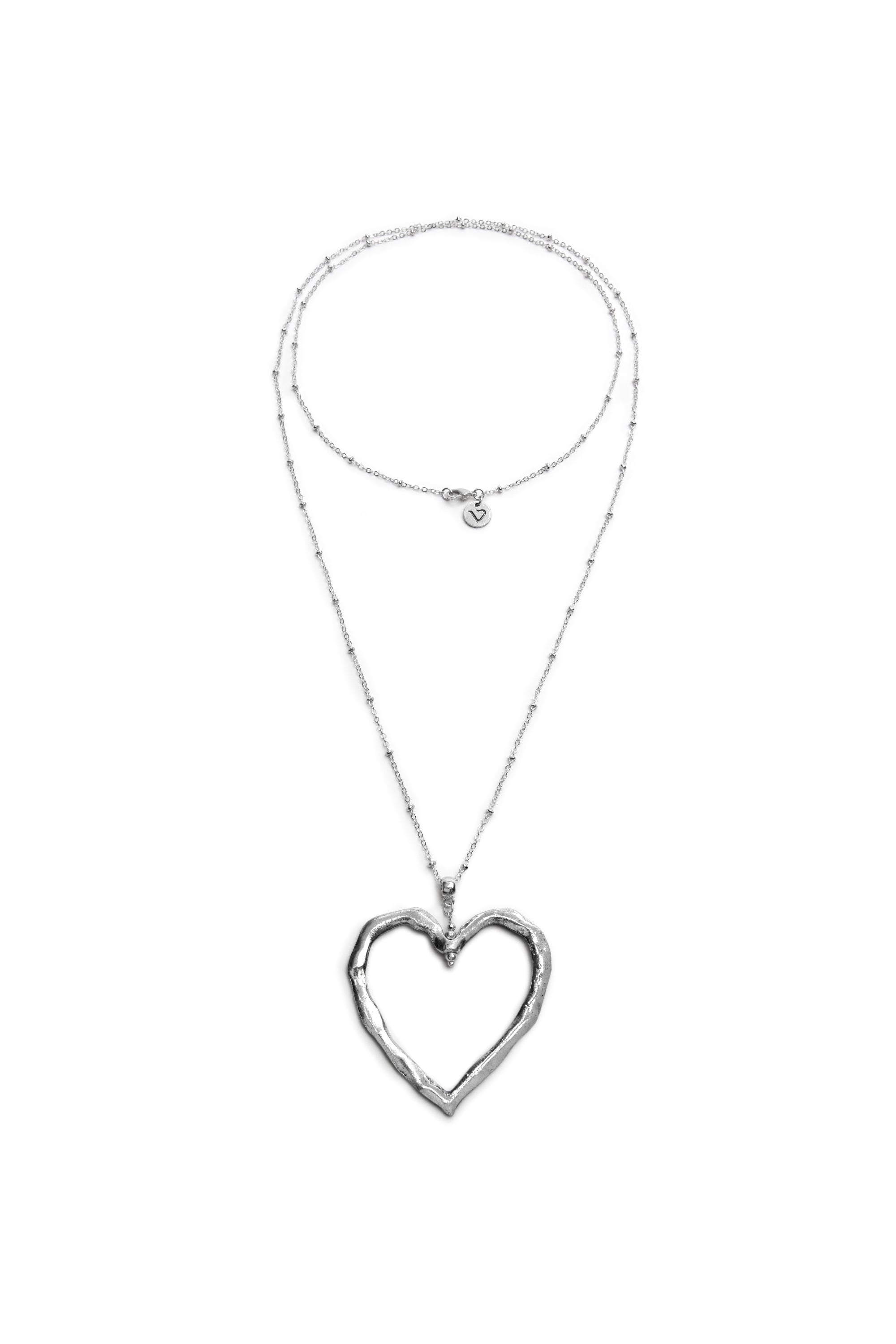 Design contemporaneo con ciondolo a forma di cuore: un tocco di stile che valorizza scolli a V e dolcevita. Leggera, confortevole, versatile grazie alla silhouette dal sapore artigianale. Chiusura regolabile con moschettone. Placcatura argento 100% artigianale. Nickel tested. Lavorazione artigianale. Gioielli fatti a mano, unici e artigianali, perfetti per tutti i tuoi look o come idea regalo.