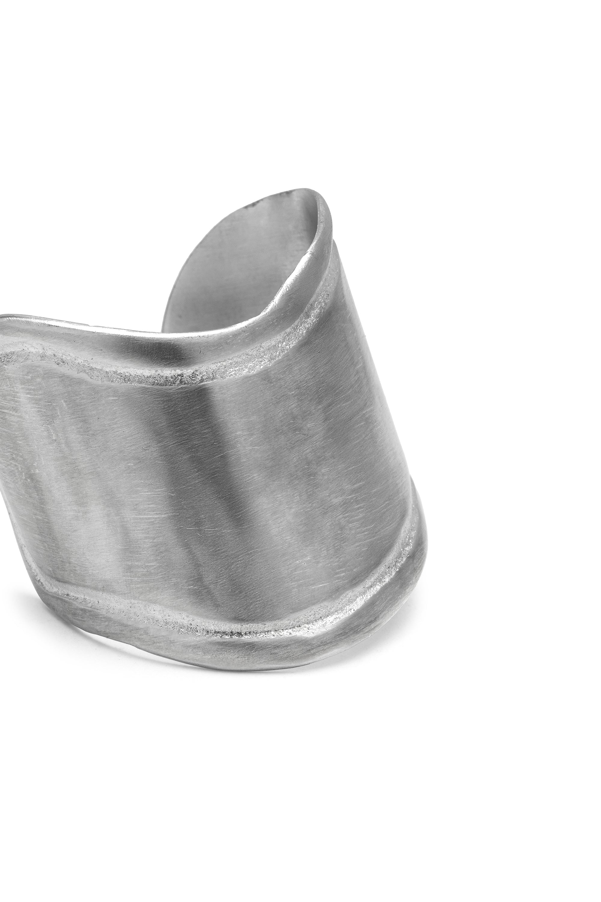 Bracciale rigido 5 cm con superficie liscia e profilo ondulato, realizzato in alluminio 100% riciclato. Una forma moderna e fluida capace di rendere iconici i tuoi everyday look. Nickel tested. Lavorazione artigianale. Gioielli fatti a mano, unici e artigianali, perfetti per tutti i tuoi look o come idea regalo.