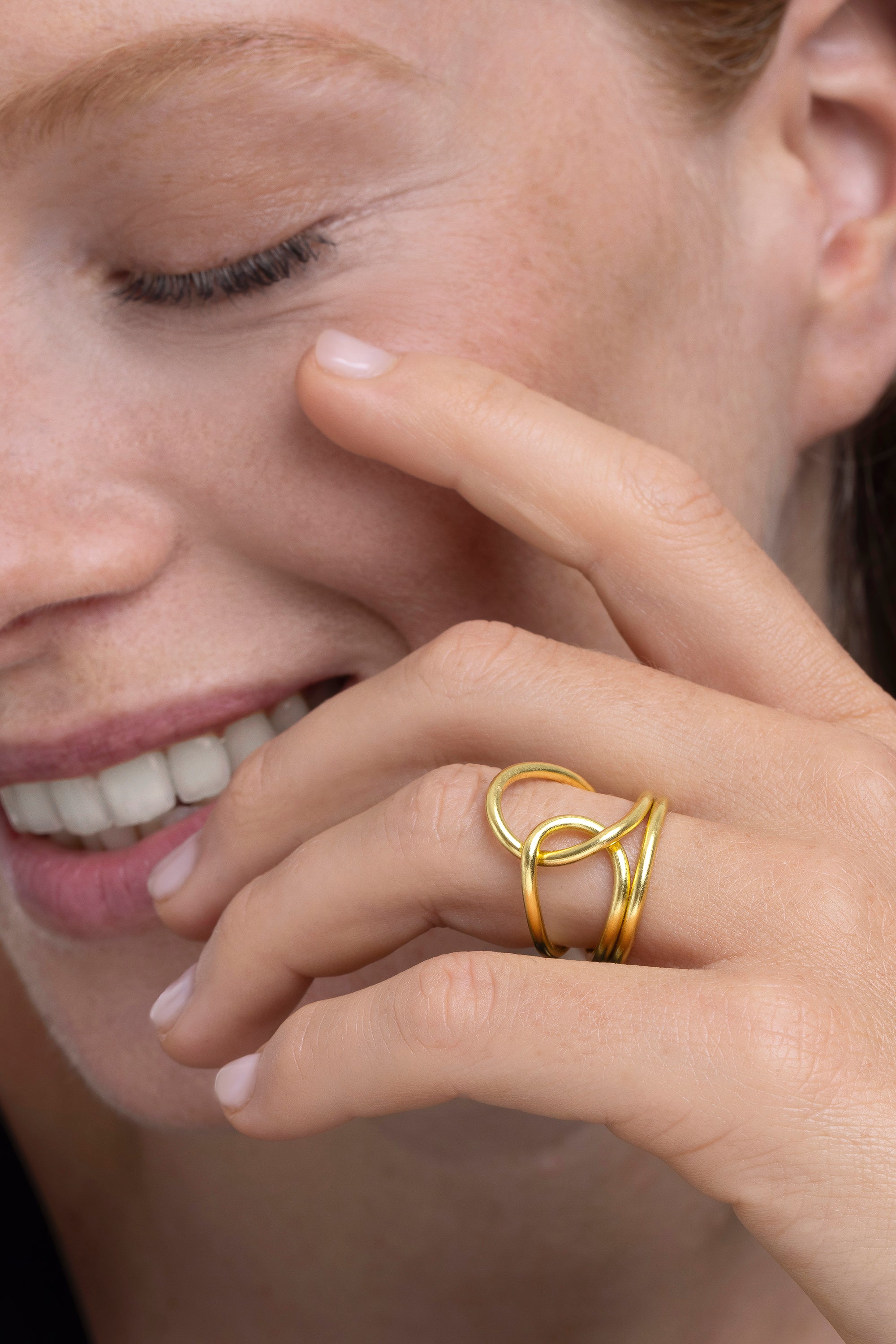 Anello in ottone intrecciato effetto giocoso e "doodle". Modello regolabile. Crea il tuo mix di anelli, la misura regolabile ti permette di indossarli sul dito che preferisci e abbinare i vari design. Nickel tested. Gioielli fatti a mano, unici e artigianali, perfetti per tutti i tuoi look o come idea regalo.