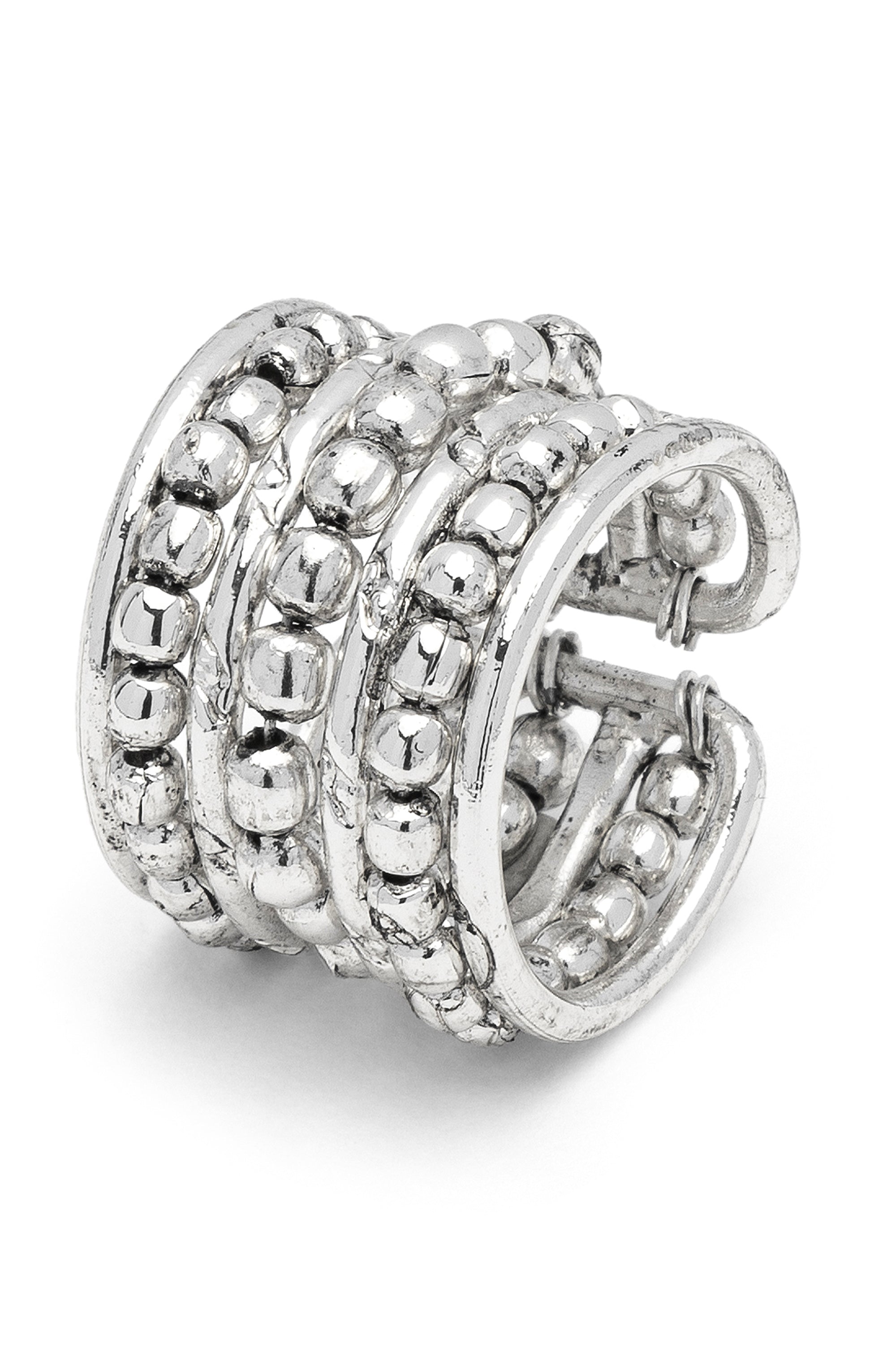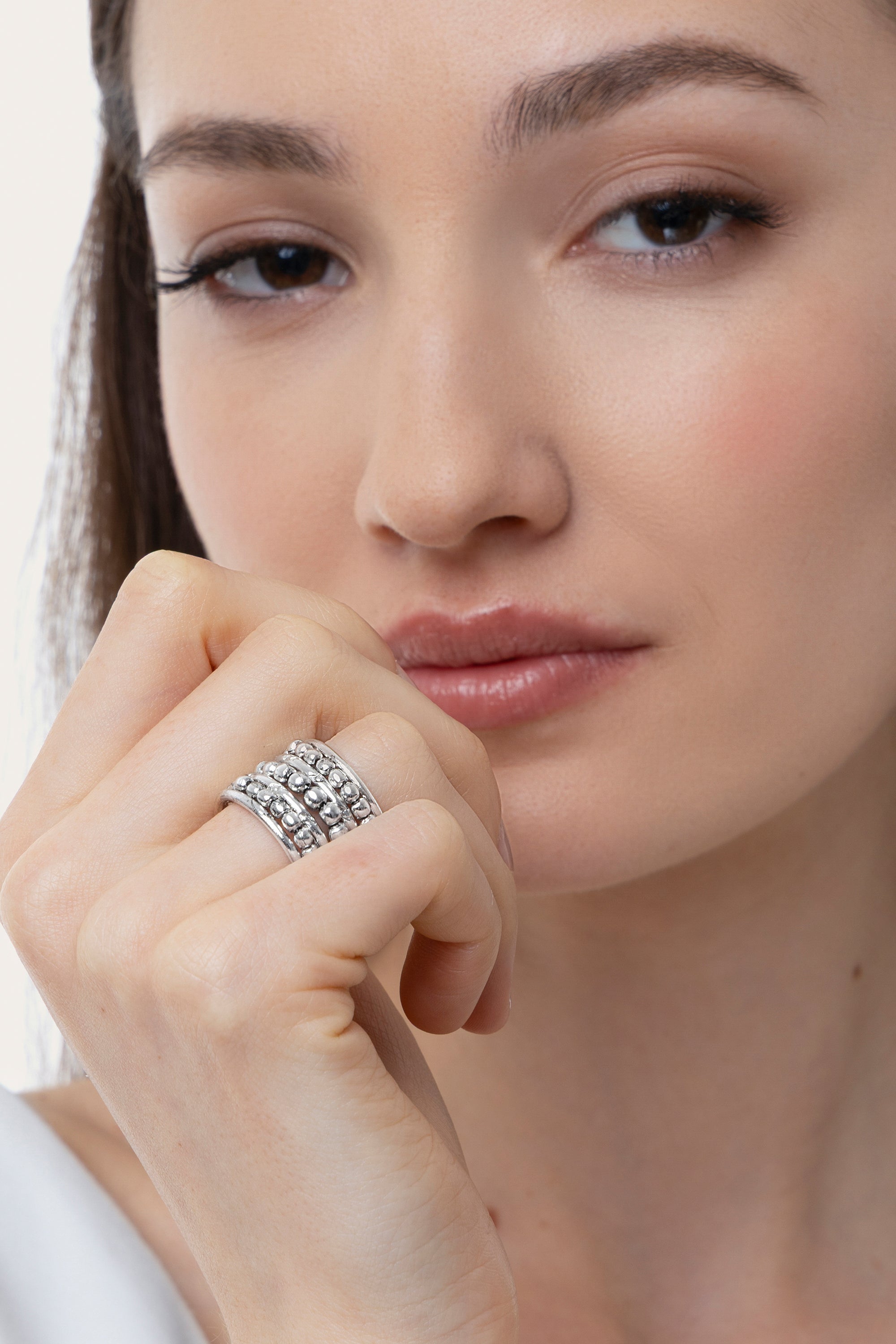 Dettagli che fanno la differenza. Un design a più strati con piccole sfere in rilievo per un effetto bold e grintoso. Un modello statement ideale da abbinare a fedine più sottili per un ring stack di tendenza. Modello regolabile. Placcatura argento 100% artigianale. Nickel tested. Lavorazione artigianale. Gioielli fatti a mano, unici e artigianali, perfetti per tutti i tuoi look o come idea regalo.