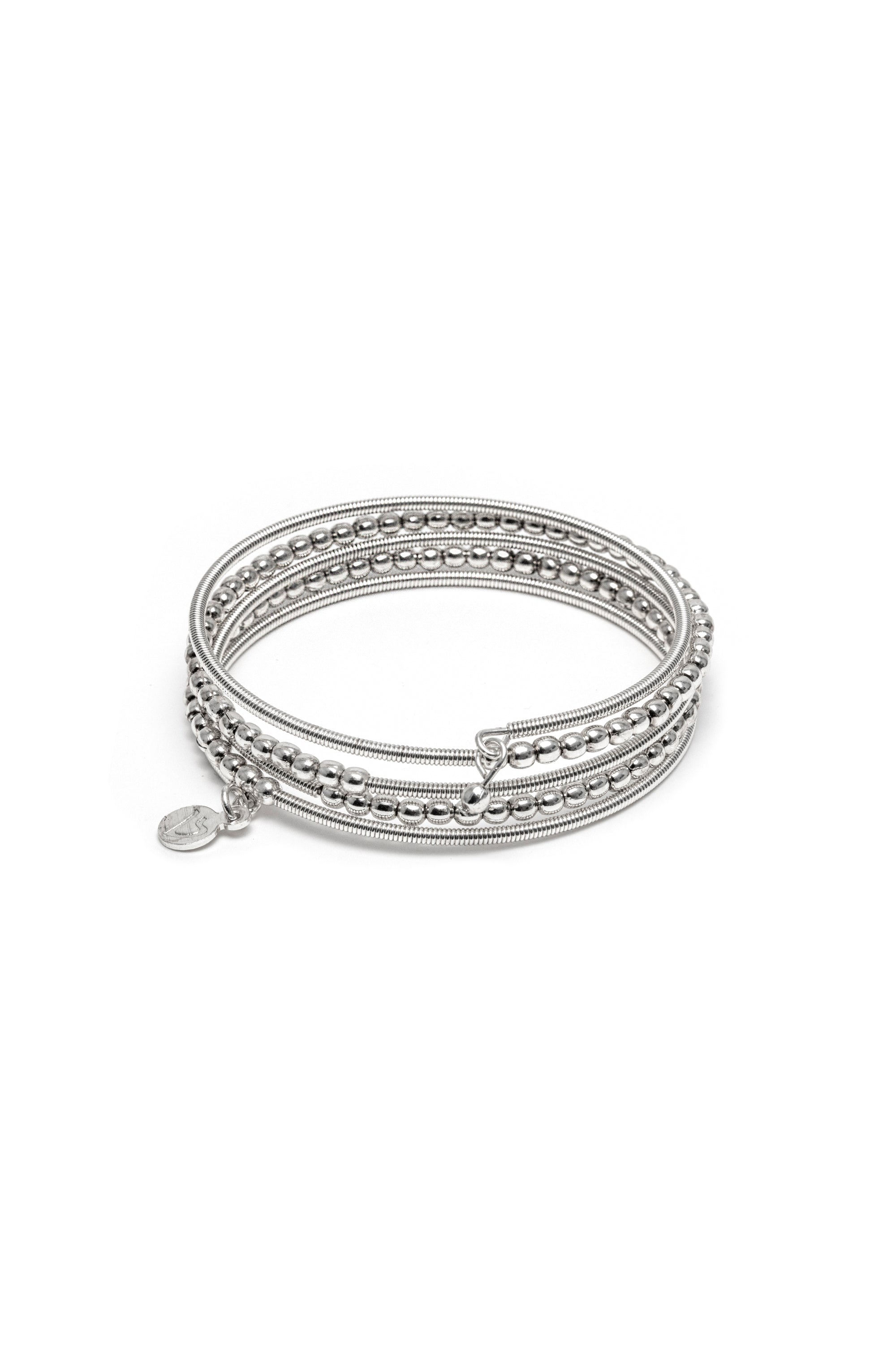 Bracciale a molla texture sfere mix. Placcato in argento. Nickel tested. Lavorazione artigianale.