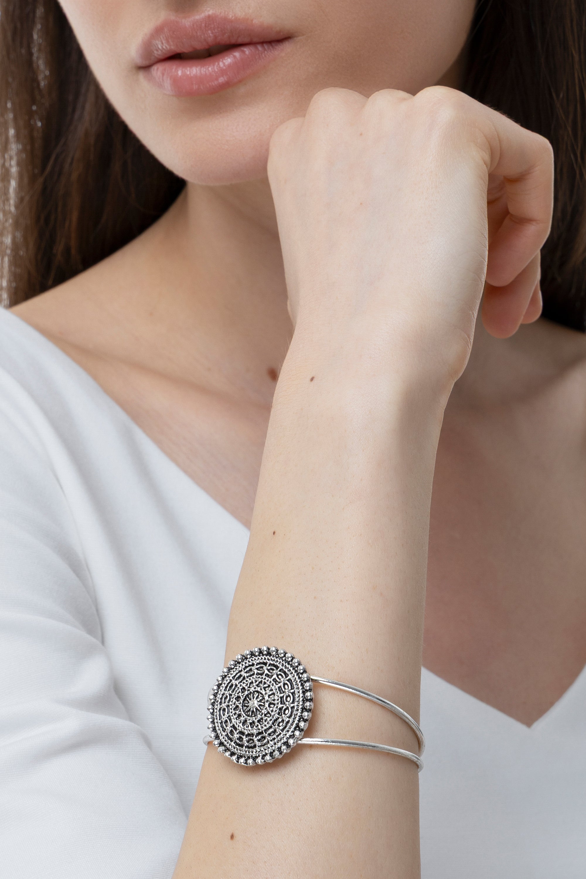 I dettagli fanno davvero la differenza in questo bracciale iconico. La placca centrale è caratterizzata da un design composto da elementi geometrici dalla rifinitura unica. Un gioiello pensato per chi vuole distinguersi con un gioiello statement. Materiale: placcatura argento 100% artigianale. Nickel tested. Lavorazione artigianale. Gioielli fatti a mano, unici e artigianali, perfetti per tutti i tuoi look o come idea regalo