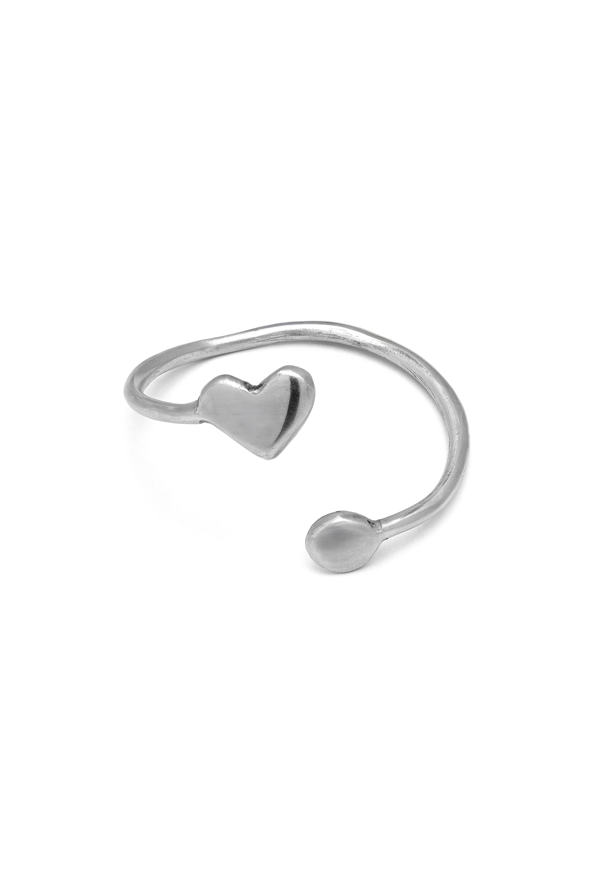 Bracciale da braccio regolabile caratterizzato da un terminale a forma di cuore dal design pieno e audace. Un accessorio che unisce romanticismo e stile urban, perfetto per tutti i tuoi look o come idea regalo. Realizzato in alluminio 100% riciclato. Handmade. Nickel tested.