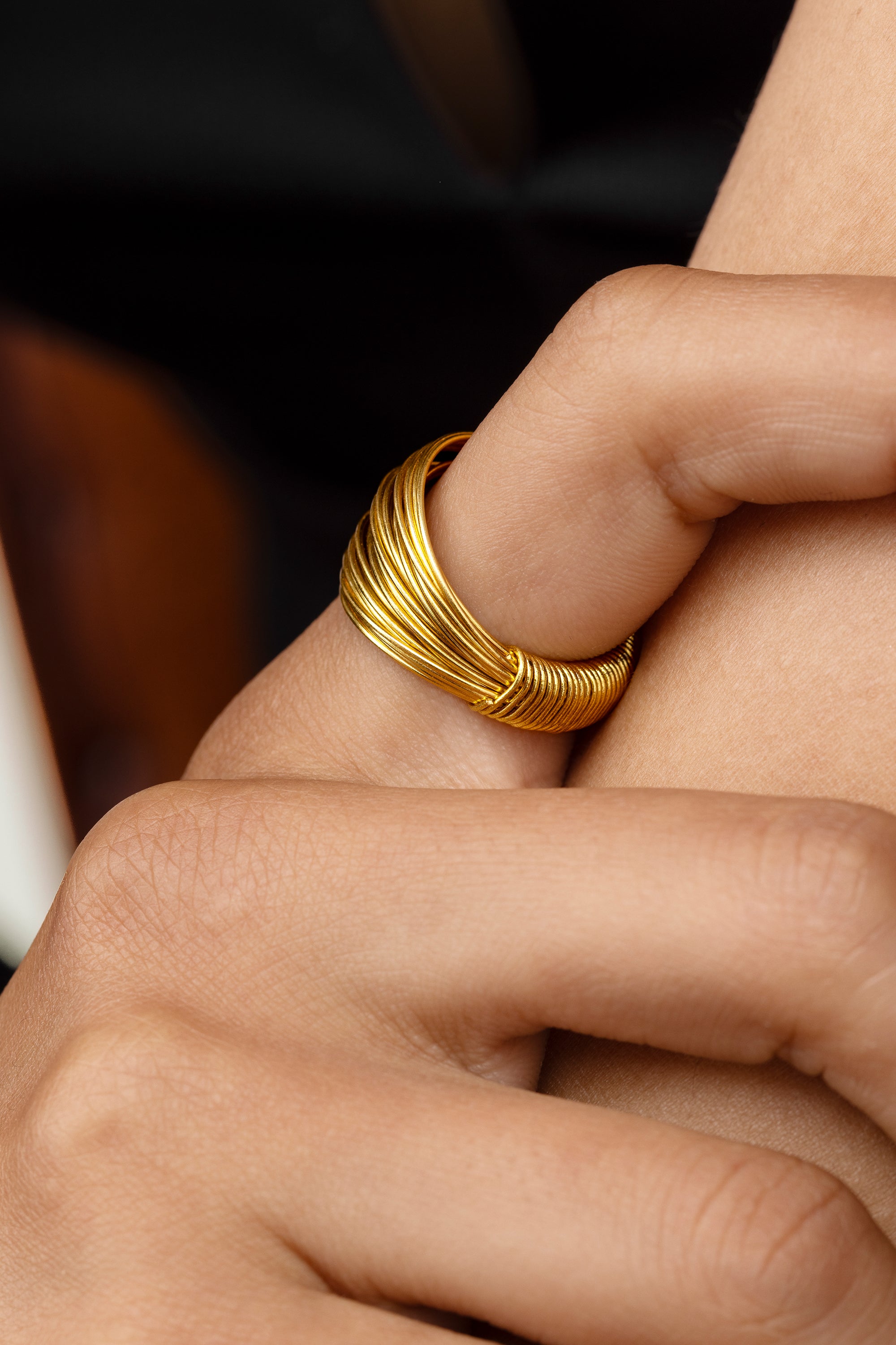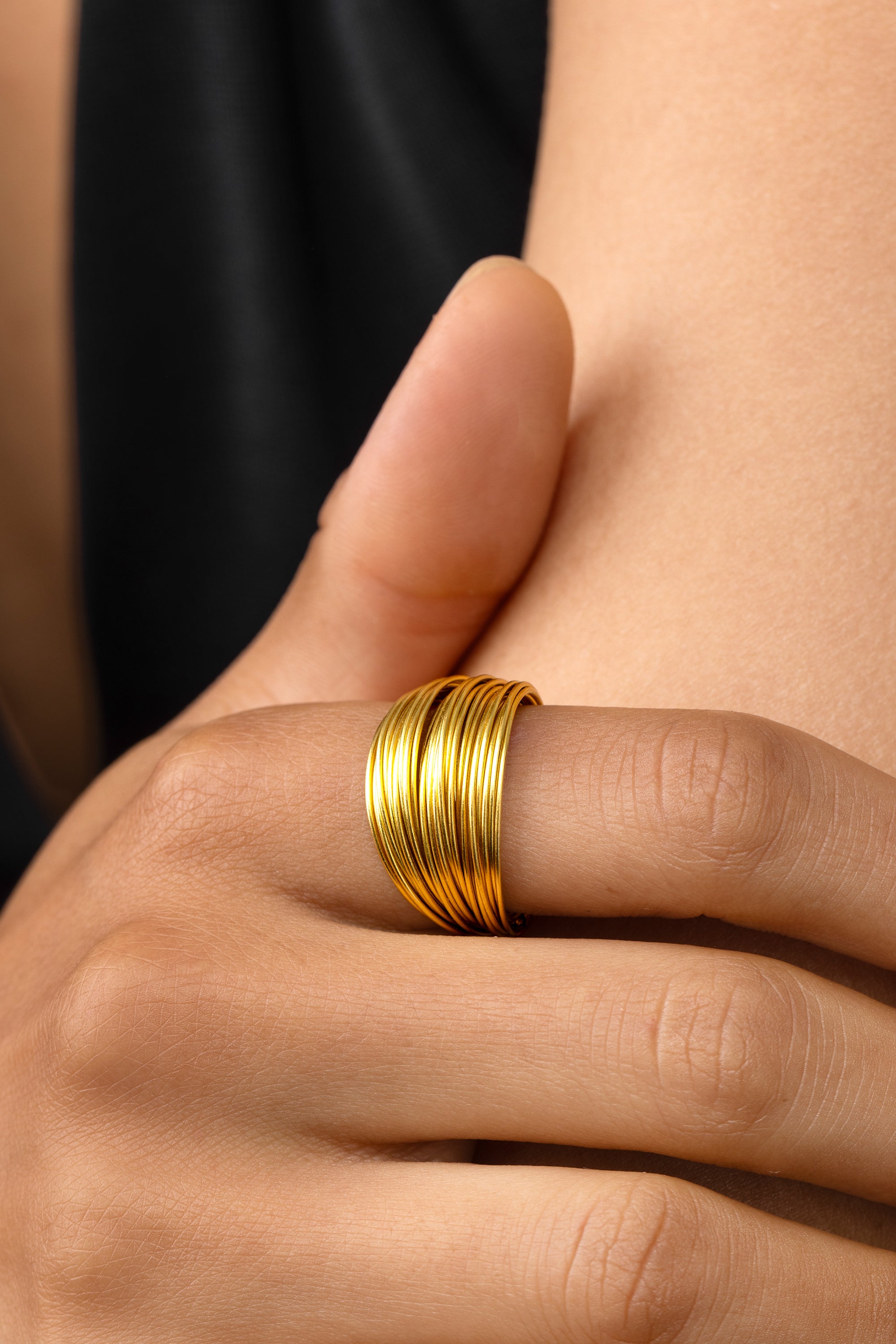 Anello fascia multifilo avvolto in sottili cerchi paralleli che disegnano un’onda di volumi ariosi e riflessi continui: leggero da indossare, scenografico alla vista. Realizzato a mano in ottone riciclato. Nickel tested. Lavorazione artigianale. Gioielli fatti a mano, unici e artigianali, perfetti per tutti i tuoi look o come idea regalo.