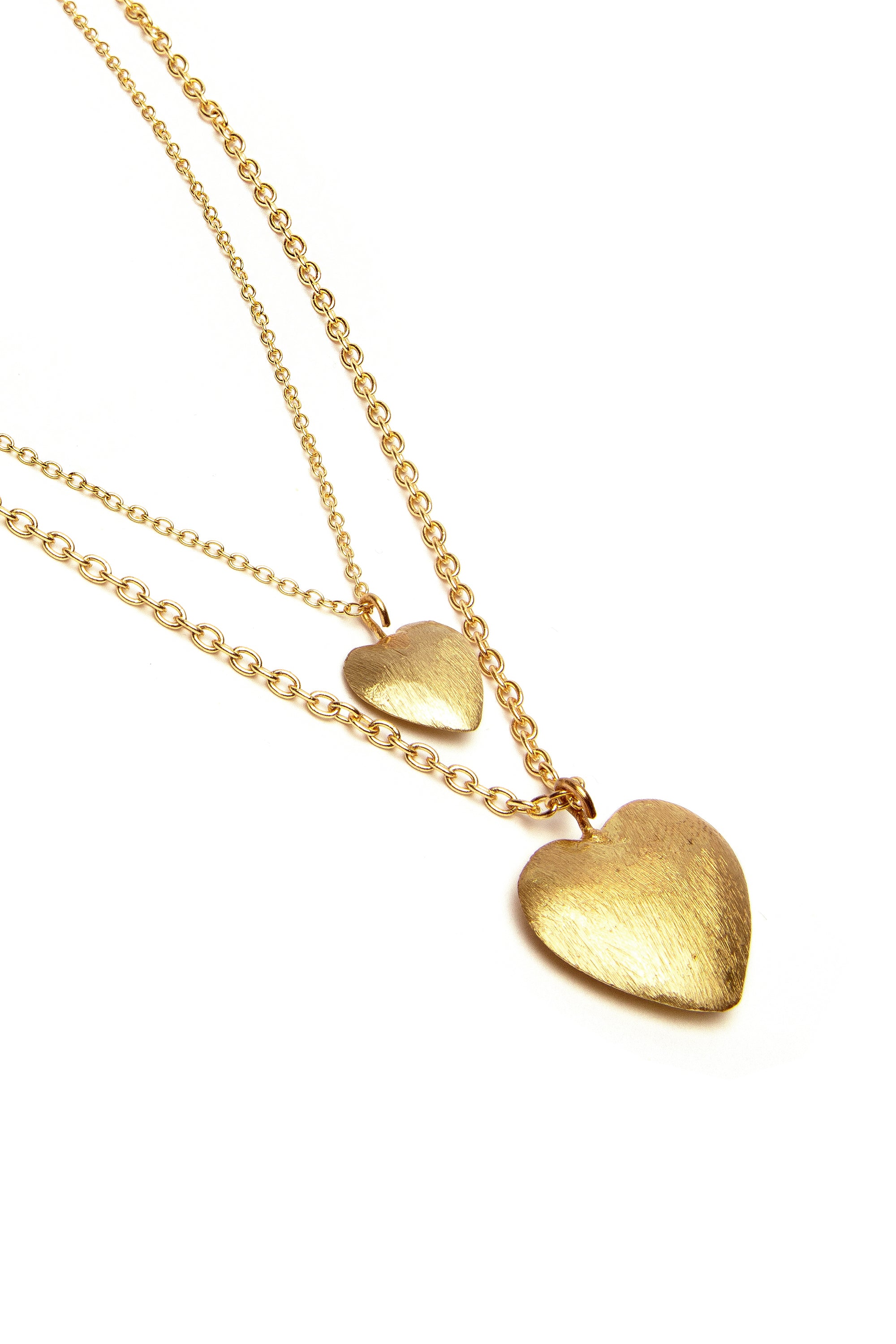 Collana in ottone due catene con ciondoli cuori bombati. Chiusura regolabile a moschettone. Nickel tested. Lavorazione artigianale. Gioielli fatti a mano, unici e artigianali, perfetti per tutti i tuoi look o come idea regalo.
