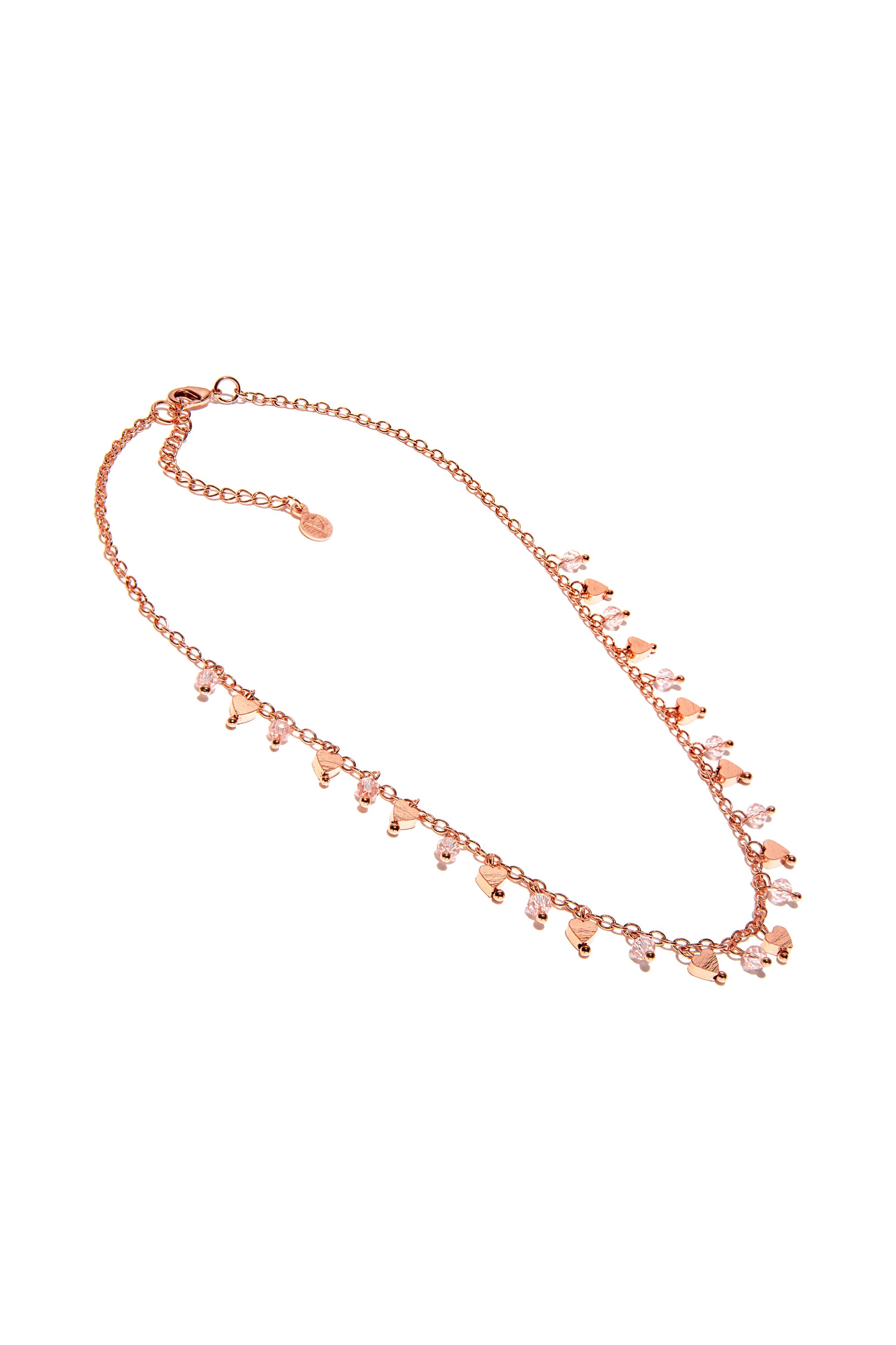 Collana copper plated con charm a cuore e mini cristalli rosa cipria pendenti che creano una delicata cascata di luce. Romantica e contemporanea, perfetta sul décolleté. Chiusura: moschettone regolabile con catenella di estensione. Nickel tested. Lavorazione artigianale. Gioielli fatti a mano, unici e artigianali, perfetti per tutti i tuoi look o come idea regalo.