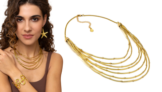 Le collane multifilo Vestopazzo fanno il lavoro di più gioielli in uno. Più fili intrecciati, sovrapposti o paralleli che creano volume e movimento senza dover combinare collane diverse ogni mattina.