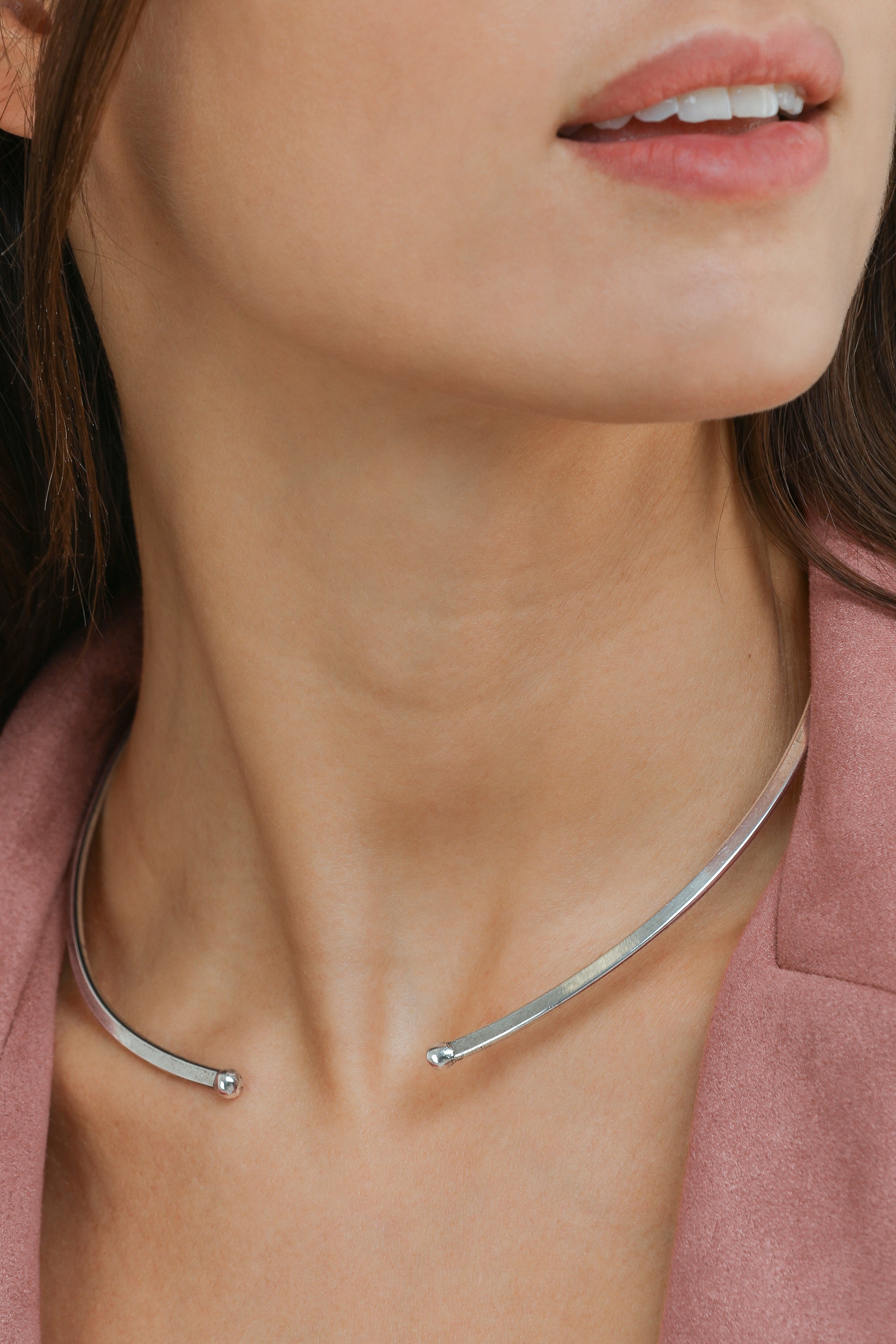 Linee pulite. Girocollo rigido a collarino con texture liscia a specchio che avvolge il décolleté con un’eleganza essenziale e ultra-luminosa. Perfetto da solo come statement minimale o abbinato a collane più lunghe per un layering grafico. Modello open collar senza chiusura, leggermente regolabile. Placcatura argento 100% artigianale. Nickel tested. Lavorazione artigianale. Gioielli fatti a mano, unici e artigianali, perfetti per tutti i tuoi look o come idea regalo.
