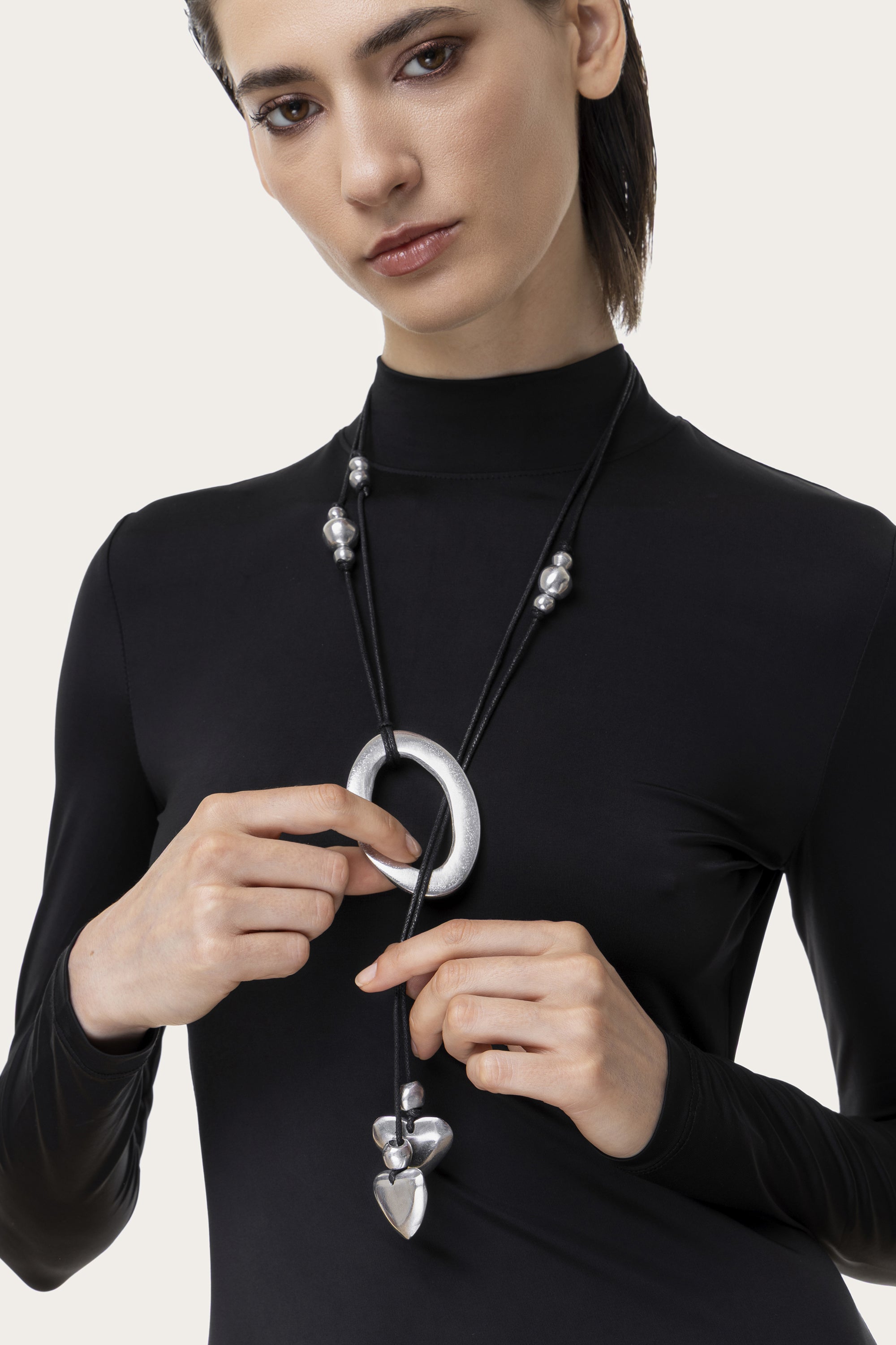 Pendente con nodo scorrevole realizzato in alluminio 100% riciclato. Un accessorio ricco di significato grazie alle forme sinuose e romantiche, simbolo di connessione. Lunghezza massima collana 80 cm. Nickel tested. Lavorazione artigianale. Gioielli fatti a mano, unici e artigianali, perfetti per tutti i tuoi look o come idea regalo.