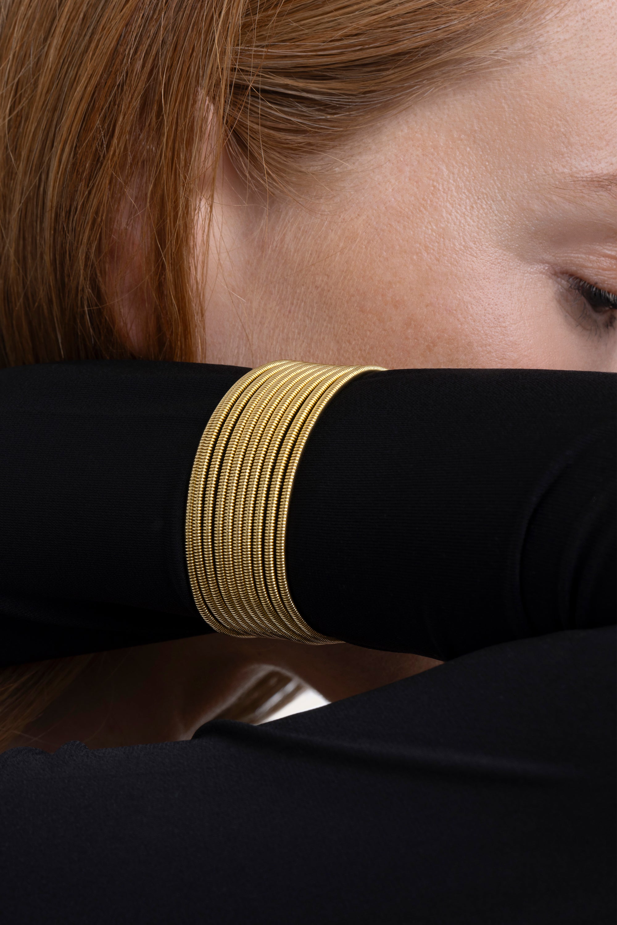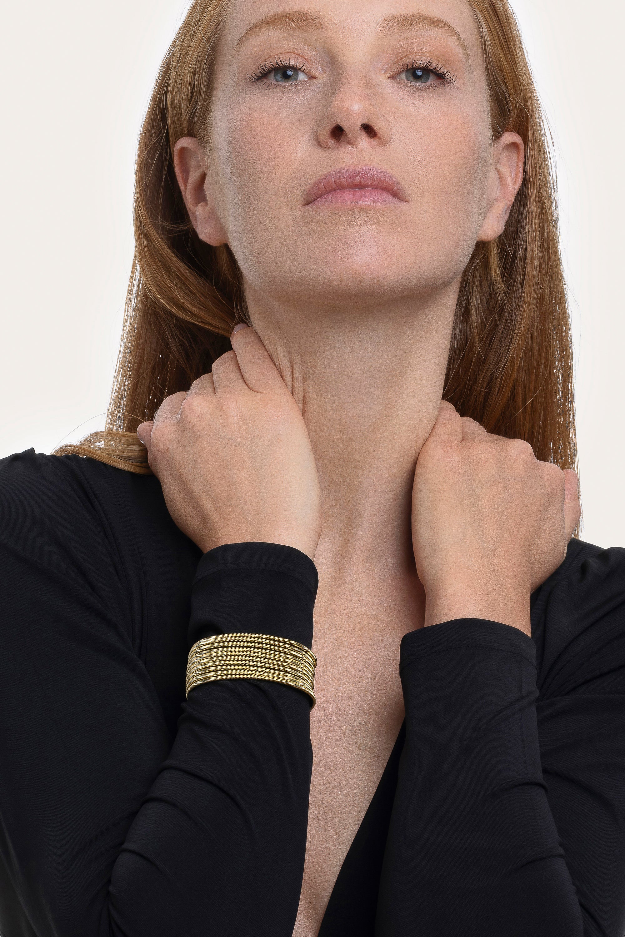 Bracciale fascia aperto multilinee in ottone. Modello regolabile. Crea il tuo mix di bracciali abbinando modelli diversi, leggeri e comodi da indossare. Nickel tested. Gioielli fatti a mano, unici e artigianali, perfetti per tutti i tuoi look o come idea regalo.