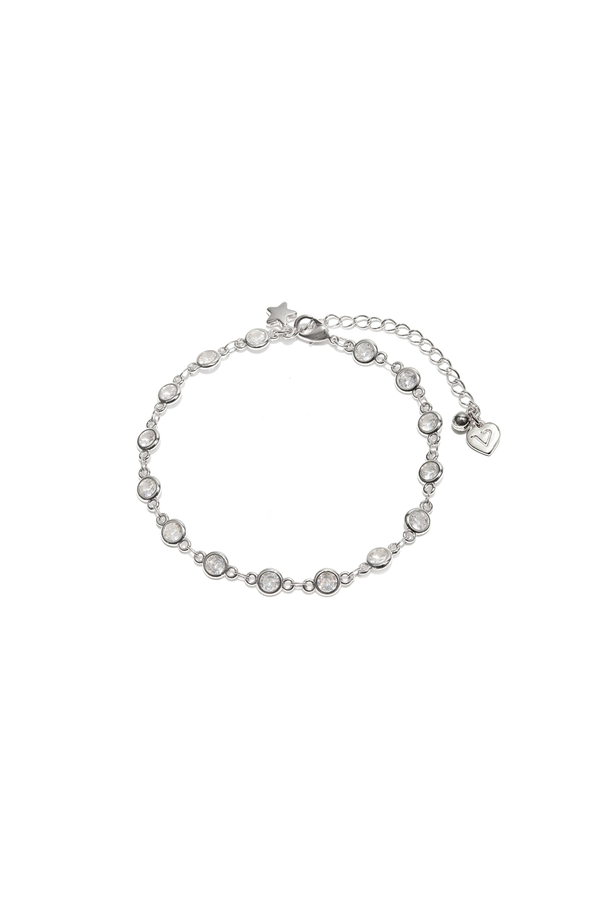 Bracciale catena punti luce con chiusura a moschettone regolabile. Nickel tested. Placcatura argento con inserti in zirconia cubica. Gioielli unici perfetti per tutti i tuoi look o come idea regalo.