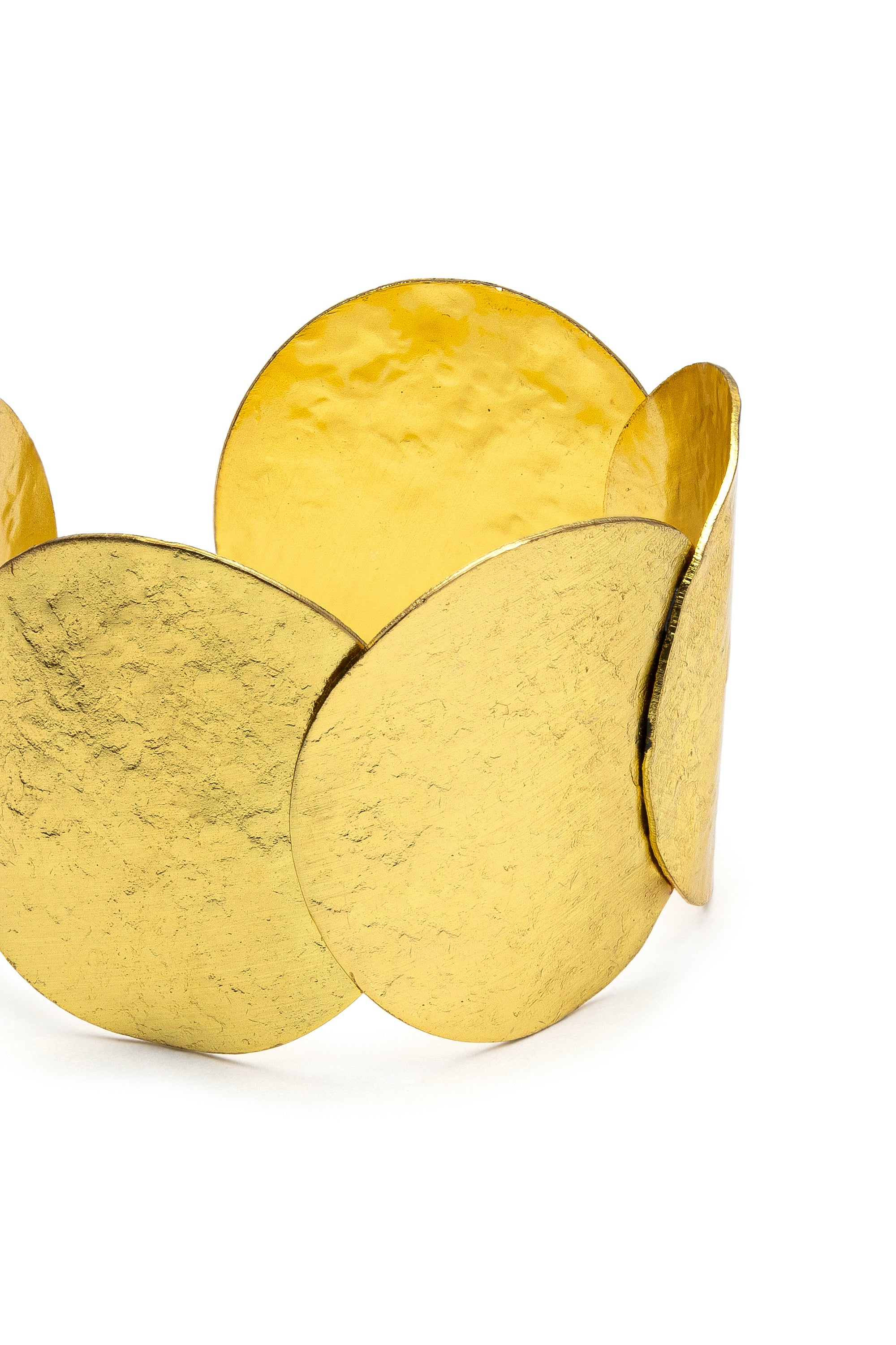 Bracciale in ottone riciclato caratterizzato da un design geometrico, reso unico dalla texture battuta e luminosa. La lavorazione artigianale dona una texture viva e brillante, per un effetto elegante ma grintoso. Nickel tested. Gioielli fatti a mano, unici e artigianali, perfetti per tutti i tuoi look o come idea regalo.