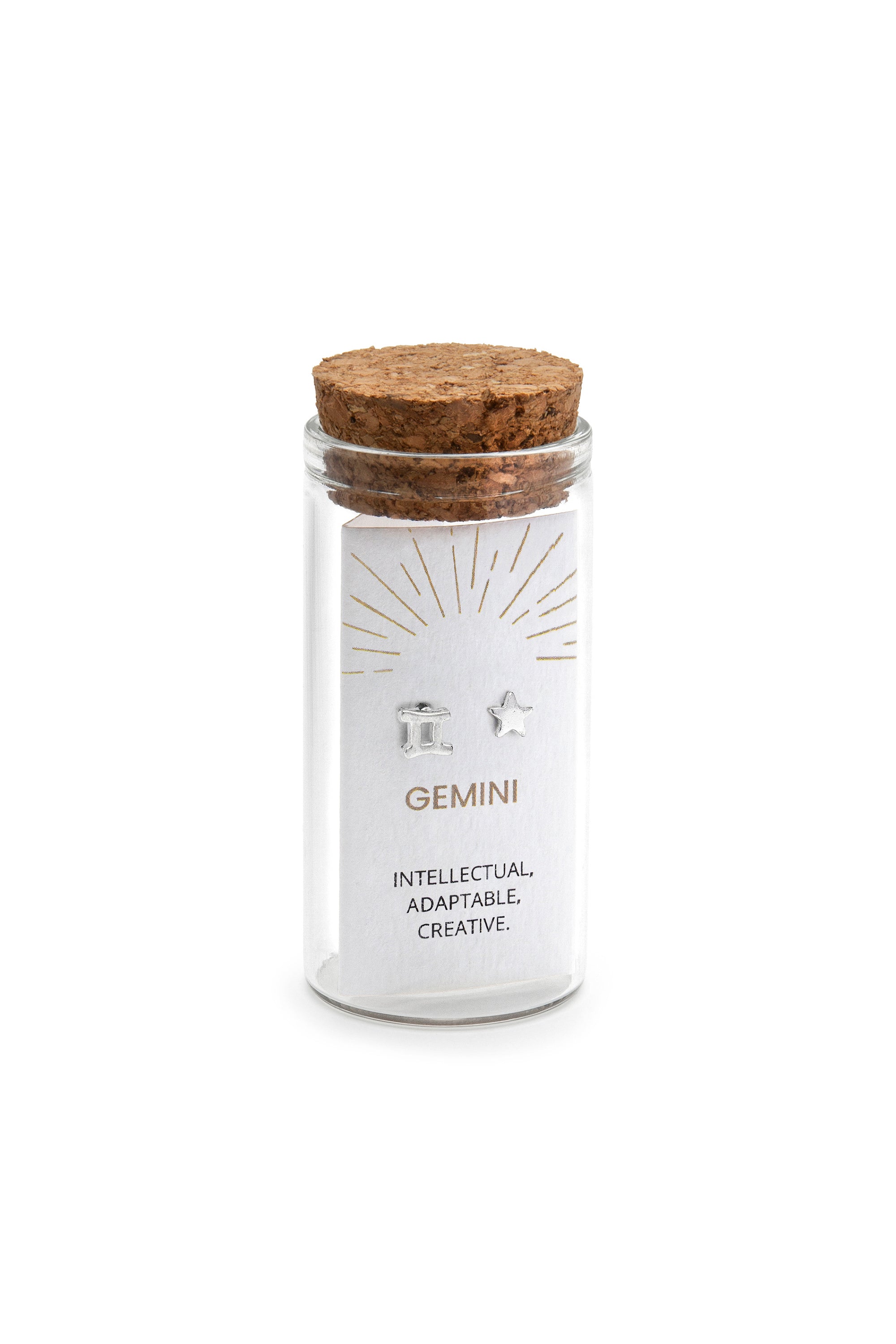 Il gioiello perfetto da regalare e regalarsi. Orecchini segno zodiacale Gemelli placcati in argento. Gli orecchini sono inseriti in una iconica glass bottle e caratterizzati da una dedica che esprime le qualità del segno. Un'idea Gift-Ready davvero speciale in stile cosmo vibes. Chiusura a farfalla. Nickel tested. Lavorazione artigianale.