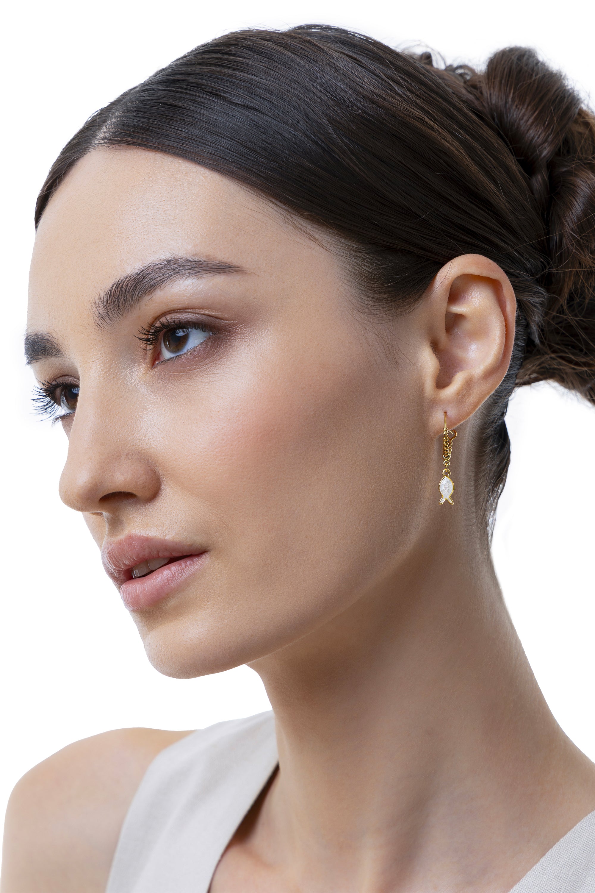 ORECCHINI CERCHI PESCIOLINO BIANCO