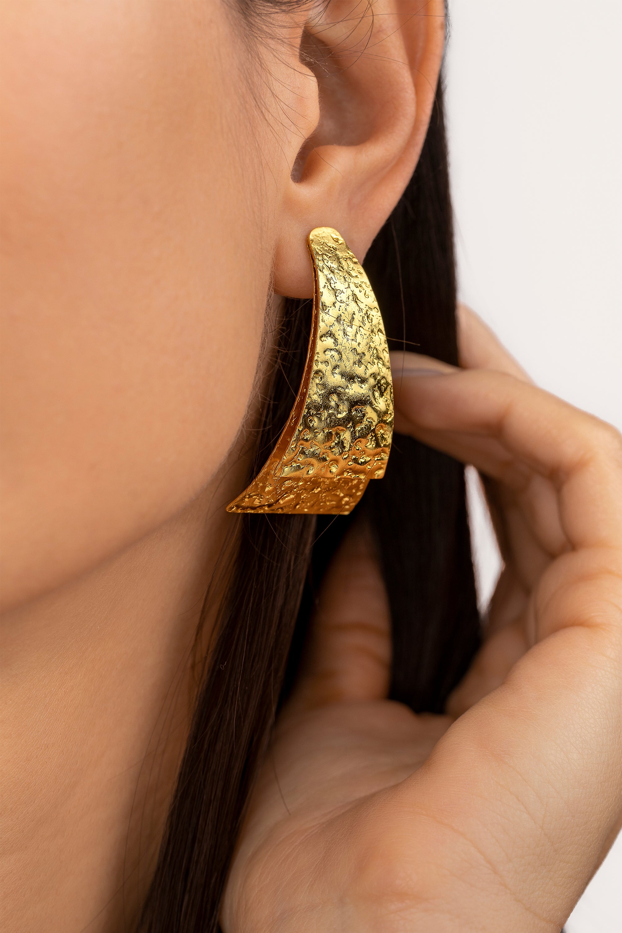 Orecchini geometrici in stile vintage, caratterizzati da una texture battuta realizzata a mano. Le linee decise e il riflesso delicato della luce donano un'allure contemporanea ai tuoi look day&night. Chiusura a farfalla. Realizzati a mano in ottone riciclato. Nickel tested. Lavorazione artigianale. Gioielli fatti a mano, unici e artigianali, perfetti per tutti i tuoi look o come idea regalo.