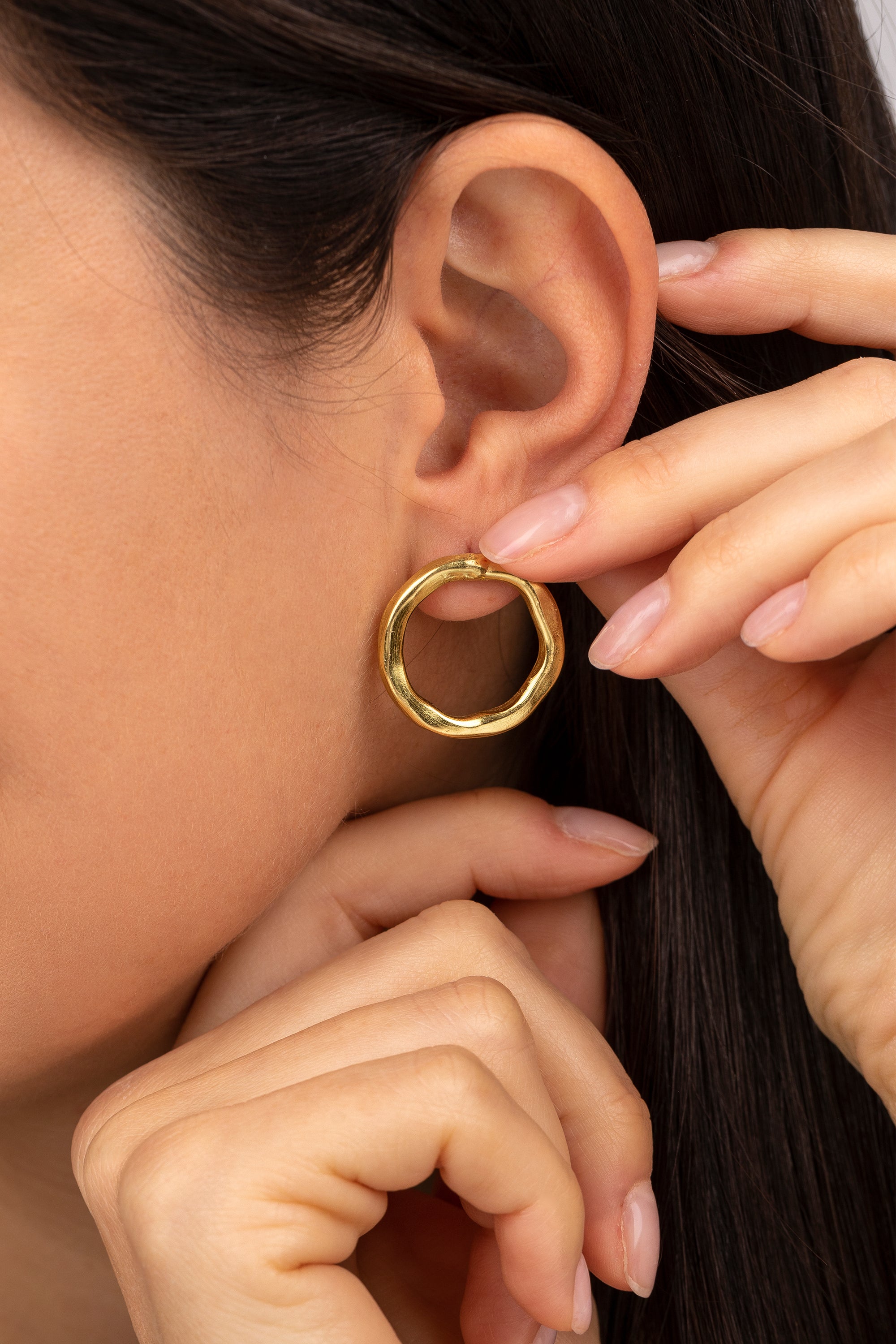 Gioielli in ottone riciclato, fusi, plasmati e rifiniti a mano: forme geometriche, sinuose e iconiche che illuminano ogni look con una luce dorata calda. Ogni creazione è realizzata interamente con tecniche artigianali, per un risultato sostenibile e ricco di personalità che valorizza il tuo stile.