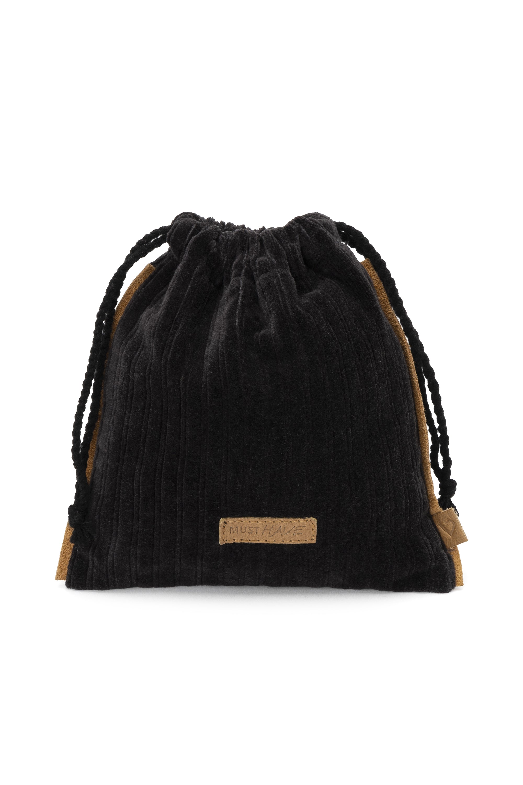 Pochette Drawstring Bag Small colore nero. Il tuo segreto di stile: questa sacca in cotone è un must have per chi cerca un contenitore versatile da tenere sempre a portata di mano. Disponibile anche in color ocra. Materiale corpo: 100% cotone. Fodera con pattern stellato: 100% cotone. Chiusura: coulisse. Misure: 17 (B) x 18 (A).