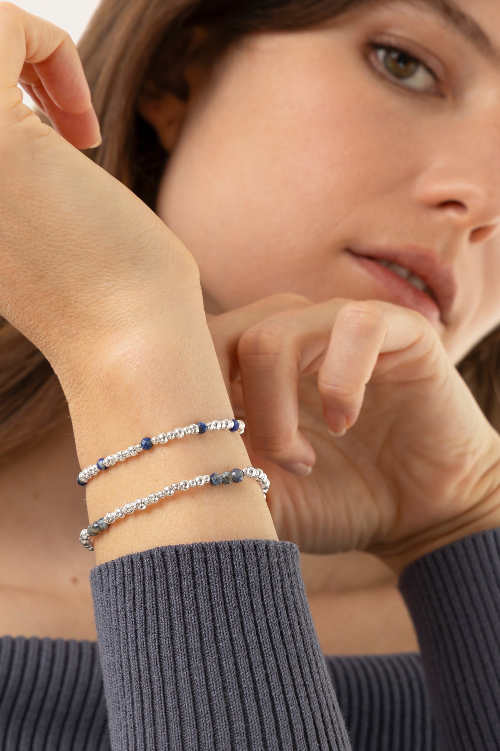 Una combo luminosa e raffinata. I due bracciali con inserti in lapislazzuli sono perfetti per uno styling easy ma curato, reso unico da un touch of blue. Abbinali ai tuoi bracciali elastici preferiti per creare uno stack personalizzato. Materiale: placcatura argento 100% artigianale. Nickel tested. Lavorazione artigianale. Gioielli fatti a mano, unici e artigianali, perfetti per tutti i tuoi look o come idea regalo.