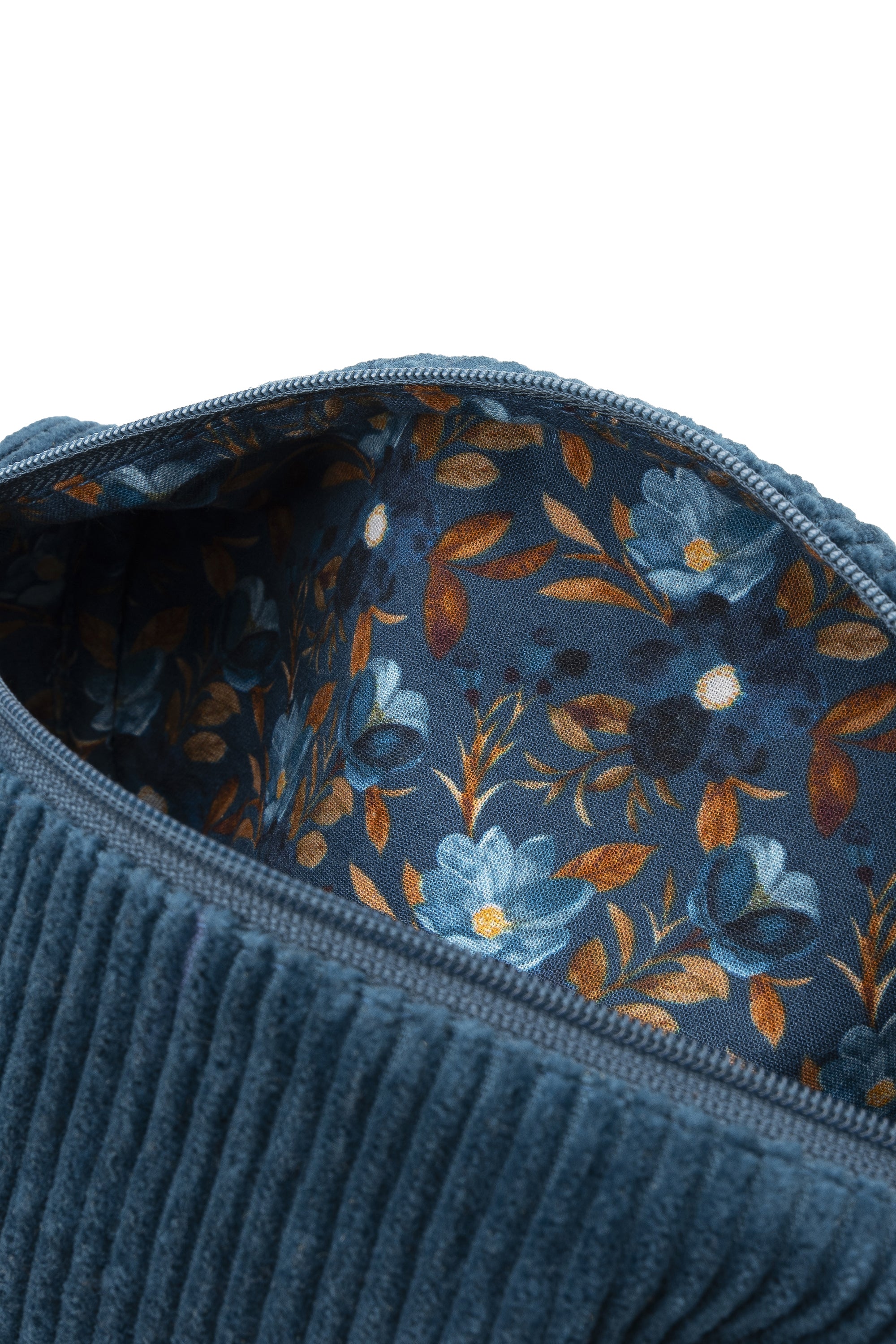Necessaire pouch in teal. A soft, roomy bag for your essentials, perfect for travelling or for keeping your beauty favourites organised. Discover every model in the collection in a range of designs and sizes, from the Soft Bag to the Jewelry Box for storing jewelry. Also available in rust. Body: 100 % cotton. Floral-pattern lining: 100 % cotton. Fastening: zip. Size: 23 (W) × 8 (H) × 8 (D) cm.
