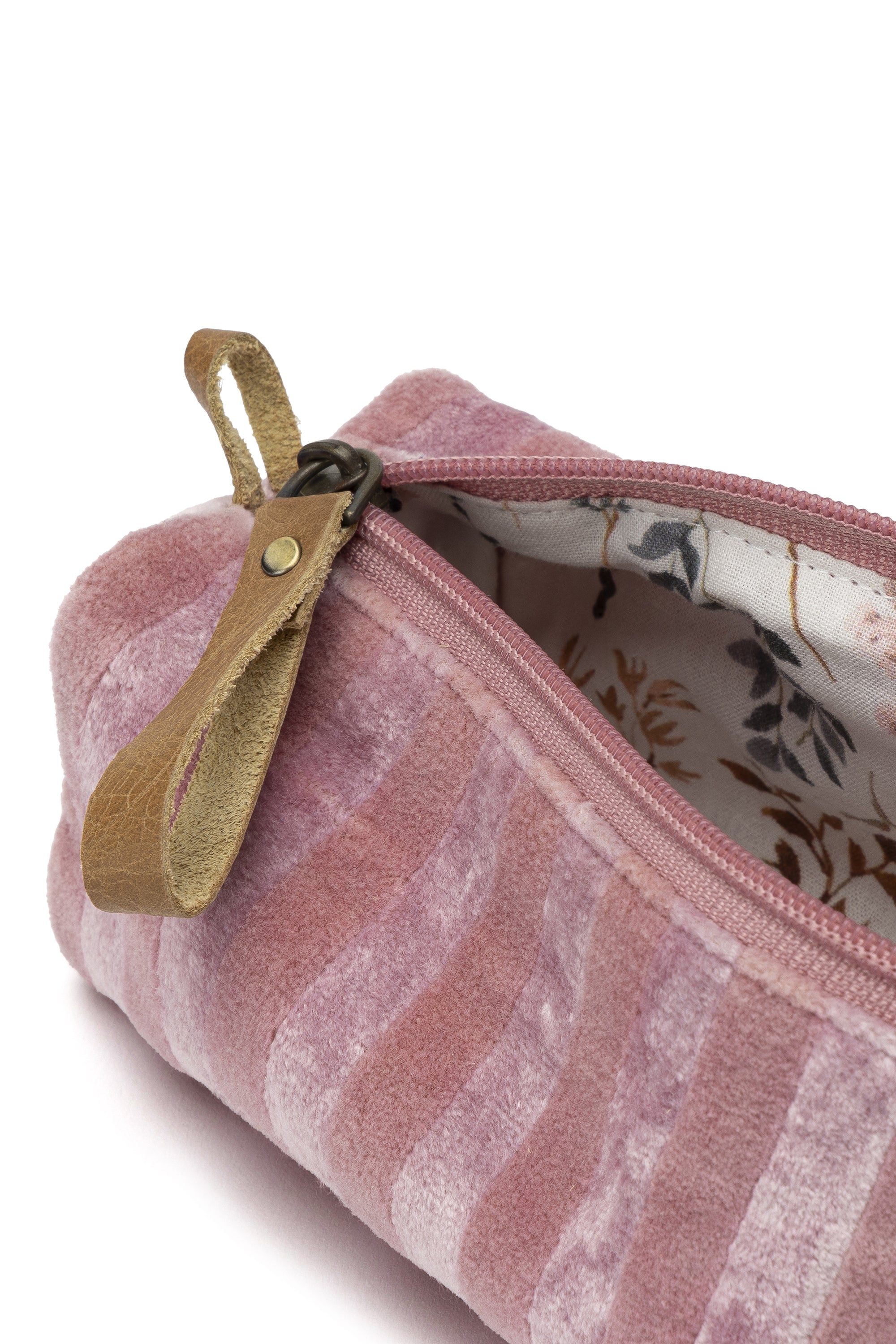 Necessaire pouch in pink, pastel-chic style. A soft, roomy bag for your essentials, perfect for travelling or for keeping your beauty favourites organised. Explore every model in the collection in a variety of designs and sizes, from the Soft Bag to the Jewelry Box for storing jewelry. Also available in mid-blue. Body: cotton blend. Floral-pattern lining: 100 % cotton. Closure: zip. Size: 20 (W) × 6 (H) × 5 (D) cm.