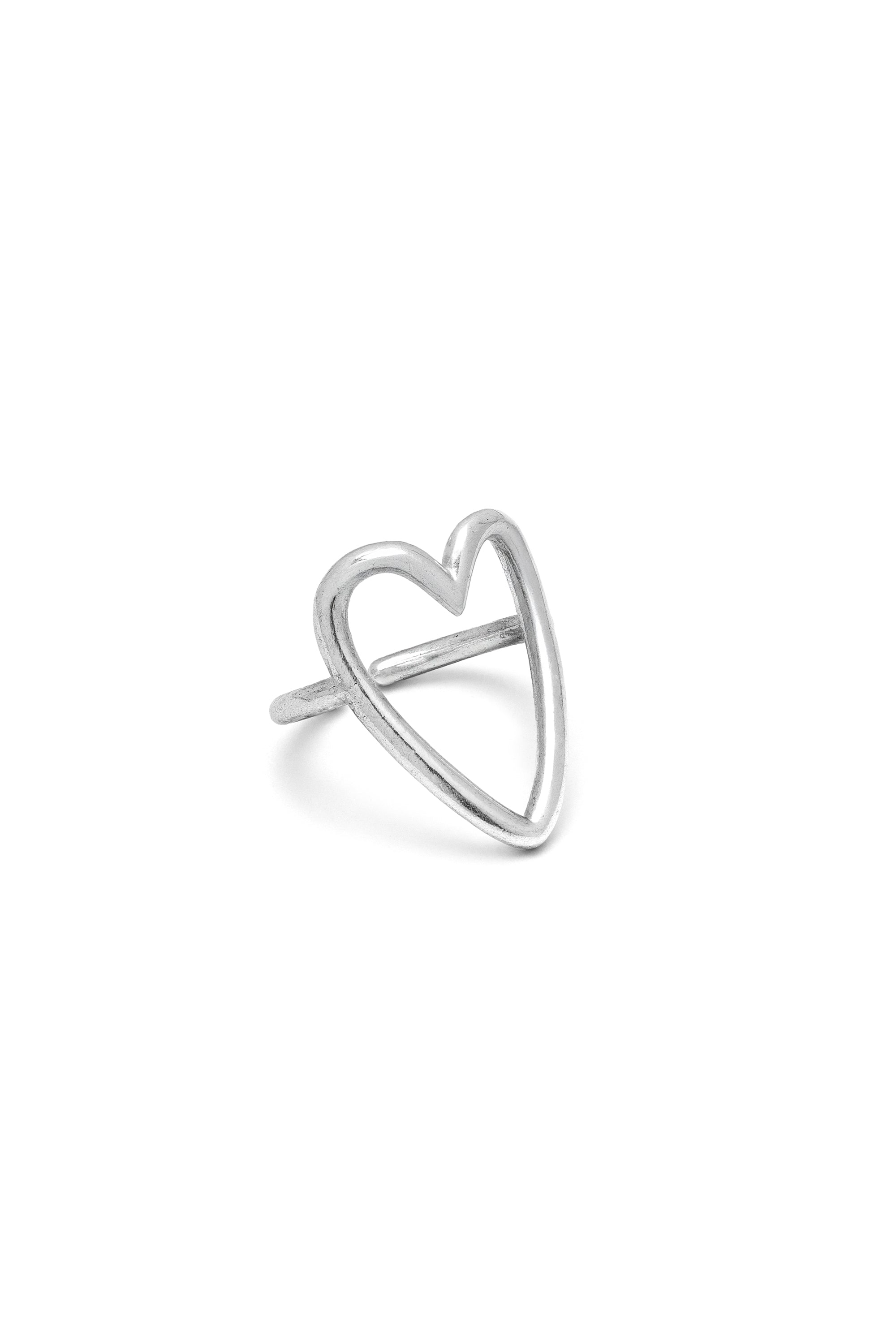 A subtle profile that draws the shape of a stylised heart, symbolising a special message to wear every day. Its lightweight structure makes it perfect for mixing with other rings in the collection. Adjustable model. Silver plating. Nickel tested.