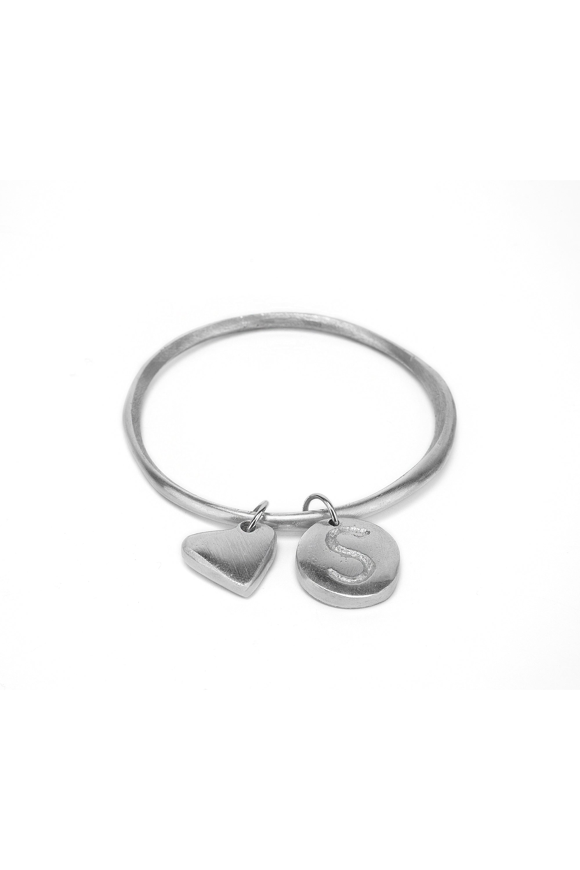 Flat heart charm to add to round bracelet. Create your own mix of charms for a personalized stack. Handmade, made of 100% recycled aluminium. Nickel tested. Handmade, unique, handcrafted jewelry perfect for all your looks or as a gift idea.
