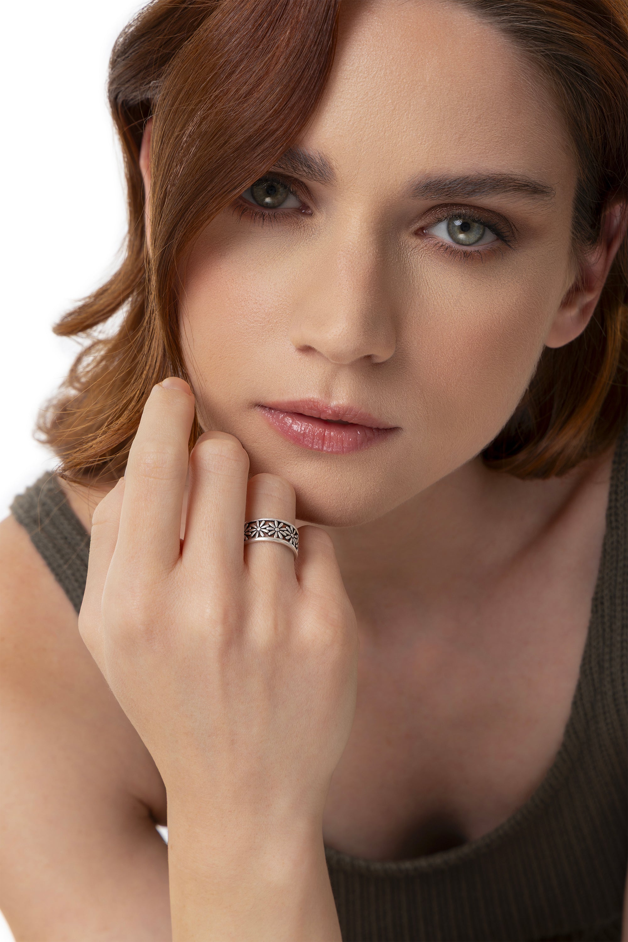 To preserve the sculptural finish of your jewelry, we recommend storing pieces in their pouch when not in use and avoiding exposure to harsh chemicals, perfumes, or water. Gently clean with a soft cloth or mild soap as needed to maintain their natural luster.