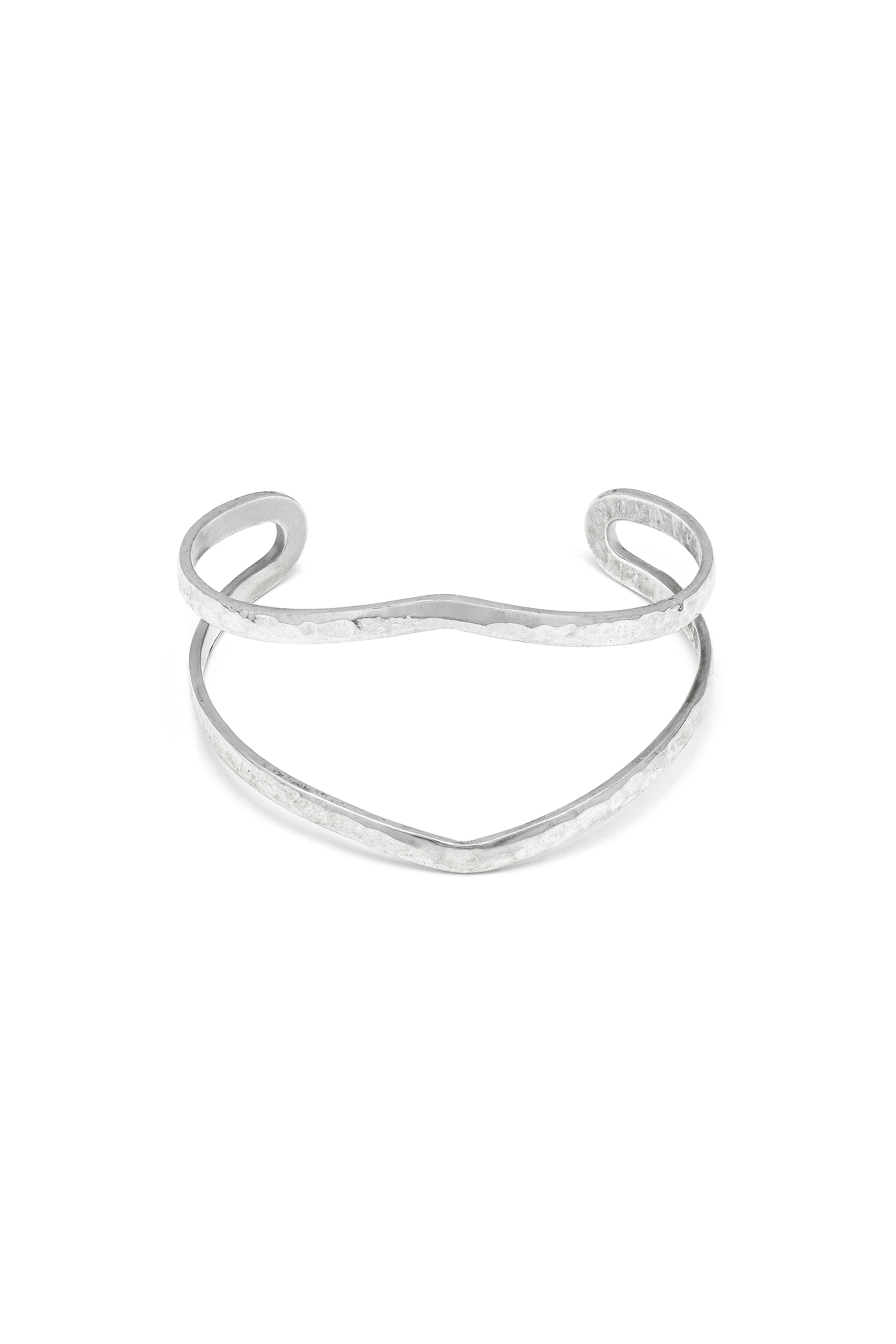 An architectural bangle design, shaped by open lines that wrap elegantly around the wrist. A fashion-forward piece, essential yet full of character, ideal for completing minimalist looks or sharp tailoring. Diameter: 6 cm. Material: 100% handcrafted silver plating. Nickel tested. Handmade, unique, handcrafted jewelry perfect for all your looks or as a gift idea.