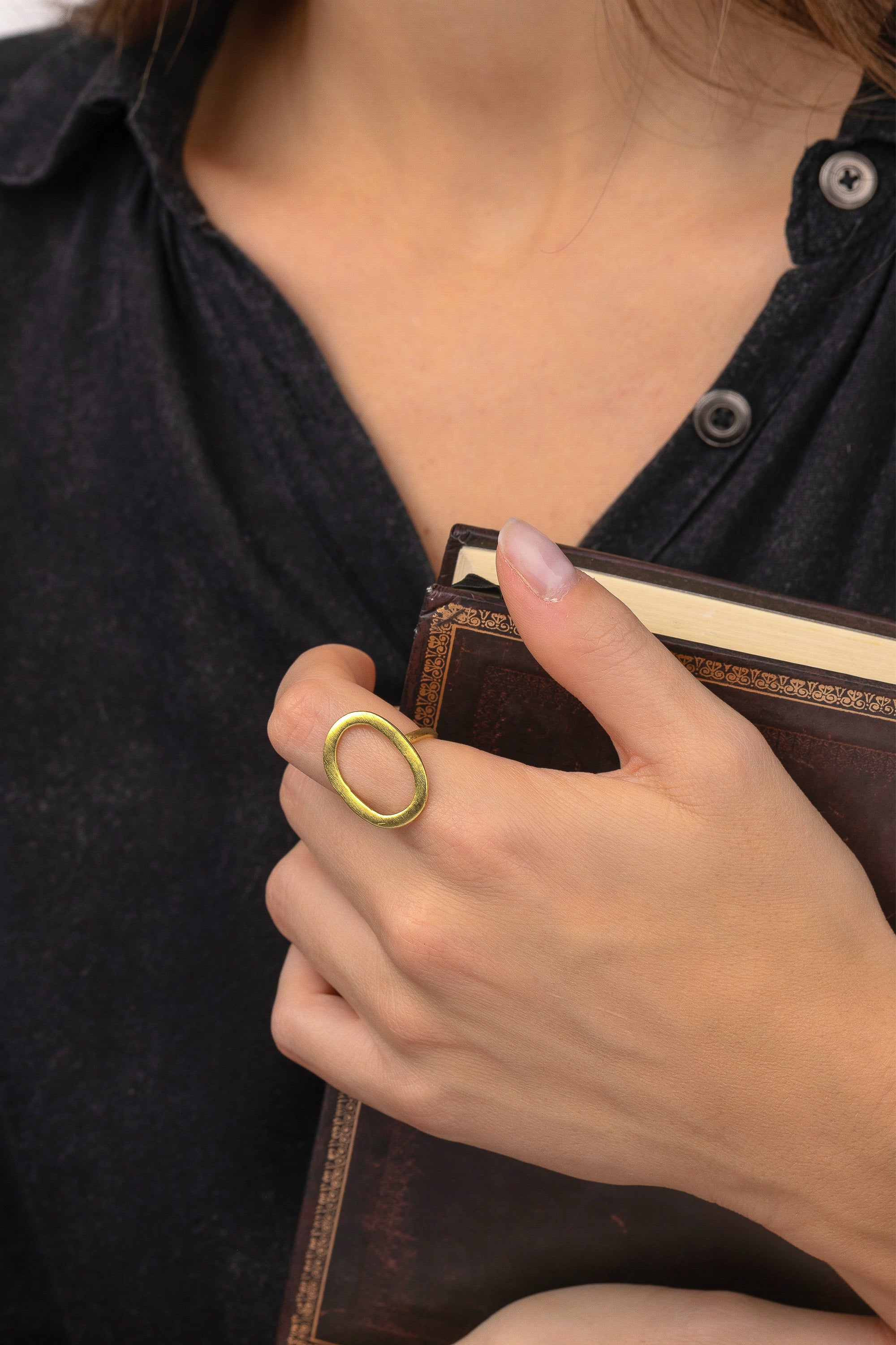 Minimal ring with an irregular, organic oval—a contemporary, feminine signature that’s lightweight and versatile, perfect to mix with your favorite rings across styles and volumes. Handmade in recycled brass. Nickel tested. Handmade, unique, handcrafted jewelry perfect for all your looks or as a gift idea.