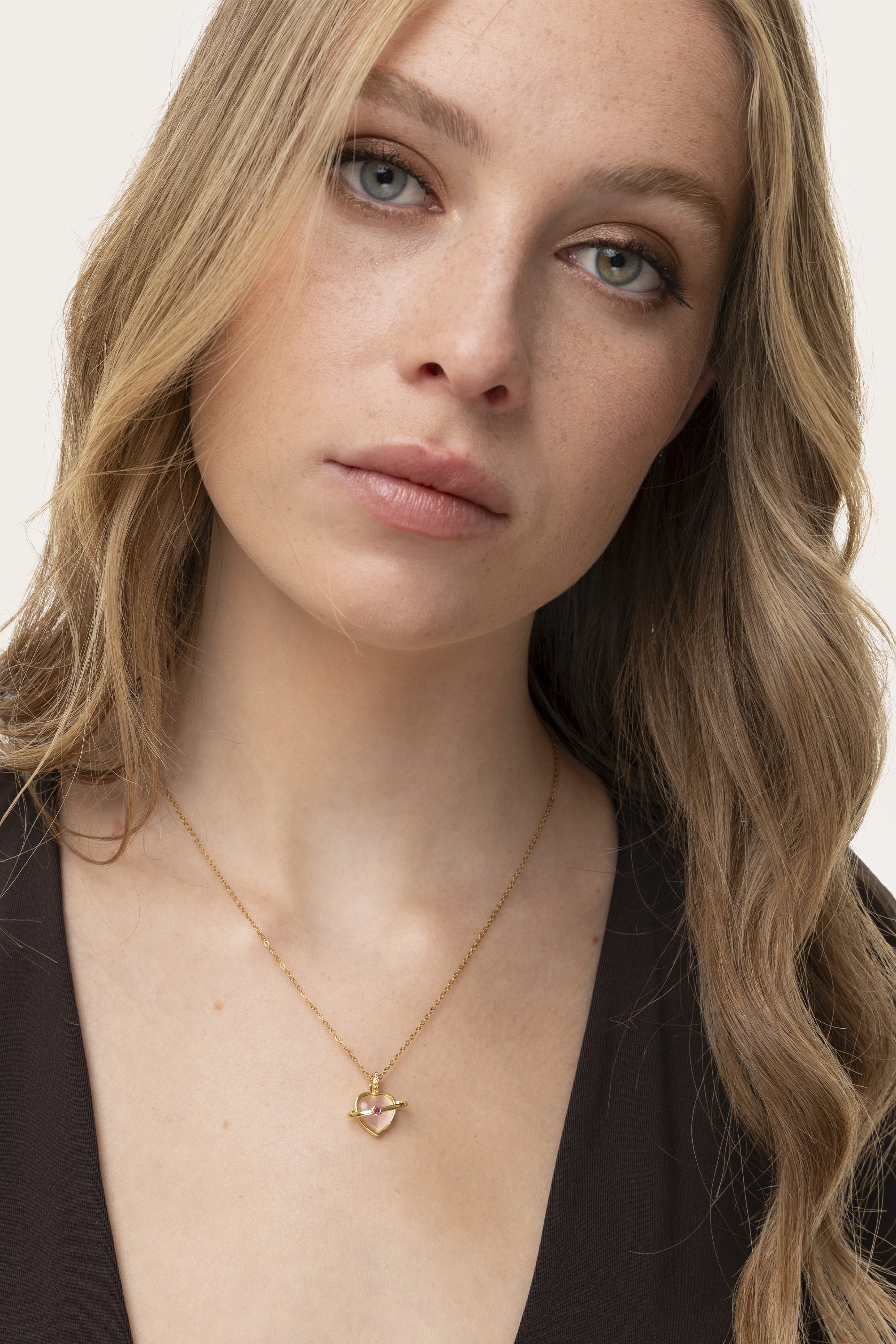 Not your usual heart: the delicacy of pink glass meets the elegance of gold plating. Add this necklace to one or more minimal pieces for a layered effect. Nickel tested. Gold-plated stainless steel with cubic zirconia details. Unique jewelry perfect for all your looks or as a gift idea.