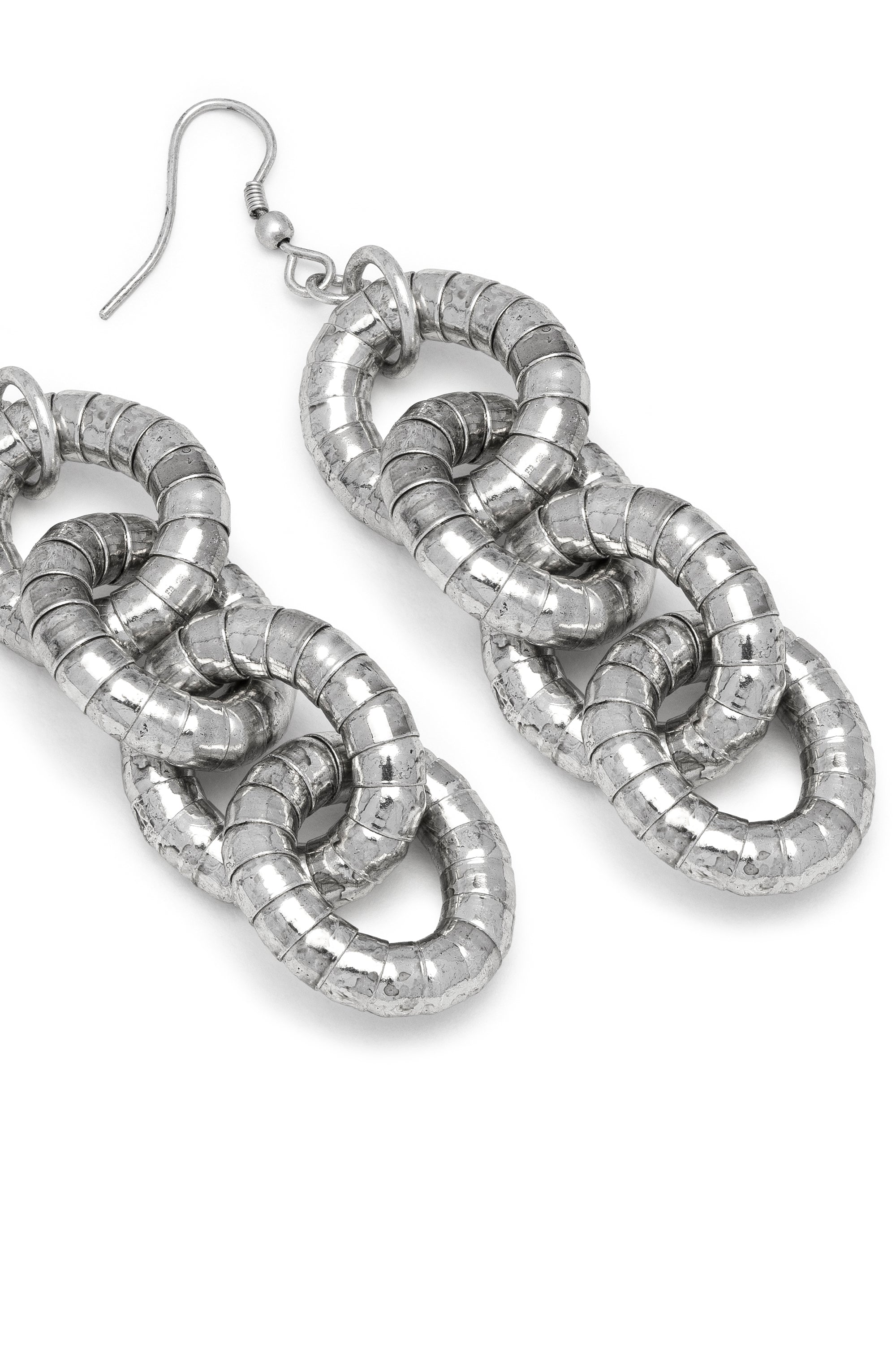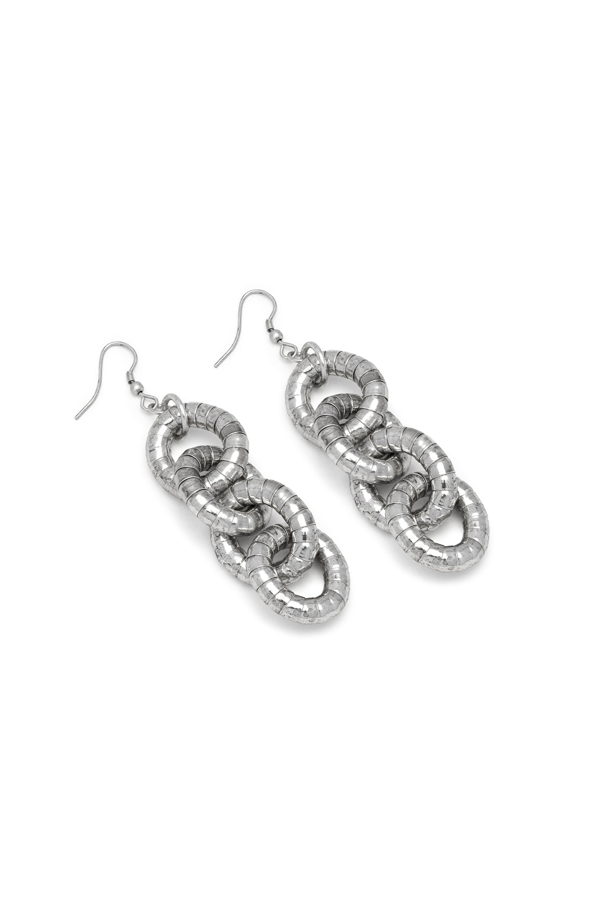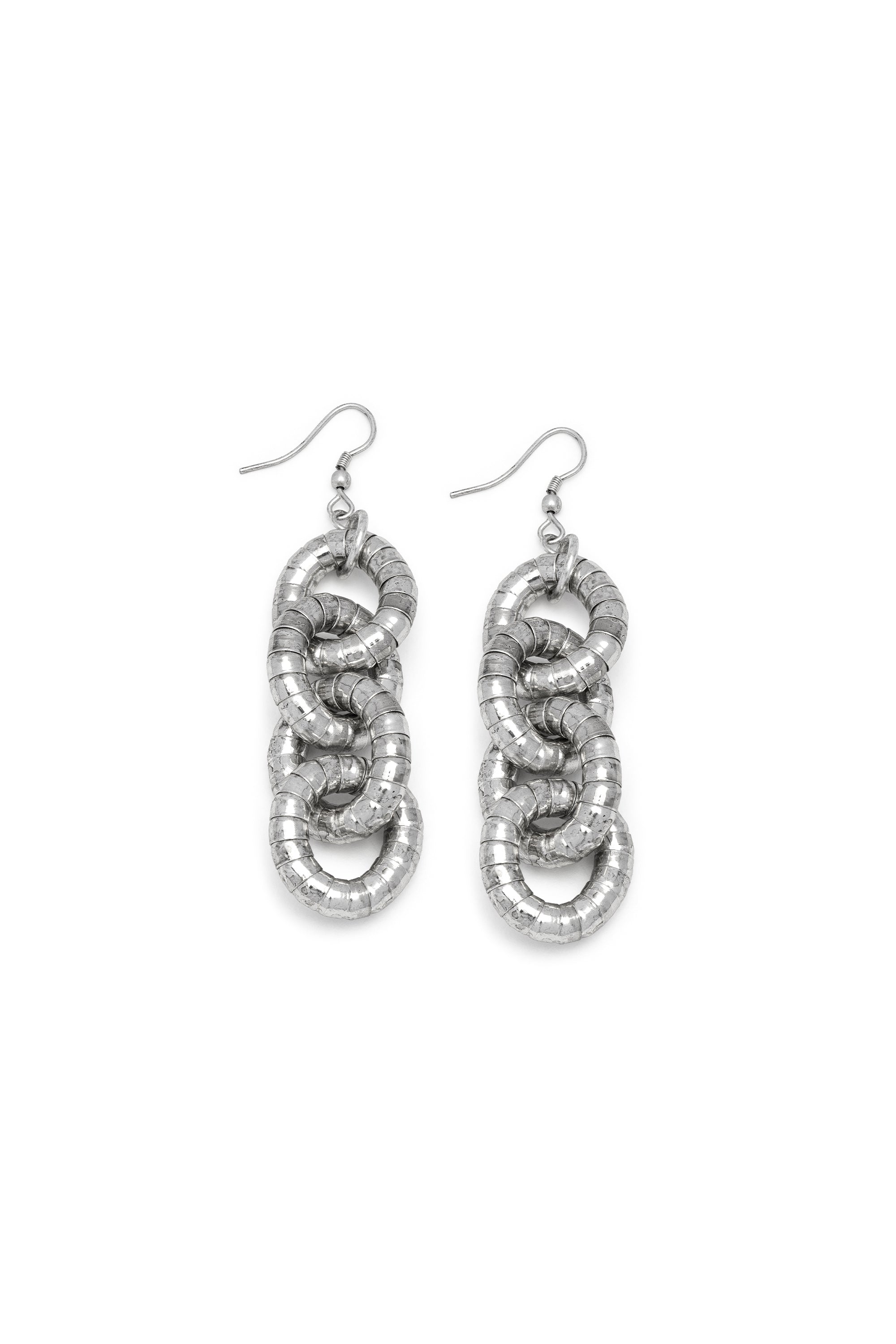 Bold style for every occasion. Chain drop earrings with snake texture, luminous and impactful. Perfect for a bold evening look or to give a stylish twist to a simple outfit. Hook closure. 100% handcrafted silver plating. Nickel tested. Handmade, unique, handcrafted jewelry perfect for all your looks or as a gift idea.