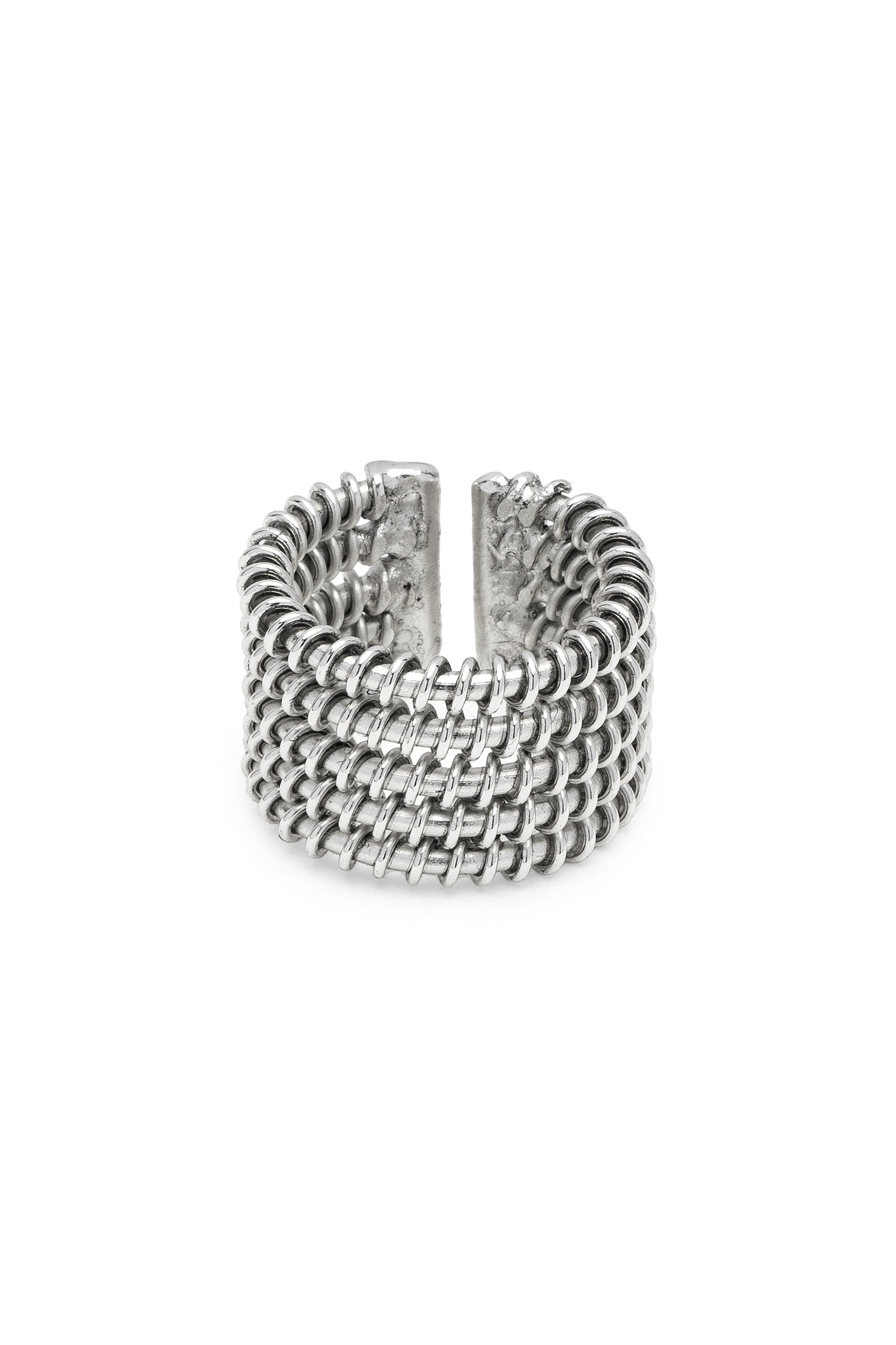 Wide band ring featuring a spring texture. A versatile and bold model, perfect to empower a minimal look. Adjustable model. 100% handcrafted silver plating. Nickel tested. Handmade, unique, handcrafted jewelry perfect for all your looks or as a gift idea.