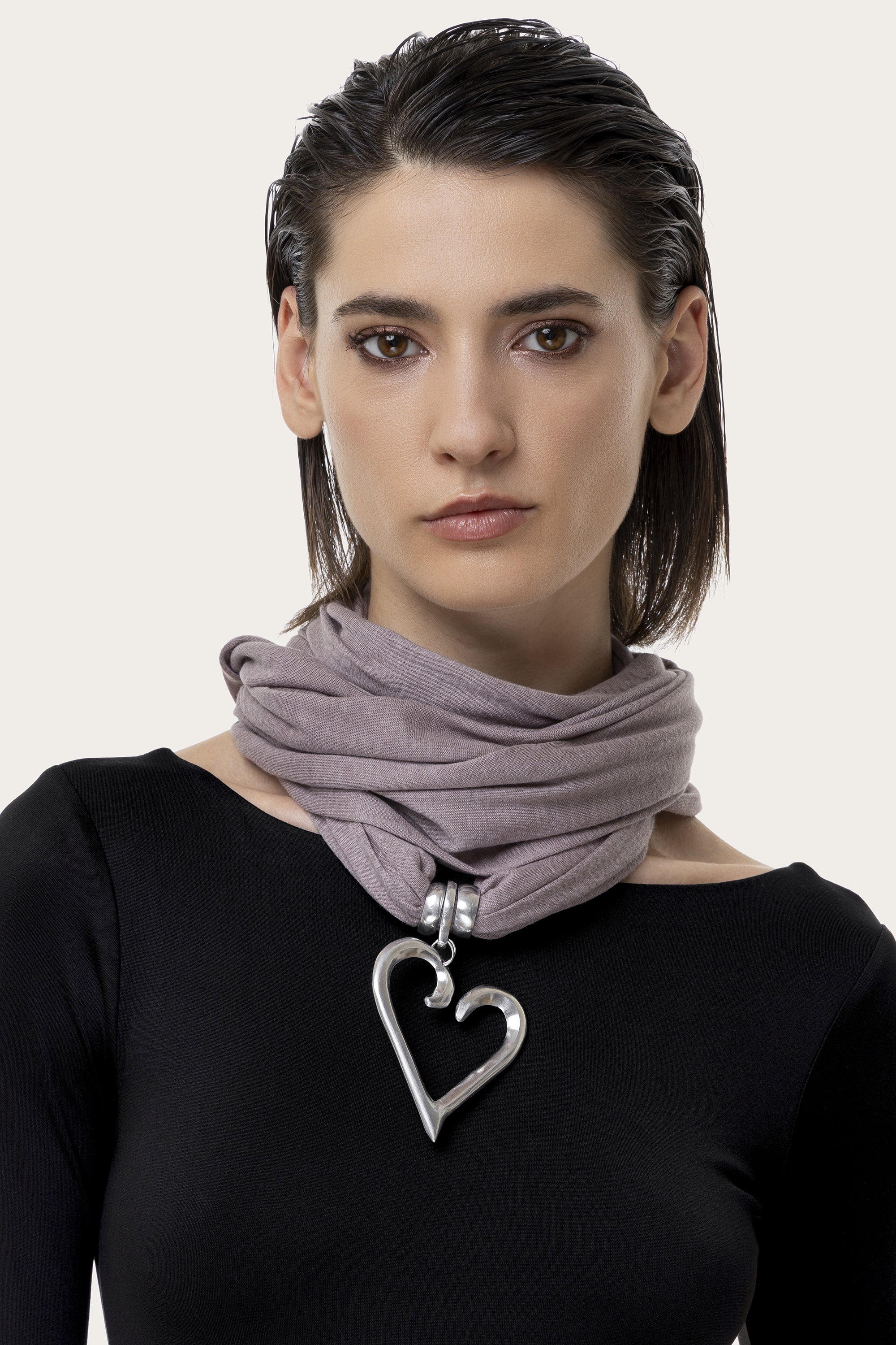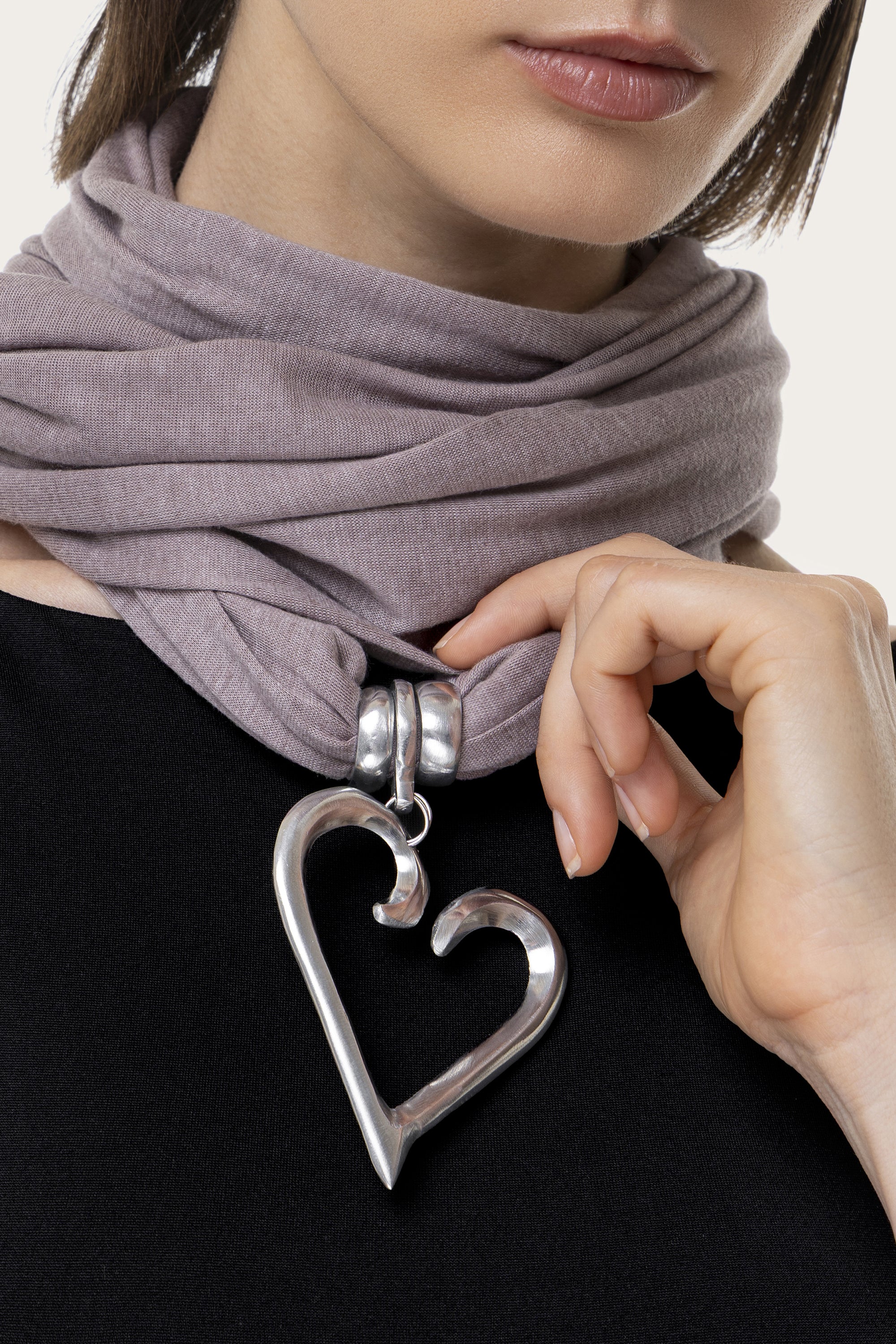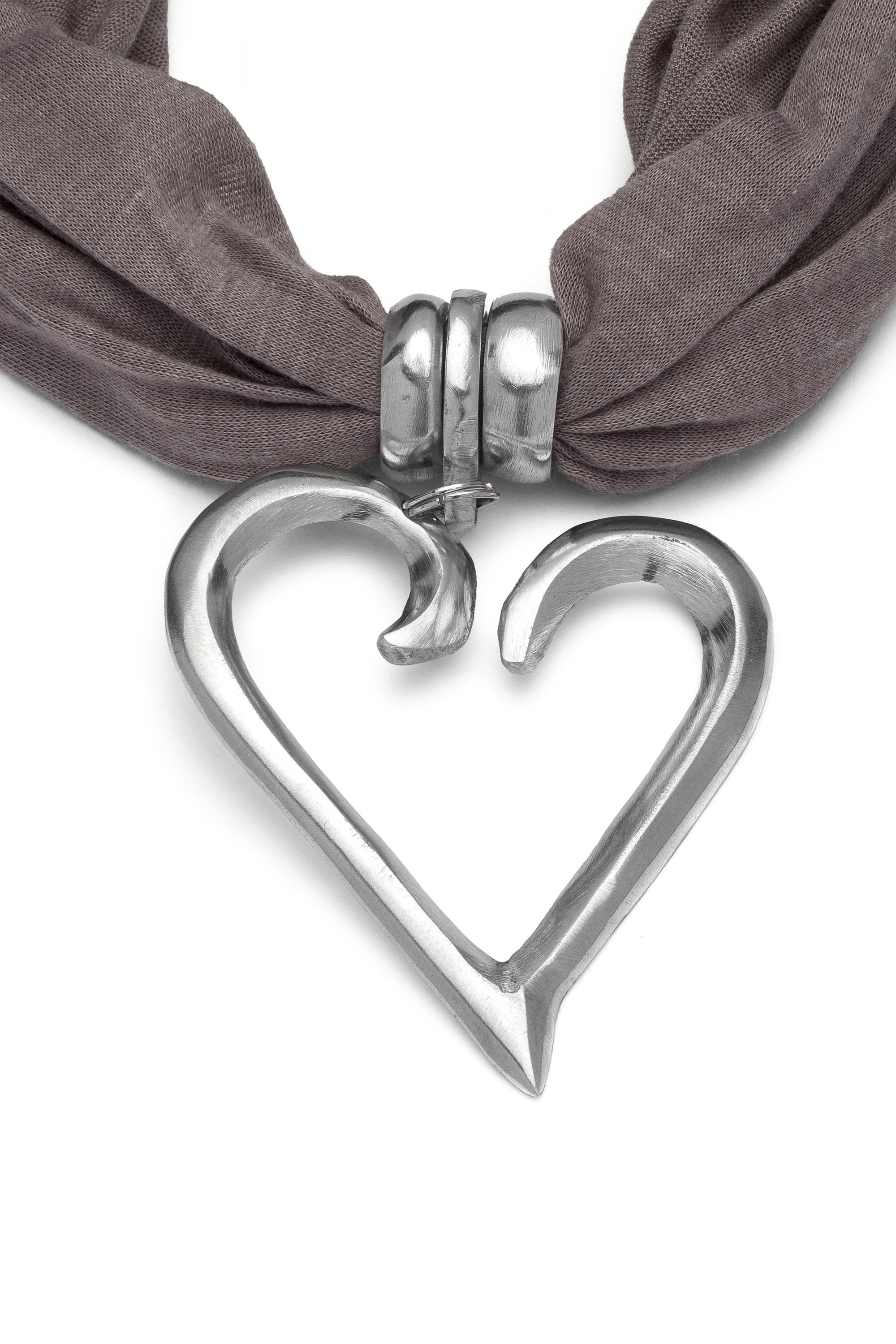 Un accesorio de estilo casual chic, pensado para acompañarte en cada momento del día. Realizada en suave jersey y adornada con un colgante en forma de corazón estilizado en aluminio 100% reciclado, esta bufanda combina confort, estilo y versatilidad. Perfecta para llevar siempre en el bolso, añádela a tus looks como toque final day&night. Color beige. Nickel tested. Elaboración artesanal. Joyas hechas a mano, únicas y artesanales, perfectas para todos tus looks o como idea de regalo.