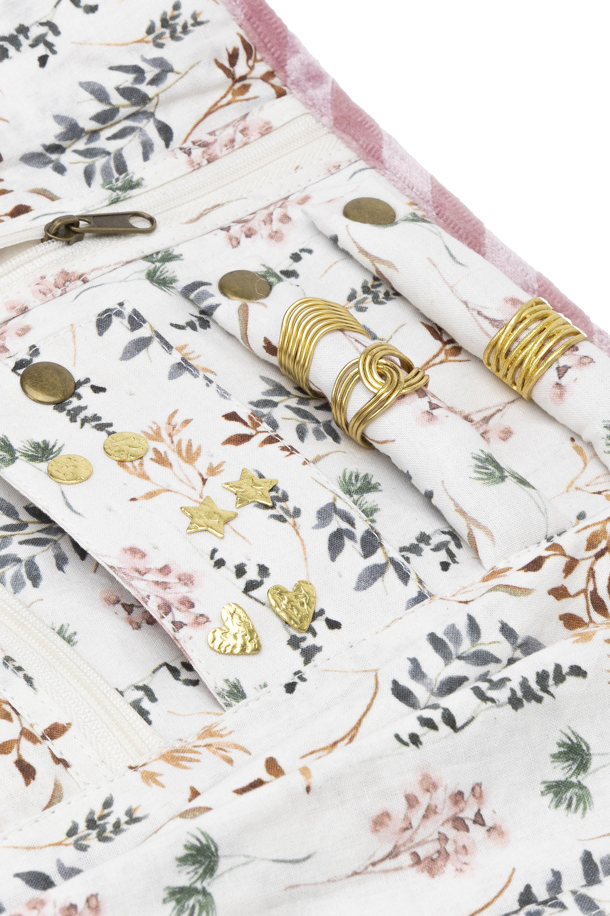 Pochette Joyero color rosa en estilo pastel-chic. El contenedor de ensueño para tus joyas. Lleva siempre contigo tus bijoux favoritos. Suave y práctica, esta pochette con cierre tipo sobre es perfecta para un fin de semana fuera de casa o para llevar en un maxi tote de viaje. Disponible también en color azul. Material cuerpo: mezcla de algodón. Material asas: mezcla de algodón. Forro con estampado floral: 100% algodón. Bolsillo interior: 1 con cremallera. Cierre: cremallera. Medidas: 30 (A) x 17 (H) x 16 (P) cm. Asas: 46 cm.