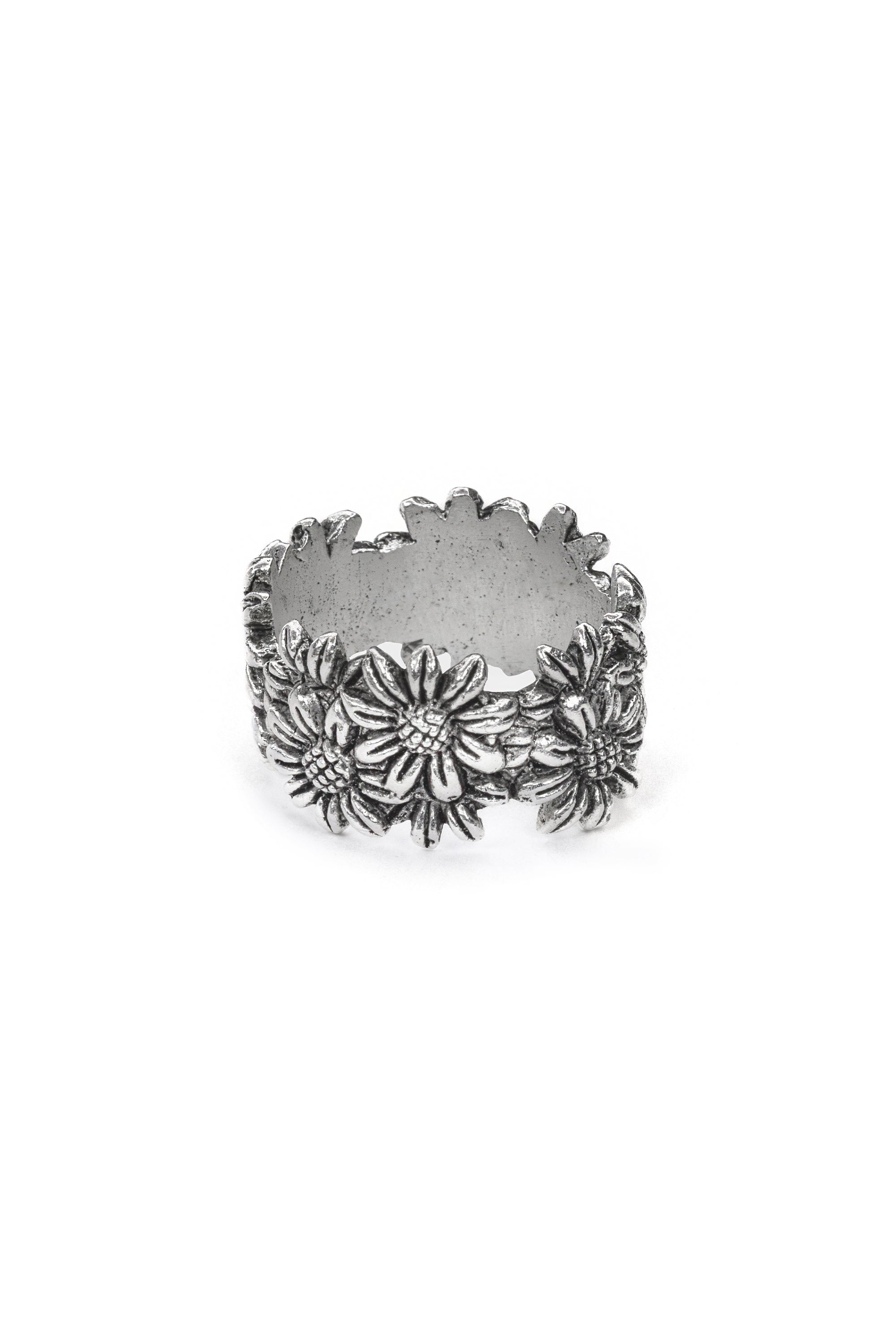 Anillo margaritas en relieve: banda cubierta de pequeñas margaritas en volumen, un ramo escultórico que mezcla romanticismo y carácter, perfecto para elevar los looks de diario. Baño de plata 100% artesanal. Probado al níquel. Joyería hecha a mano, única y artesanal, perfecta para todos tus looks o como idea de regalo.
