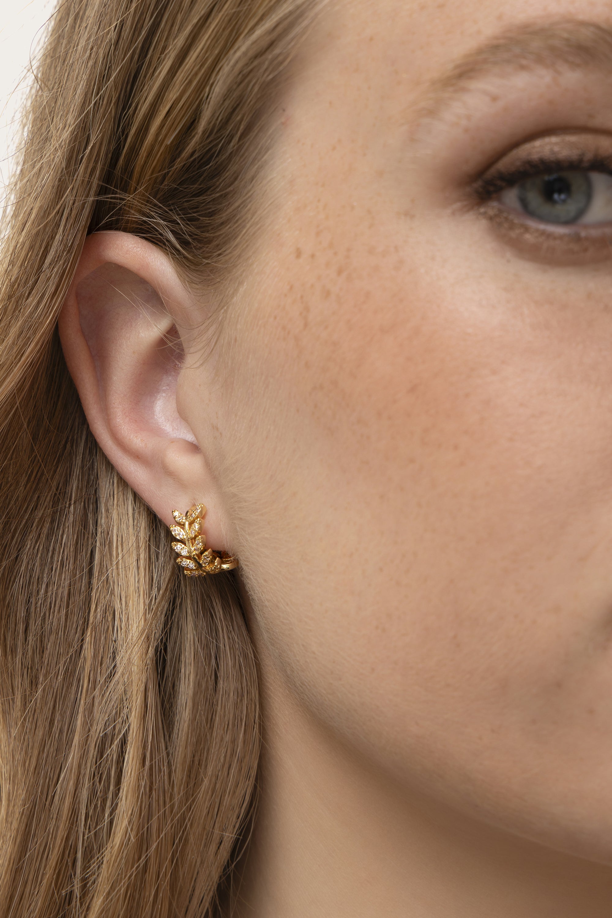 Hojas doradas que brillan a cada movimiento: estos ear cuff de diseño envolvente mezclan líneas naturales y destellos pavé de circonita para un efecto super glam. Realizados en acero chapado en oro, añaden un giro luminoso a tus looks. Fáciles de llevar gracias al cierre oculto, se usan solos para un detalle chic o con otros pendientes para un stack audaz. Diámetro 1 cm. Níquel testado. Chapado en oro con incrustaciones de circonita cúbica. Joyas únicas perfectas para todos tus looks o como idea de regalo.