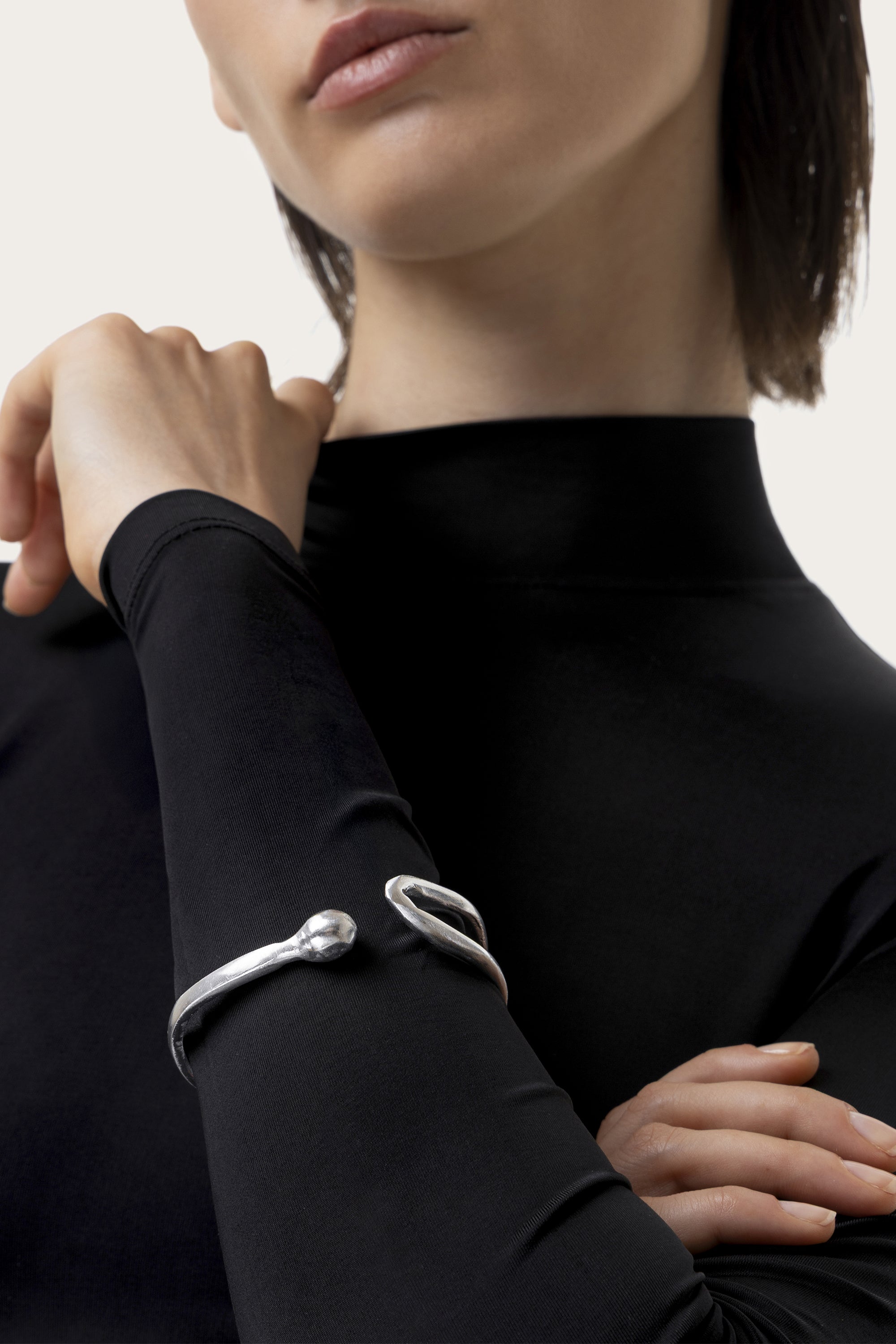 Brazalete semirrígido estilo urban chic en aluminio 100% reciclado. Una joya de diseño moderno, fácil de combinar y adaptable al brazo. Un must have en tu joyero para looks de día o de noche. Nickel tested. Elaboración artesanal. Joyas hechas a mano, únicas y artesanales, perfectas para todos tus looks o como idea de regalo.