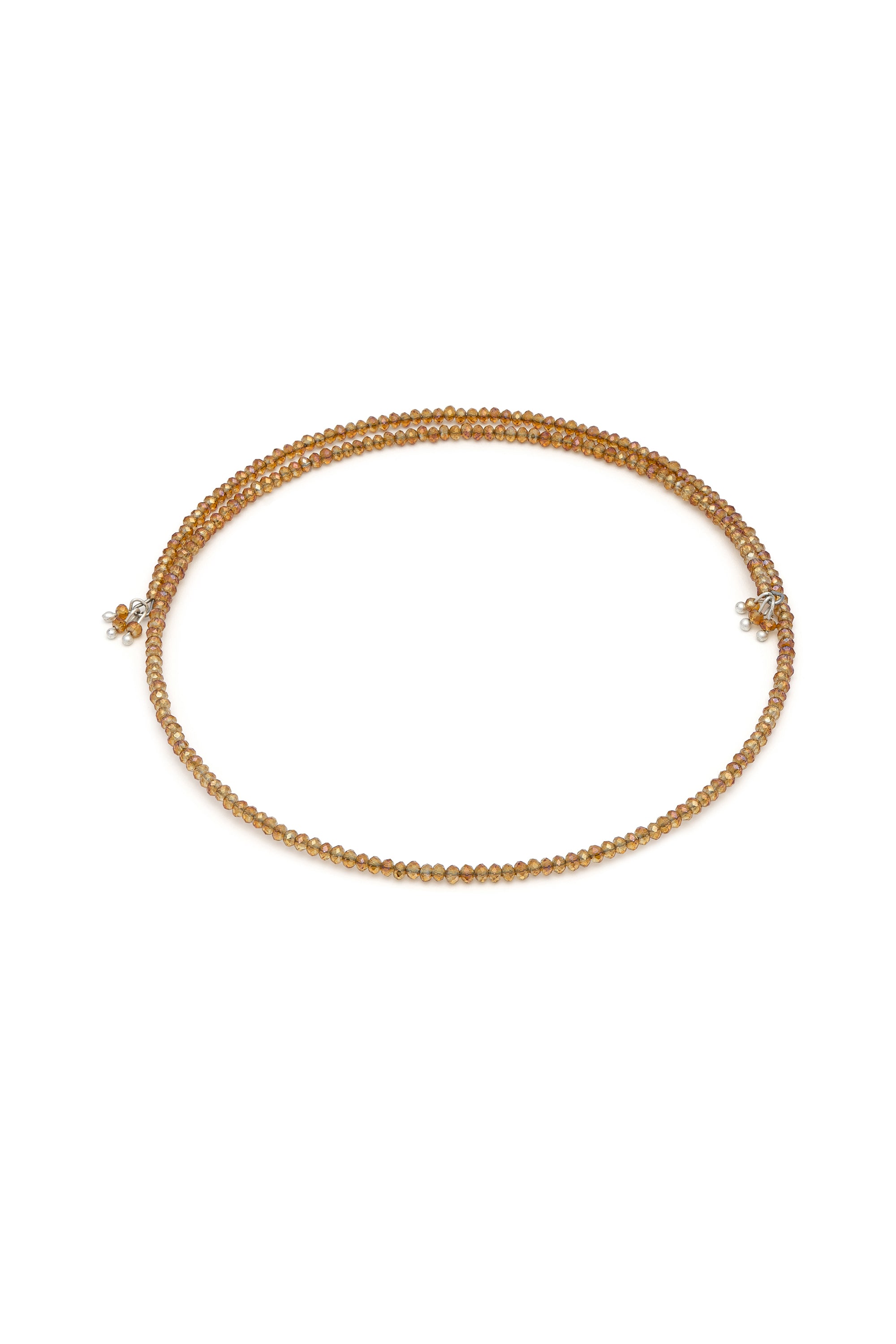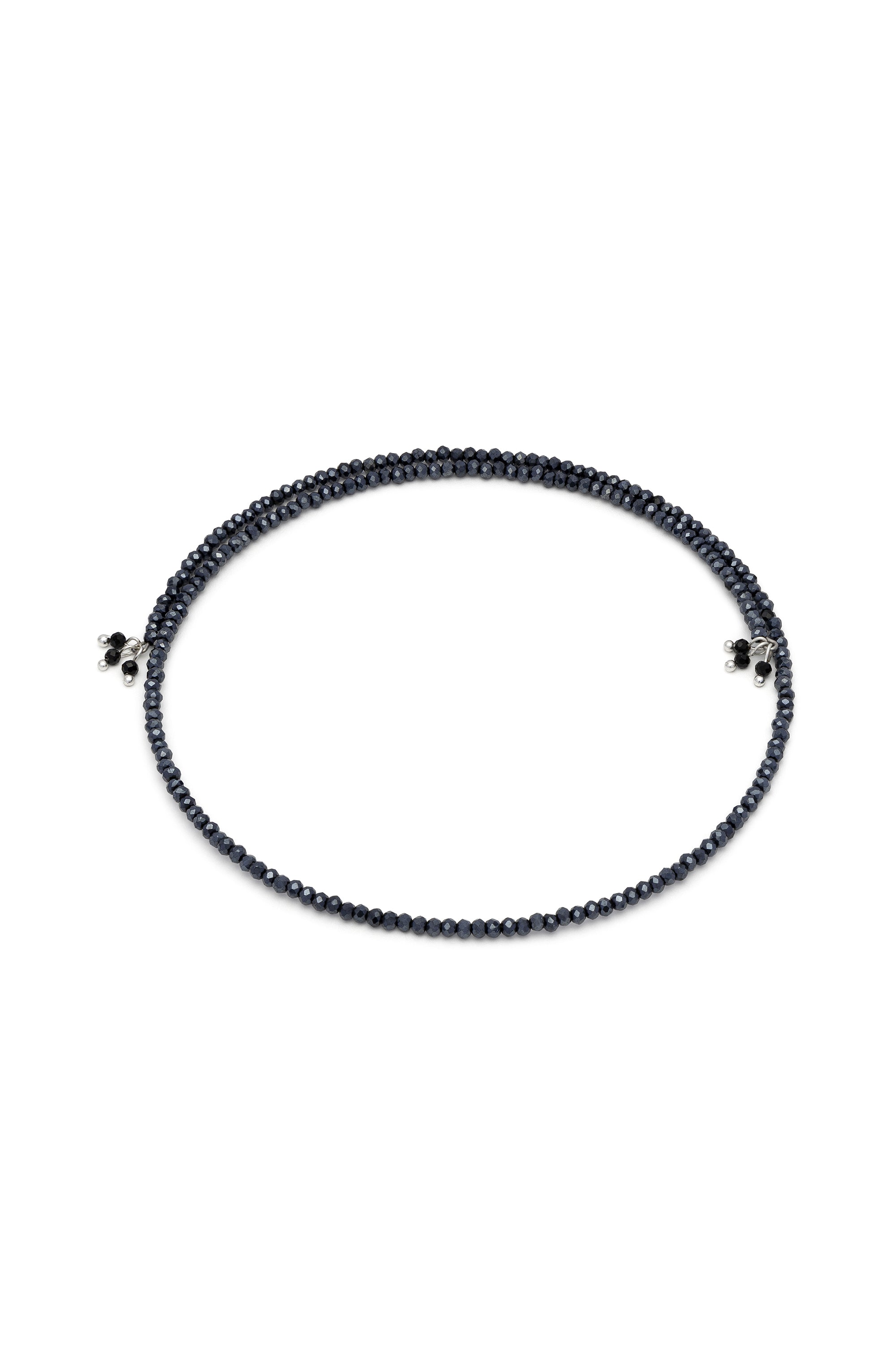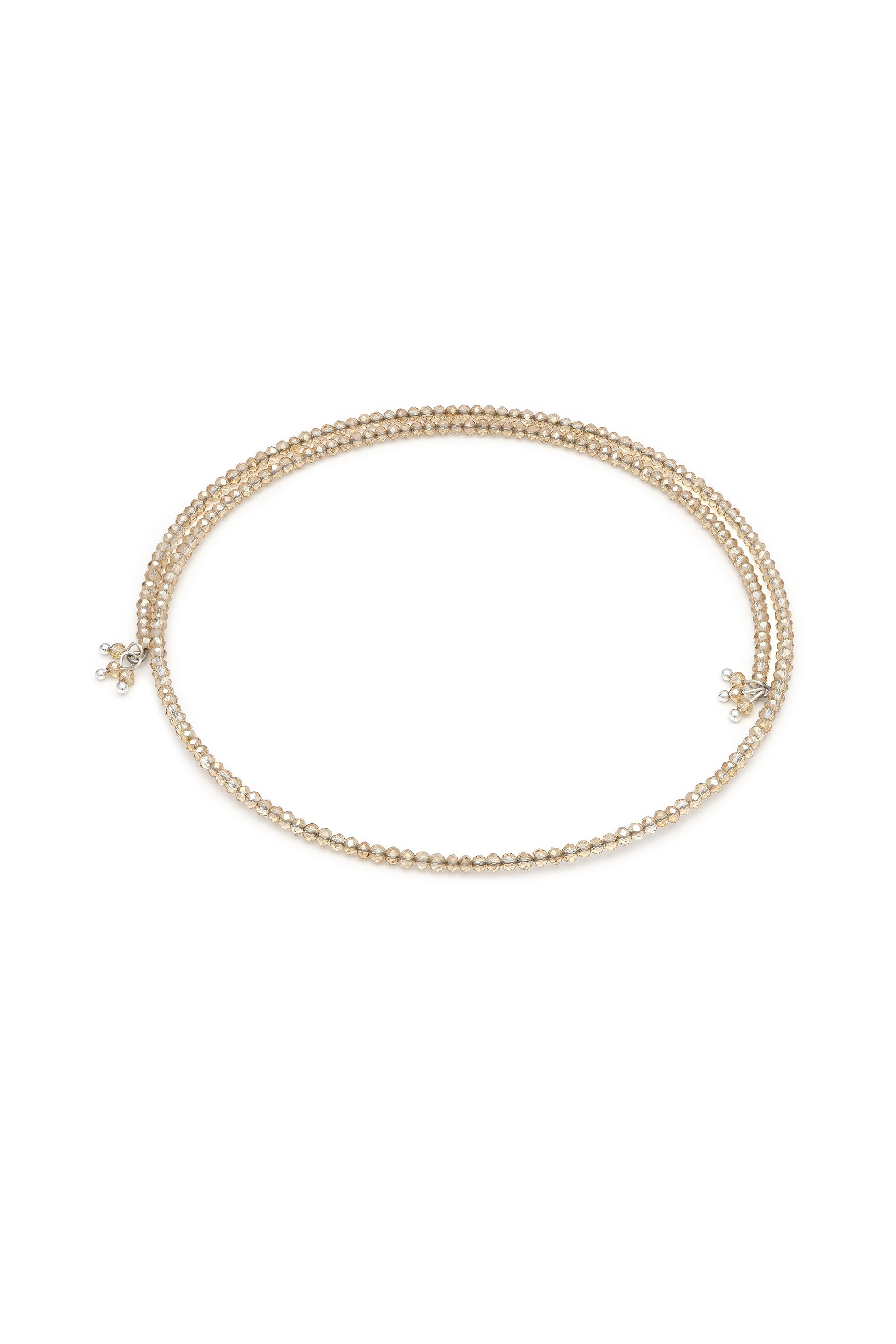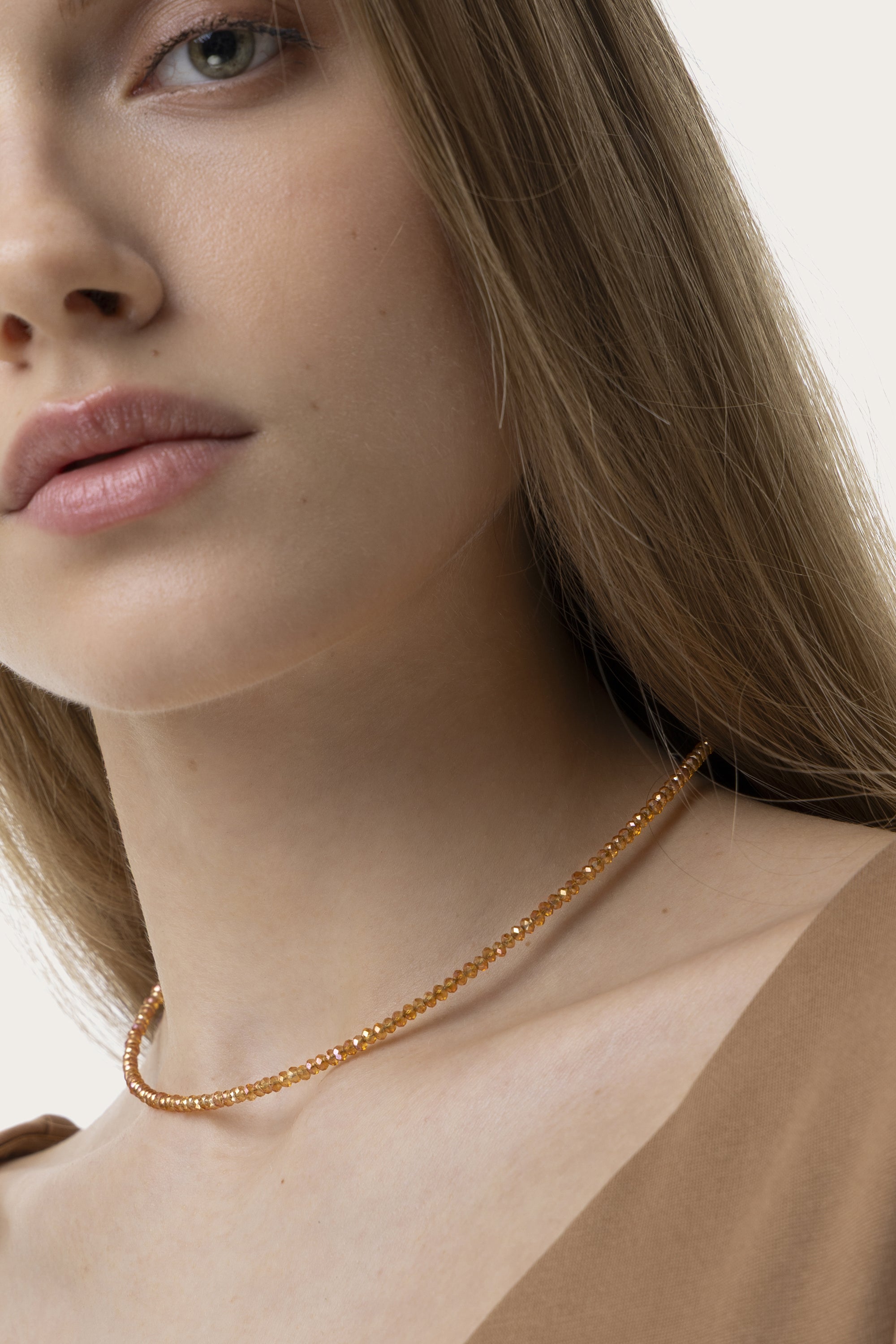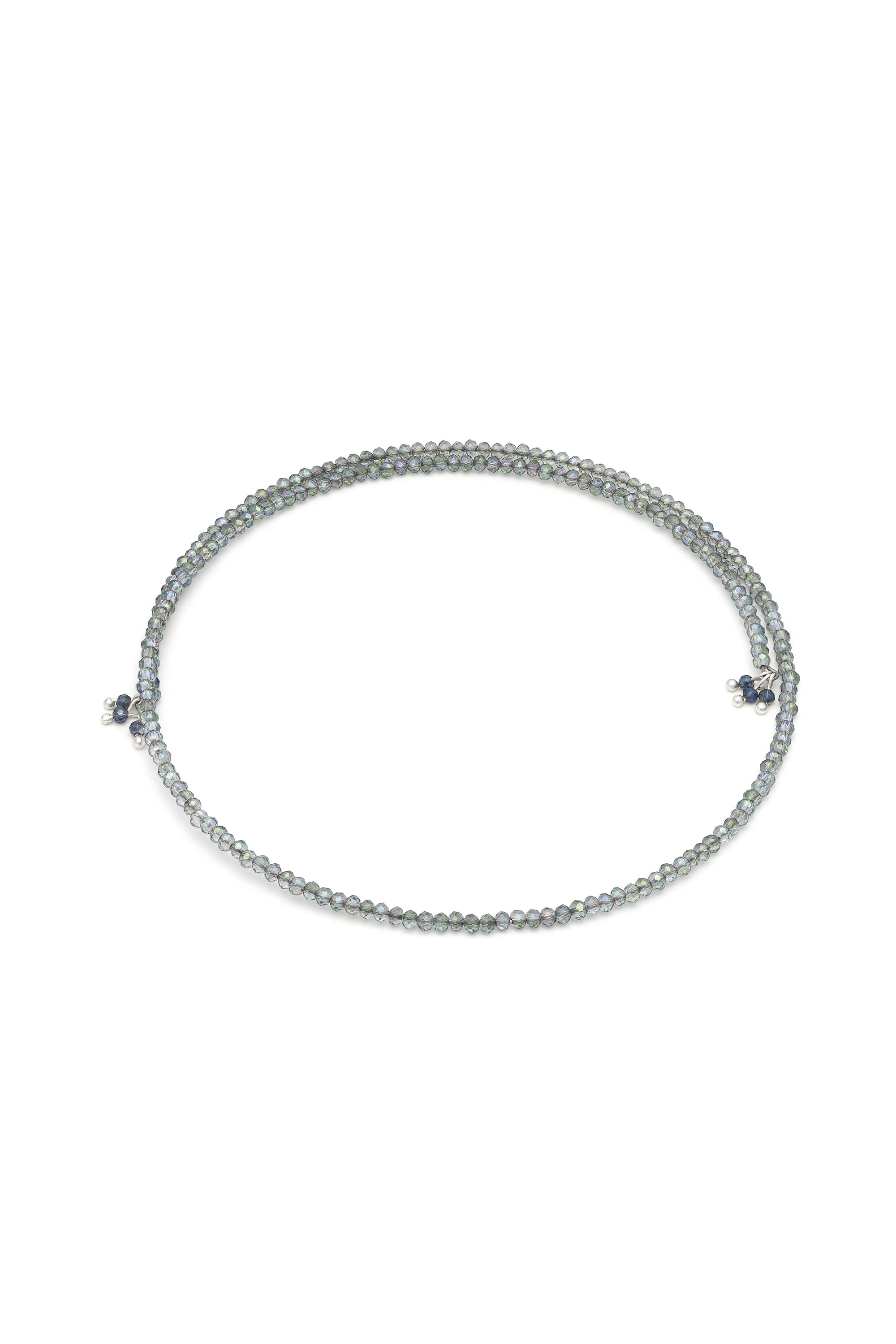Collar tipo gargantilla con doble hilera de cristales facetados en vidrio de color. Los reflejos tornasolados aportan luz al rostro y un toque elegante al look. Perfecta para llevar sola o combinada con otras joyas en un layering de tendencia. Cierre de muelle ajustable. Disponible en los colores: azul noche, gris perla, ámbar, champán y multicolor. Material: vidrio y chapado en plata. Nickel tested. Elaboración artesanal. Joyas hechas a mano, únicas y artesanales, perfectas para todos tus looks o como idea de regalo.