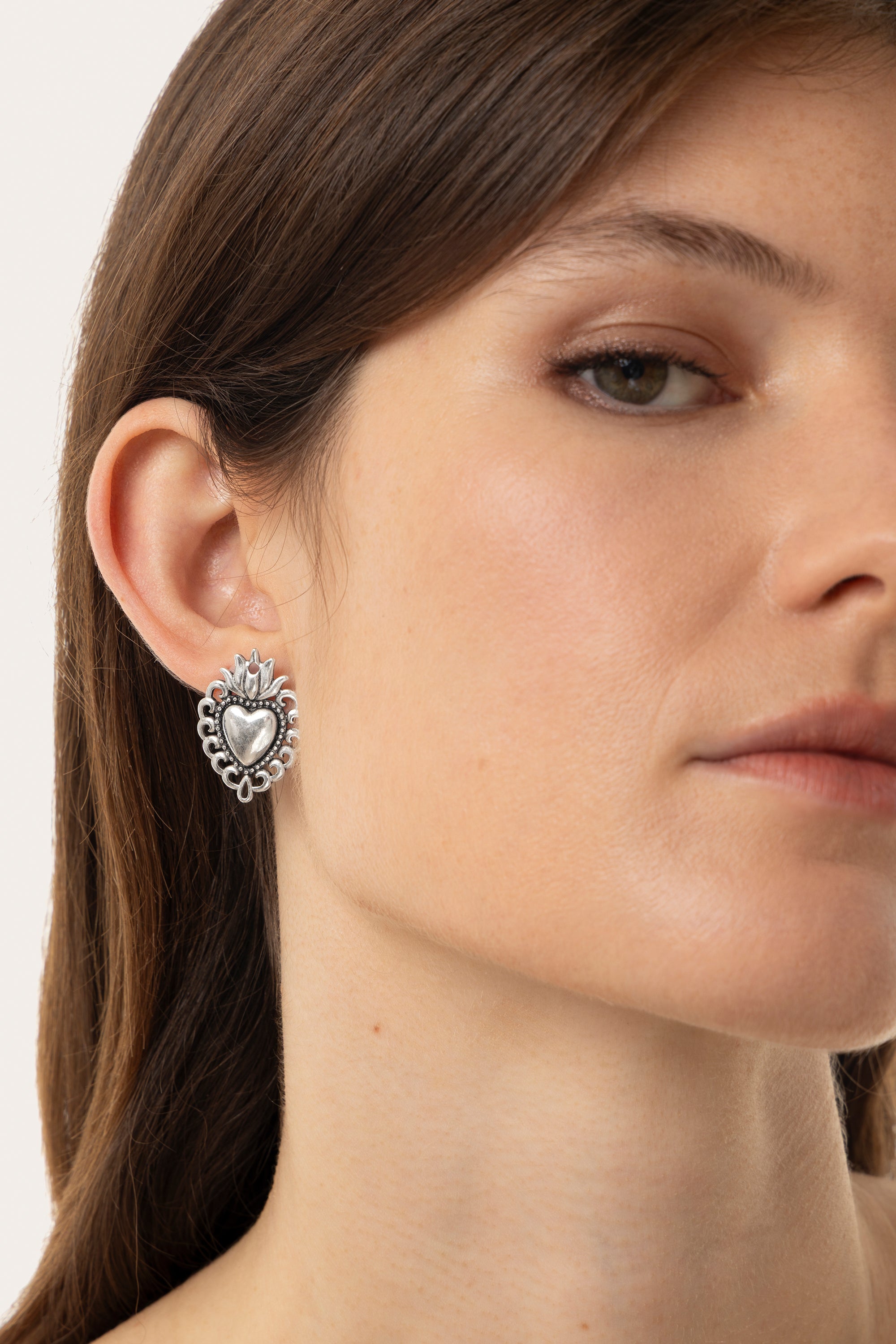 Un statement de estilo boho. El corazón sagrado se reinterpreta con microelementos decorativos que atraen la mirada. Perfectos para añadir carácter a un look urbano o como twist en vestidos de noche. Cierre de mariposa. Chapado en plata 100% artesanal. Níquel testado. Elaboración artesanal. Joyas hechas a mano, únicas y artesanales, perfectas para todos tus looks o como idea de regalo.