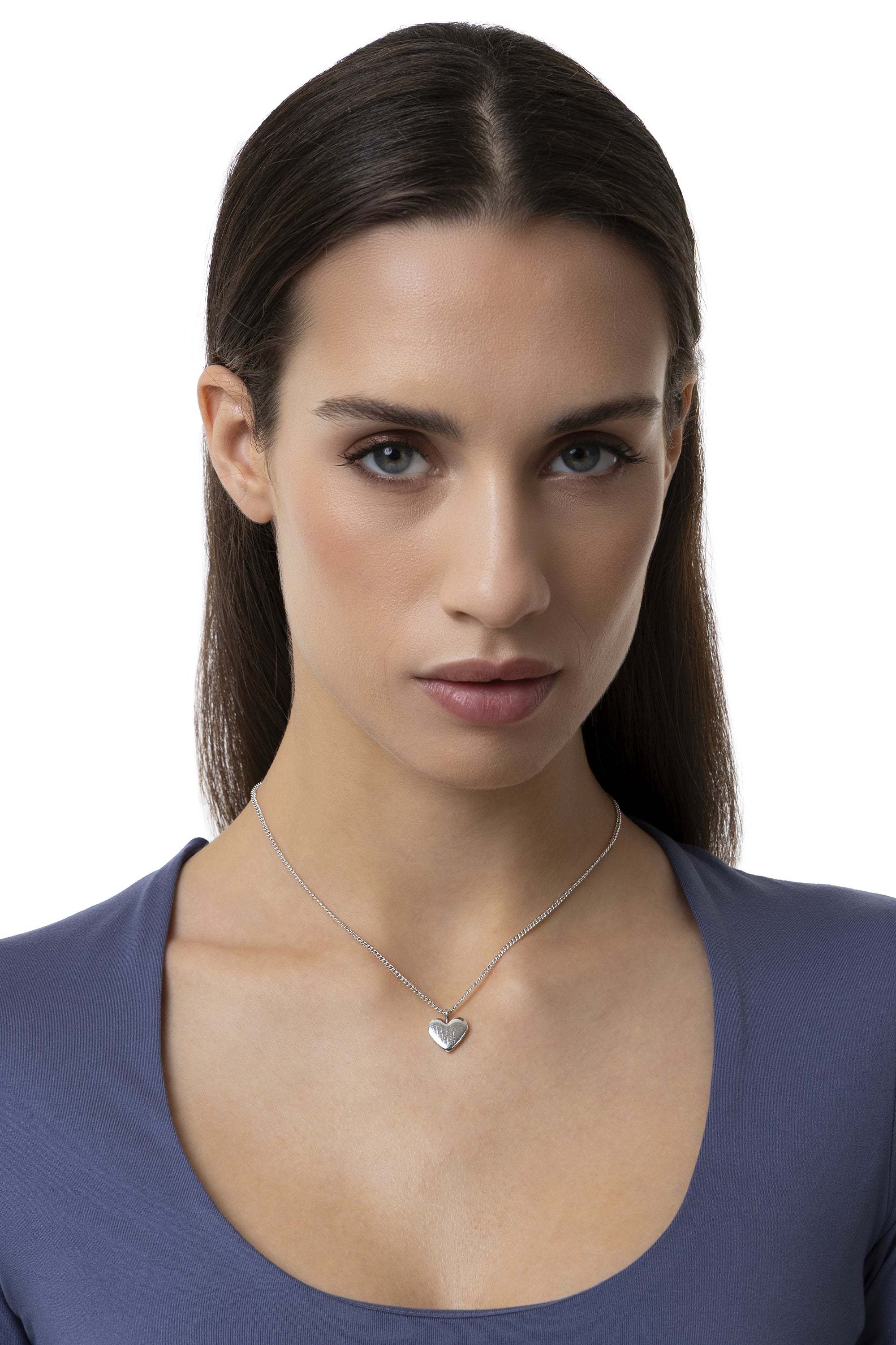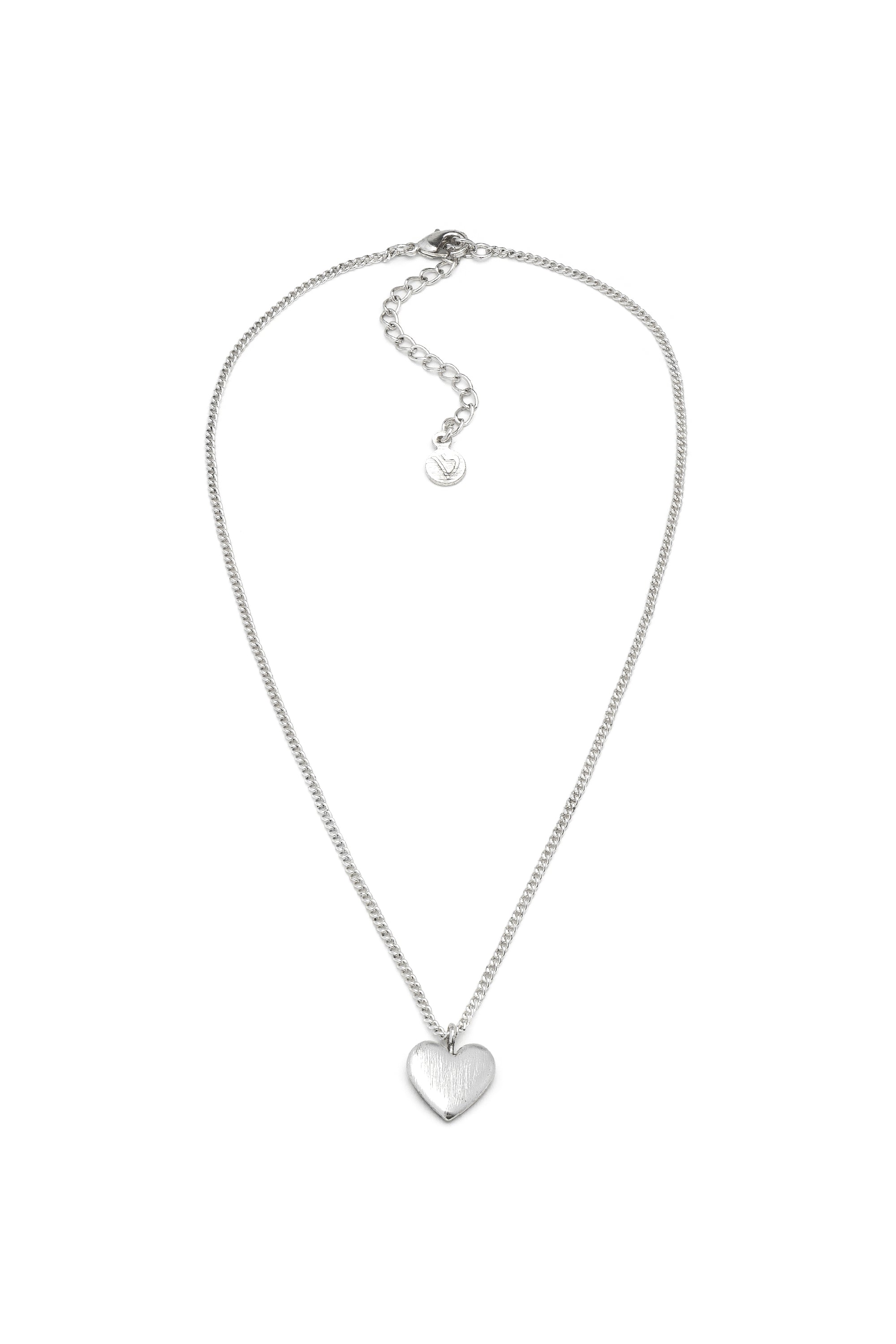 Elegancia esencial y estilo rom?ntico. Este collar destaca por su dise?o minimalista, caracterizado por un colgante en forma de coraz?n con una superficie lisa y satinada. La cadena fina lo convierte en el accesorio perfecto para un look casual chic diario. Una joya de discreto encanto, ideal para llevar sola o combinada con otras cadenas de la colecci?n. Longitud ajustable. Chapado en plata. Nickel tested.