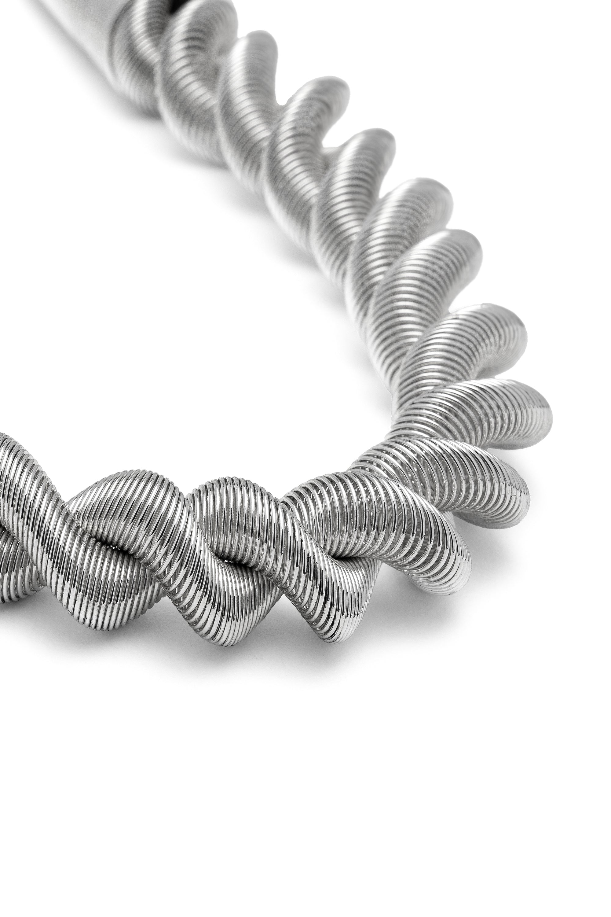 Icónica y envolvente: el collar trenzado con textura “spring” es la joya bold que estabas buscando para realzar tu look de oficina o de noche con un giro especial. Cierre regulable con mosquetón. Longitud del collar 45 cm. Longitud de cadena extra 6,5 cm. Material: chapado en plata 100% artesanal. Níquel testado. Elaboración artesanal. Joyas hechas a mano, únicas y artesanales, perfectas para todos tus looks o como idea de regalo.