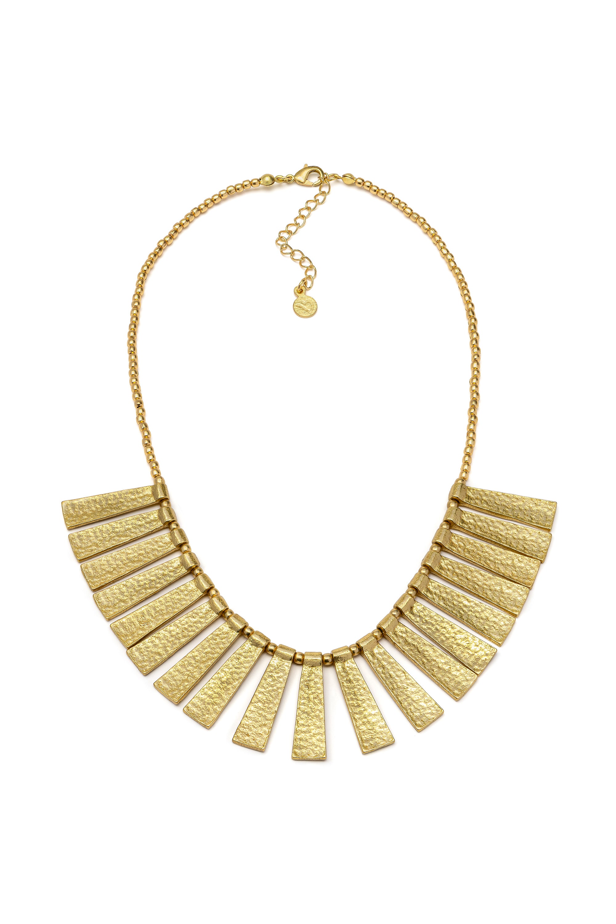 Collar de latón reciclado con diseño linear. Longitud del collar: 40 cm. Cadena adicional de 6,5 cm. Cierre ajustable con mosquetón. Nickel testado. Artesanía hecha a mano. Joyas únicas y artesanales, ideales para complementar cualquier look o como un regalo especial.