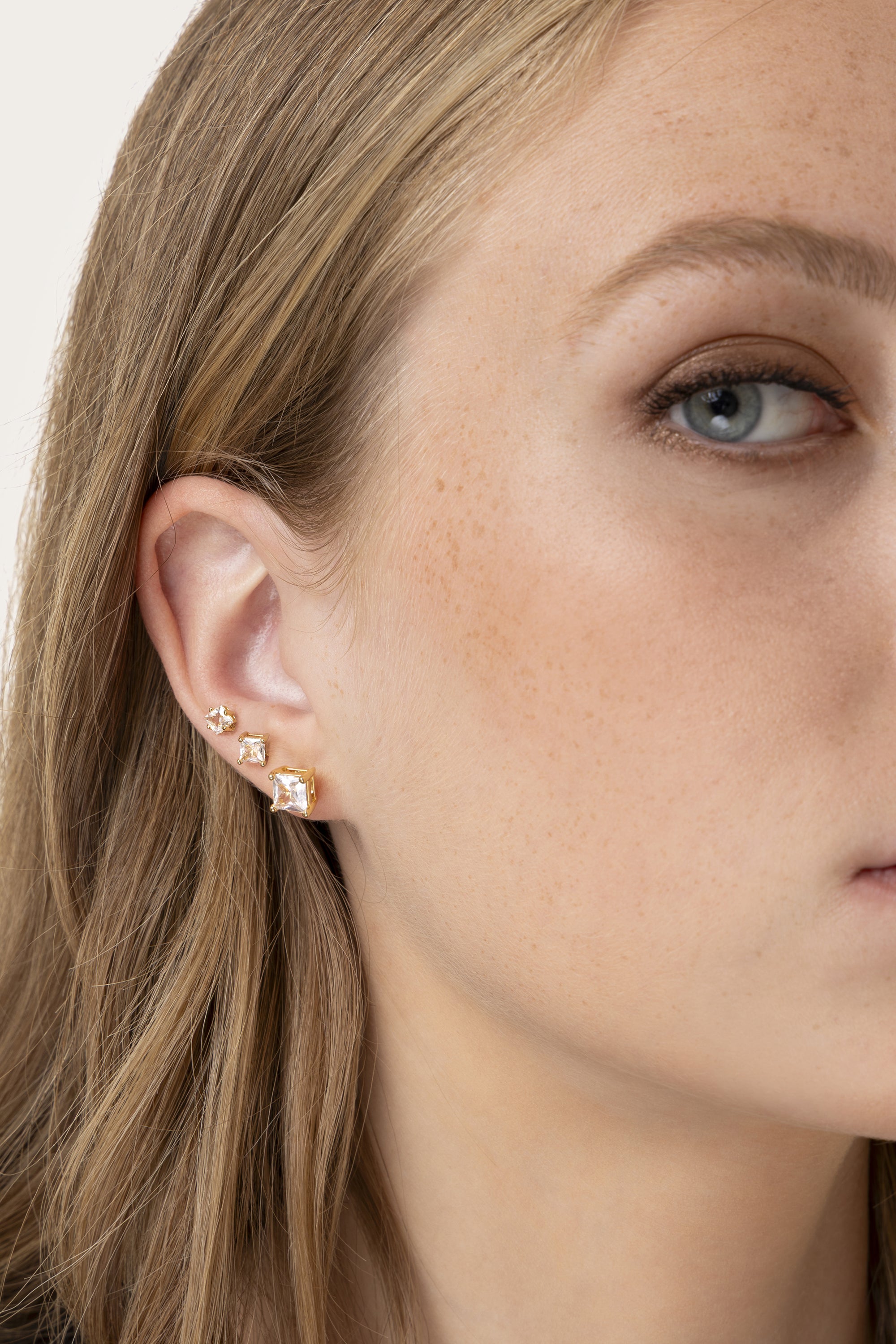 Triple luz, triple estilo. Este set de pendientes punto de luz mix propone tres formas icónicas —cuadrada, princesa y redonda—, todas realzadas con circonitas brillantes que atraen todas las miradas. Realizados en acero chapado en oro, son perfectos para jugar con combinaciones, crear looks asimétricos o cambiar cada día tu detalle luminoso. Níquel testado. Chapado en oro con incrustaciones de circonita cúbica. Joyas únicas perfectas para todos tus looks o como idea de regalo.