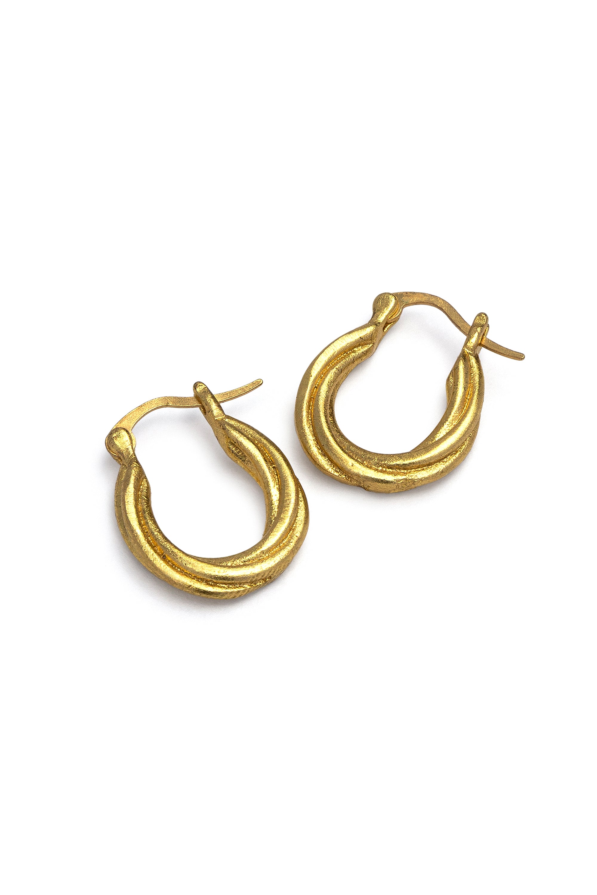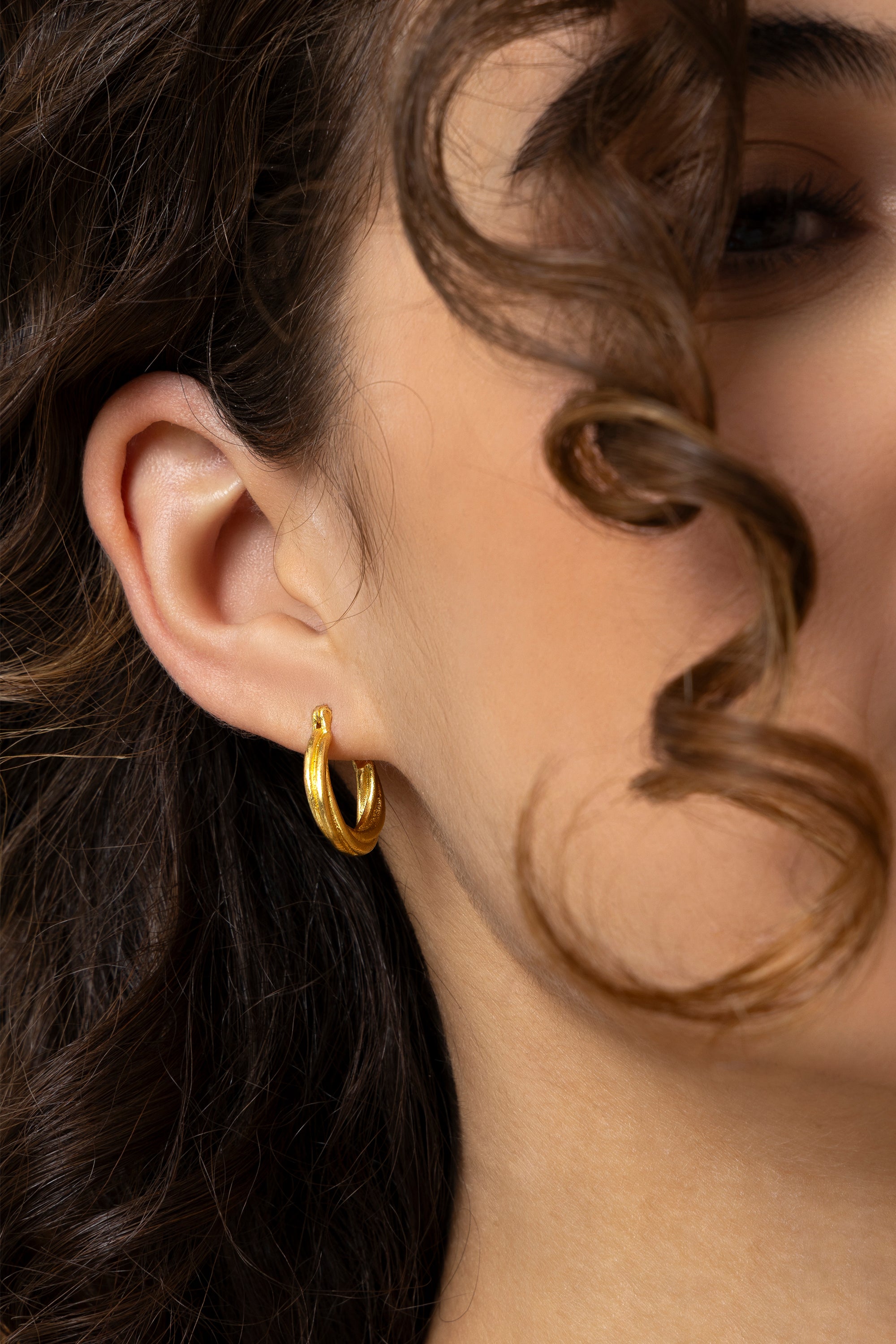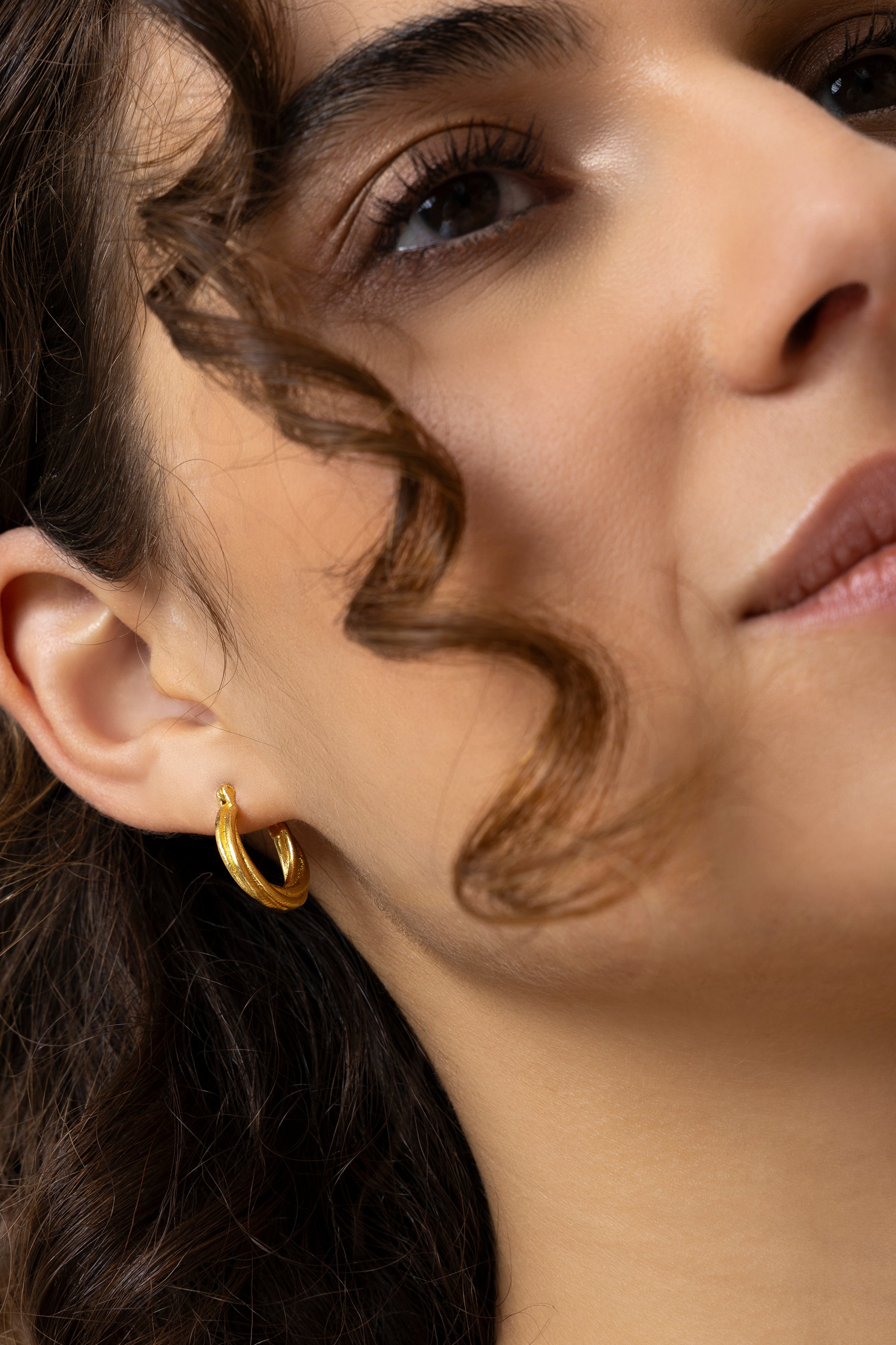 Joyas de lat?n reciclado, fundidas, moldeadas y acabadas a mano: formas geom?tricas, sinuosas e ic?nicas que iluminan cualquier look con una c?lida luz dorada. Cada creaci?n est? realizada ?ntegramente con t?cnicas artesanales, para un resultado sostenible y lleno de personalidad que realza tu estilo.