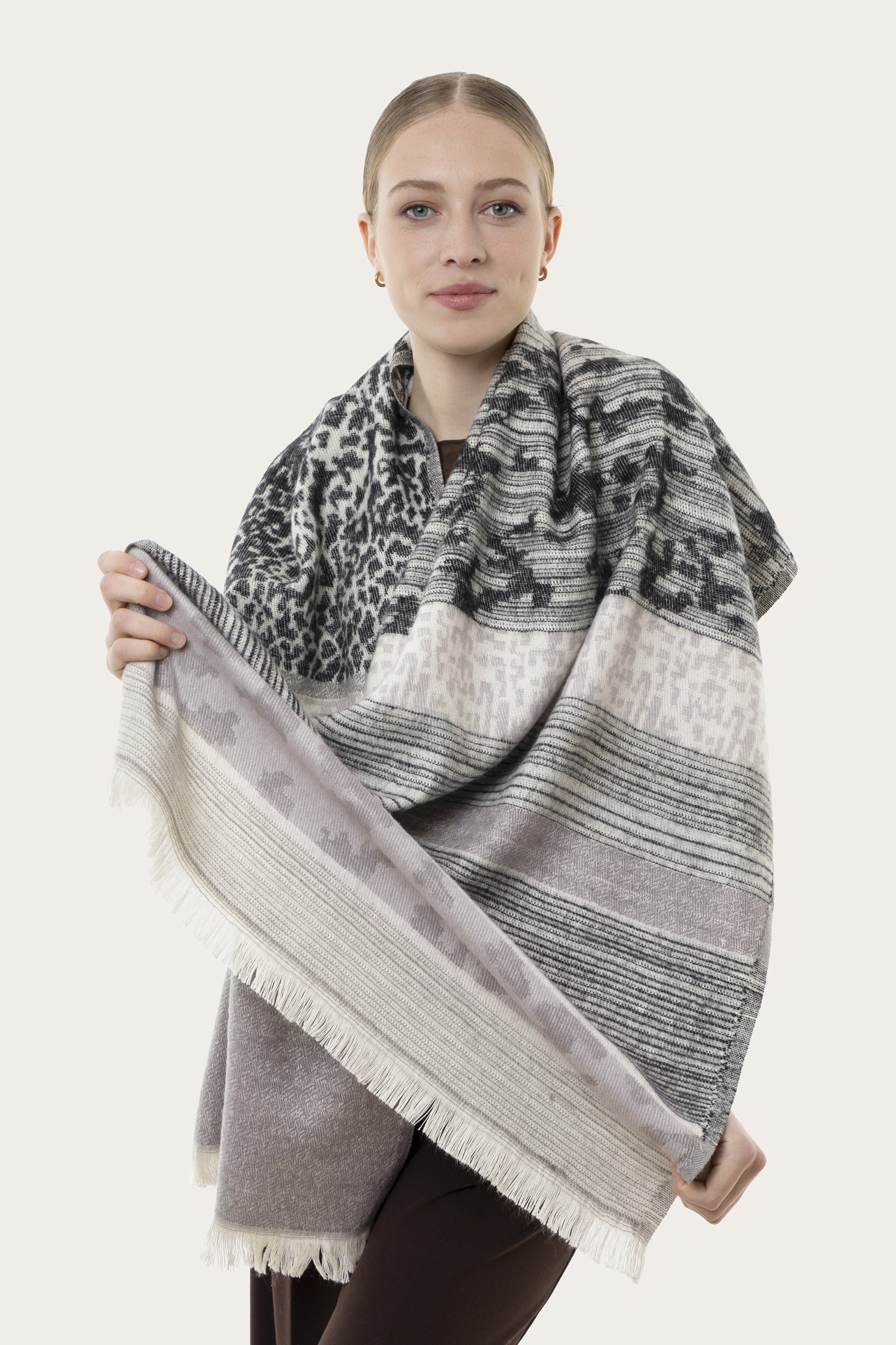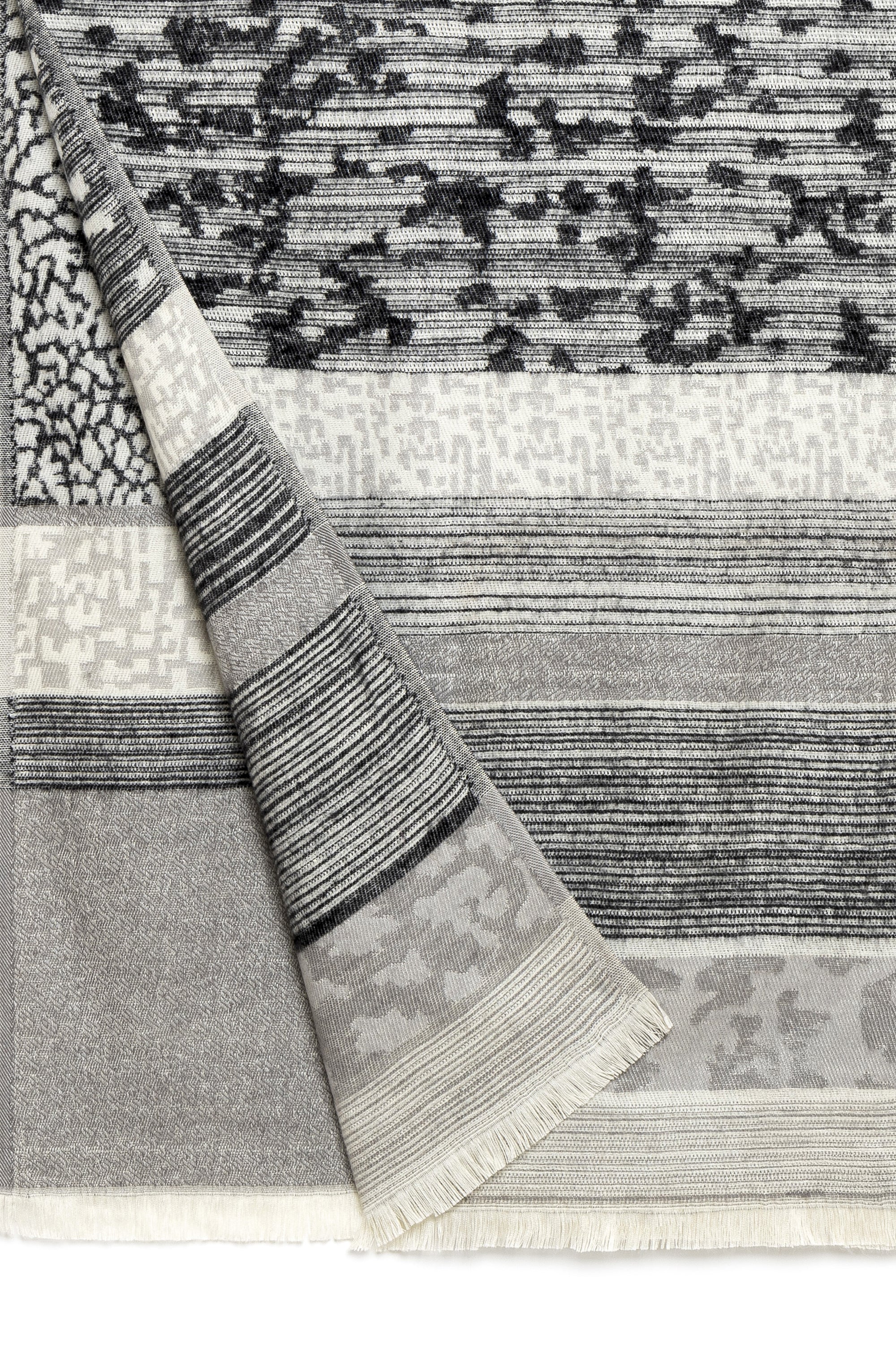 La bufanda Hidra está confeccionada en mezcla de algodón. Ligera, suave y envolvente, se caracteriza por un patchwork contemporáneo y minimal. Modelo reversible. Combínala con tus joyas y bolsos favoritos para completar tu look. Medida: 70x180 cm. Acabado artesanal.
