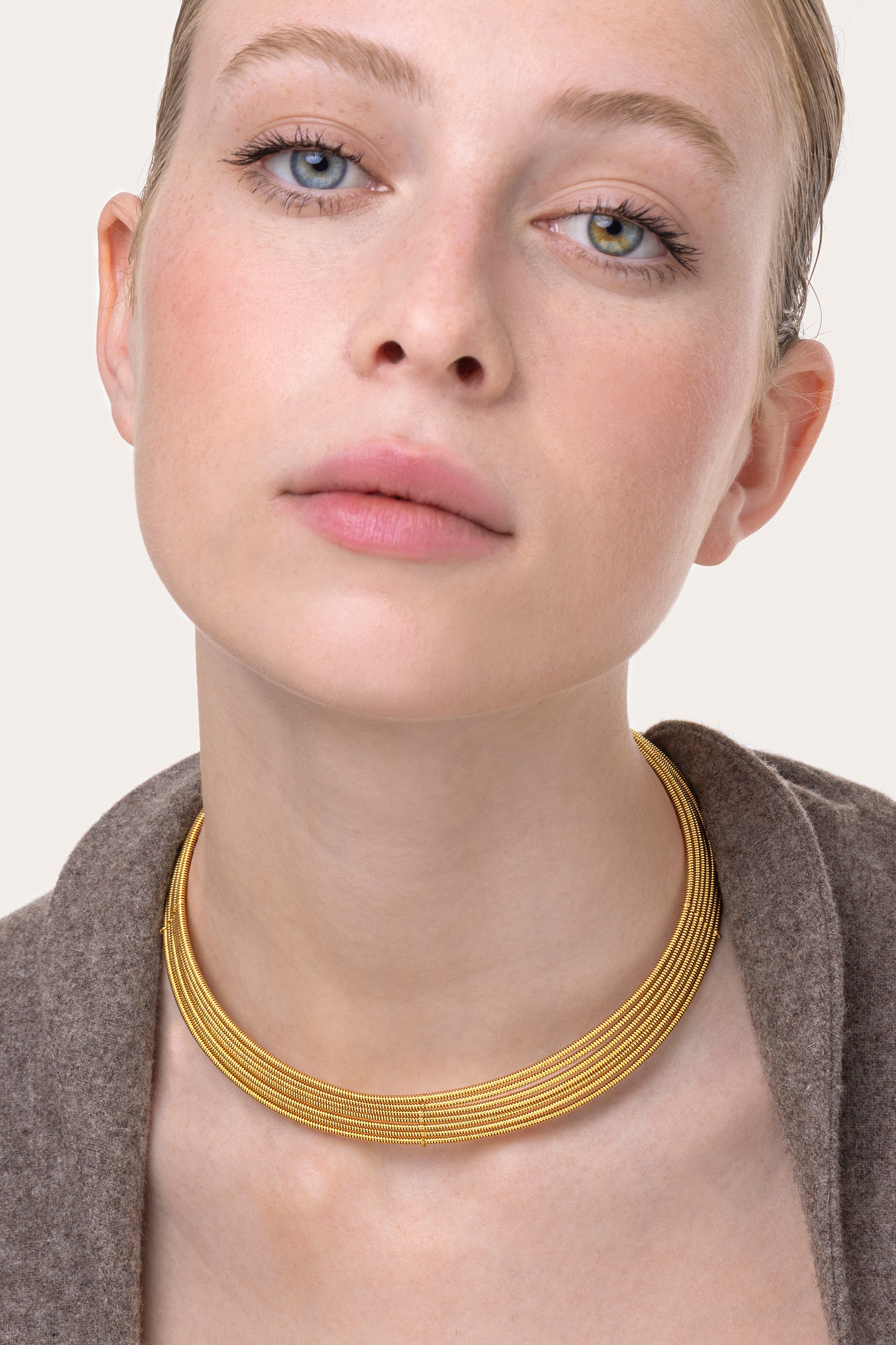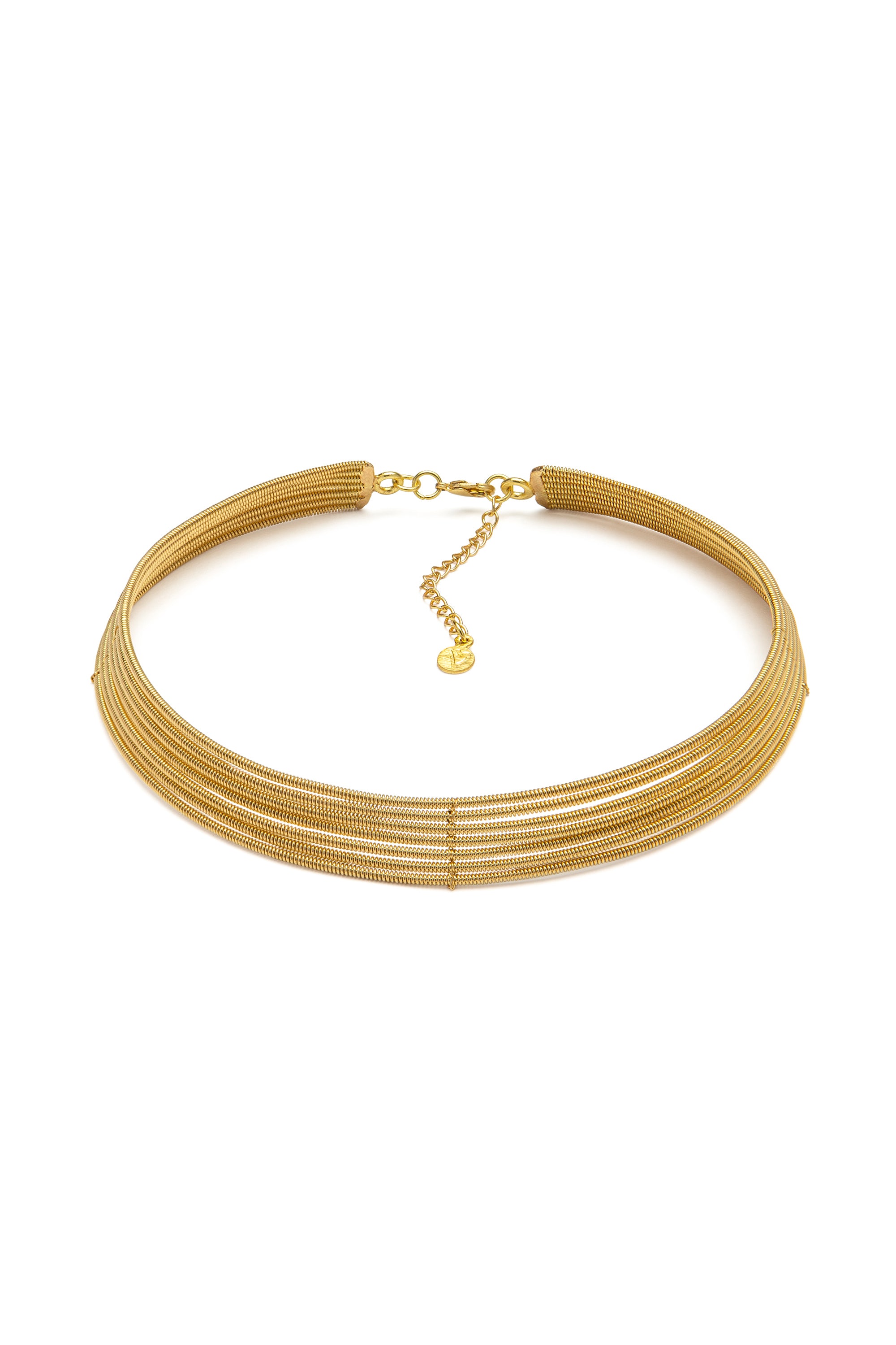 Collar modelo gargantilla de latón de varias líneas. Diámetro regulable. Cierre con mosquetón. Tamaño de la cadena extra: 6,5 cm. El collar tiene un diseño artesanal y ligero y puedes combinarlo con tus collares preferidos para crear un efecto multicapa. Producto sometido a pruebas de níquel. Joyas hechas a mano, únicas y artesanales, perfectas para todos tus looks o como idea para regalar.