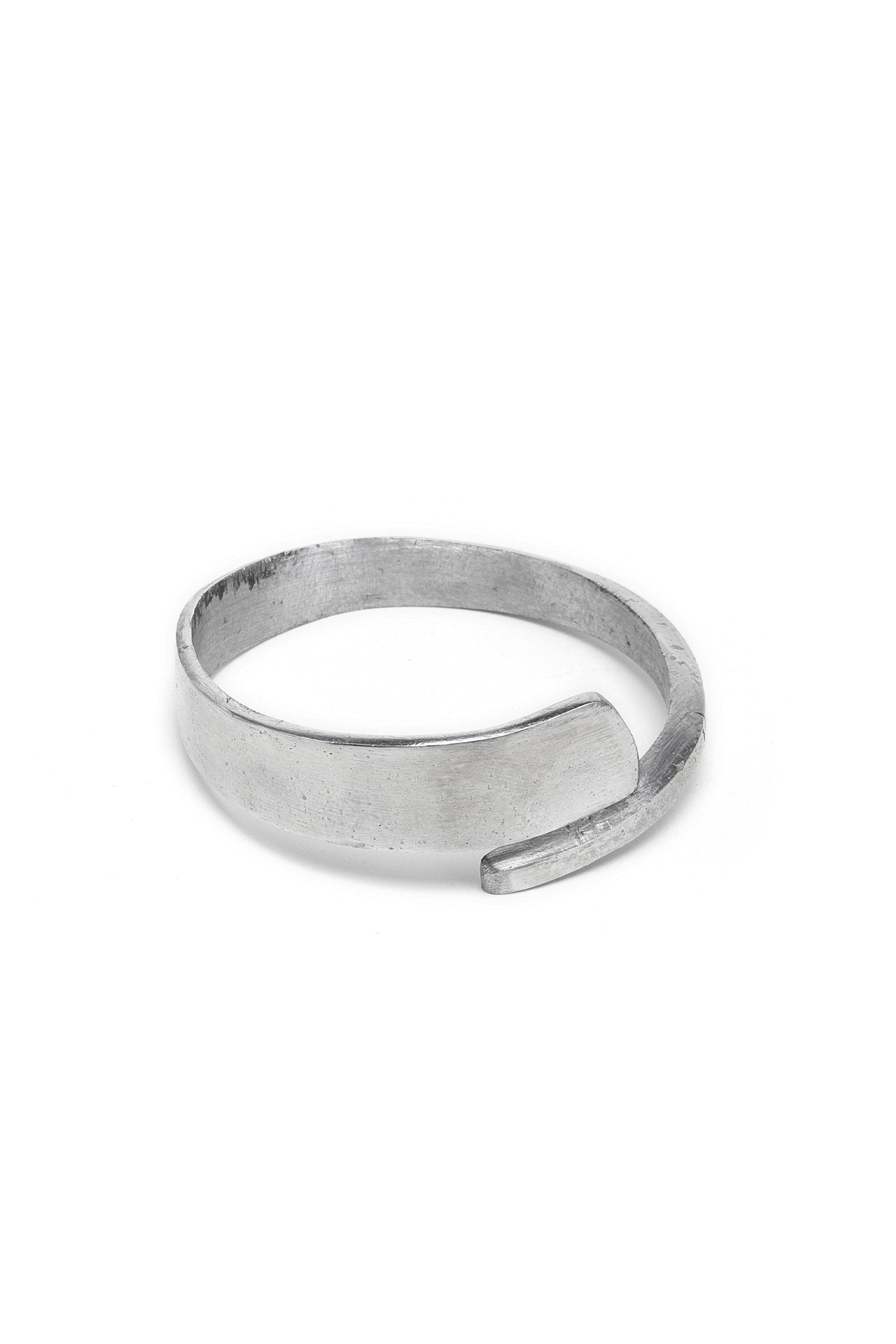 Brazalete rígido en aluminio 100% reciclado, con cierre de lengüeta superpuesta y perfil asimétrico. Acabado satinado, ultraligero. Nickel tested. Elaboración artesanal. Joyas hechas a mano, únicas y artesanales, perfectas para todos tus looks o como idea de regalo.