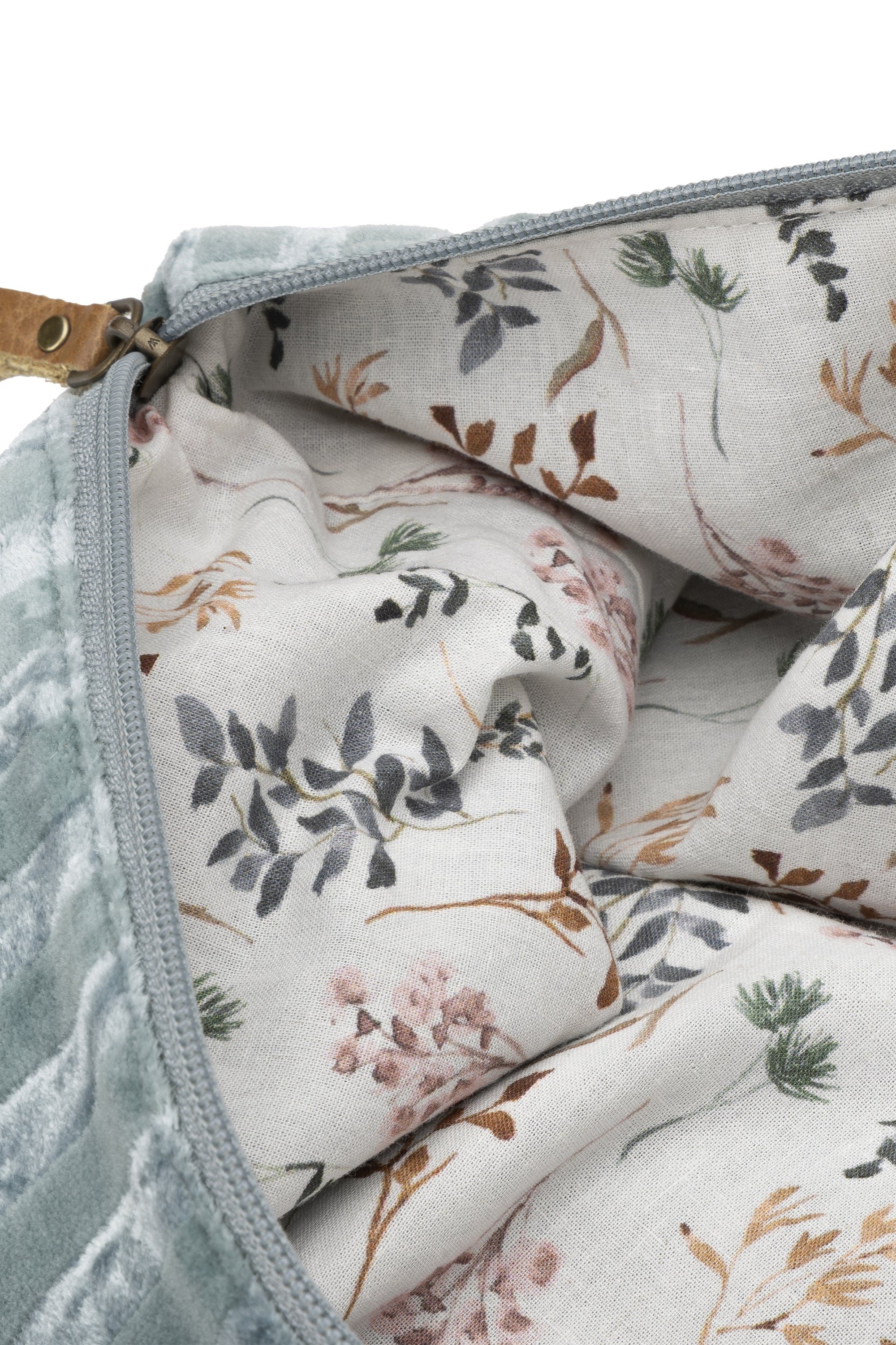 Pochette azul. Bolso para tus essentials en estilo pastel-chic, suave y espacioso. Perfecto para viajar o para organizar tus beauty favs durante el día. Descubre todos los modelos de la colección en varios diseños y tamaños, desde el Neceser hasta el Joyero para conservar las joyas. Disponible también en color rosa. Material cuerpo: mezcla de algodón. Forro con estampado floral: 100% algodón. Cierre: cremallera. Medidas: 30 (A) x 24 (H) x 7 (P) cm.