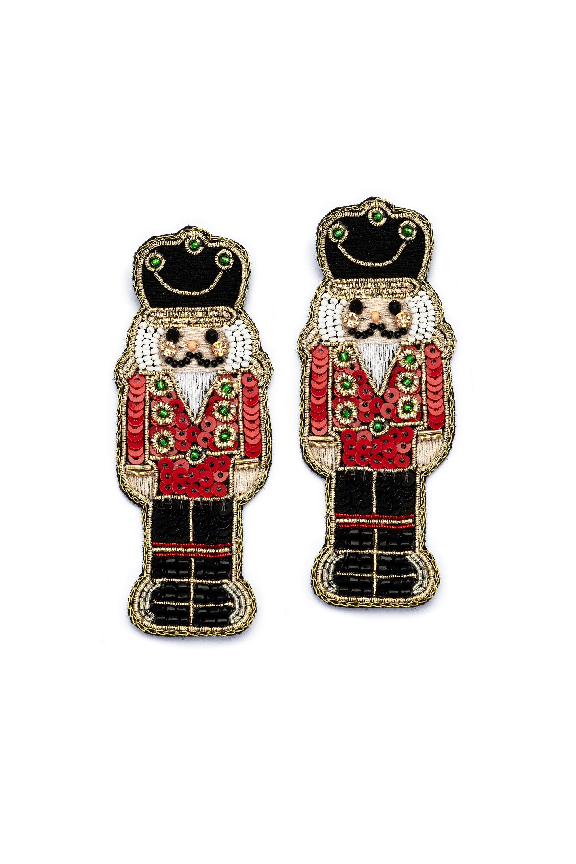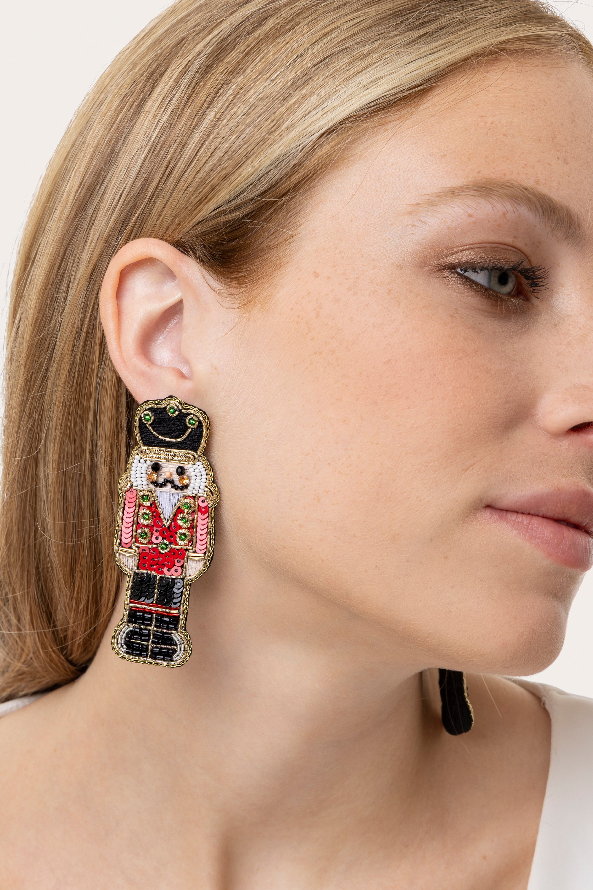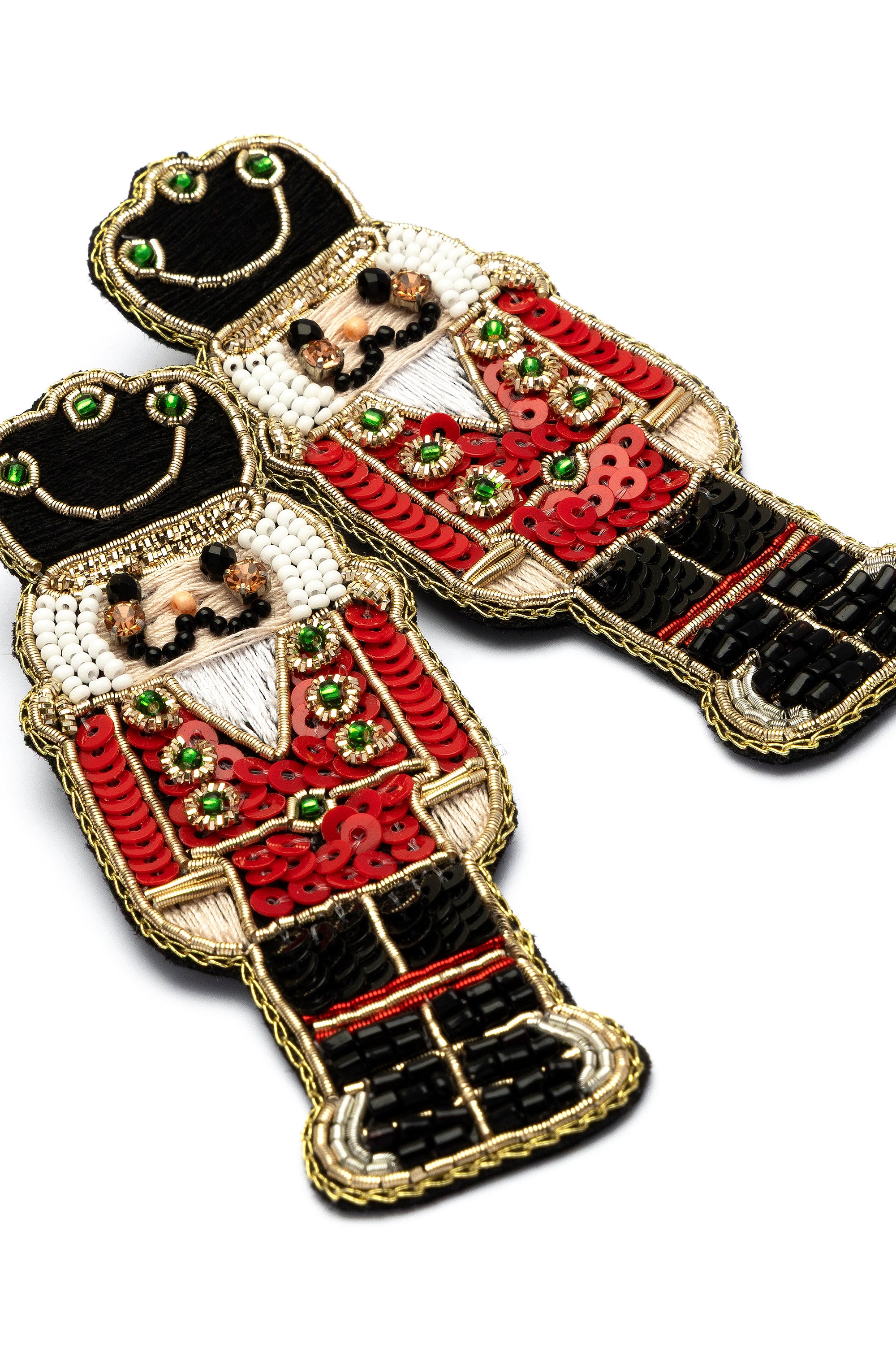 Los pendientes con forma de Cascanueces son un must-have de la colección Christmas Earrings, inspirada en los iconos más queridos de la temporada navideña. Realizados con micro cuentas de vidrio de colores aplicadas sobre una base de fieltro, estas joyas iluminan cualquier look con su chispa festiva. Perfectos para añadir un toque de alegría a un outfit casual chic o para completar un vestido de noche, también son una idea de regalo original y especial. ¡Basta un par de pendientes Vestopazzo… y la fiesta comienza! Dimensión 8,2 cm. Níquel testado. Trabajo artesanal. Hecho a mano.